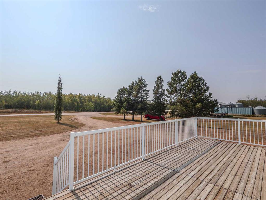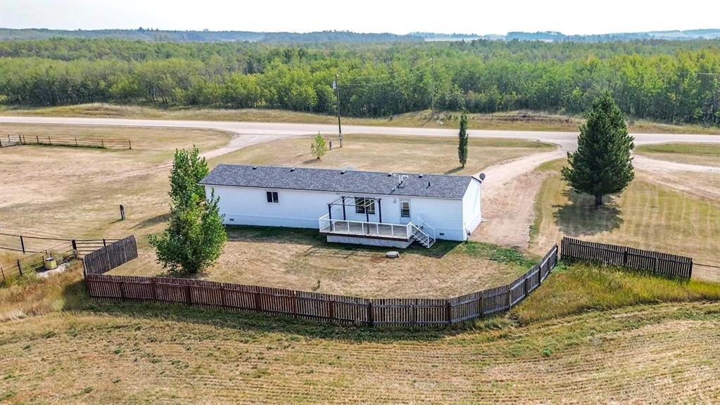 Located right on Highway 601, this well-cared-for farm consisting of 84.39 acres, combines a bright, 2013 home with a fully functional farmyard—ideal to add to your farming operation, great for hobby farmers, or anyone wanting extra space and flexibility. Wide open views of farmland and trees surround the property, offering peace and prairie charm from every angle. The home is in excellent condition, immaculately maintained, and filled with natural light. It features vaulted ceilings, large windows, wood-look flooring, and light-colored walls throughout. The spacious kitchen boasts plenty of cabinets, stainless steel appliances, and a tiered island, all open to the dining area and huge living room. The primary suite includes a walk-in closet and 3-piece ensuite with walk-in shower. Three additional bedrooms and a full 4-piece bathroom provide plenty of space for family or guests. The back entry offers convenient laundry hookups and storage. Outdoors, the yard is low-maintenance with lots of parking and plenty of grass. There are two large decks at the front and back entrances creating a variety of locations to unwind and enjoy the scenery. The backyard has expansive views of the farmland beyond. The farmyard on either side of the house offers excellent functionality and includes a 60’ x 38’ barn, 60’ x 42’ open bale shed, storage shed with metal siding, 3 stock waterers, and steel corrals, making it ideal for small livestock, equipment storage, or hobby farming ventures. The farmland is currently seeded down to hay. This property is conveniently located between Stettler and Alix, and is a short commute to Red Deer. This is a great property which blends modern living with practical farmyard infrastructure—an excellent opportunity for those seeking both comfort and versatility.