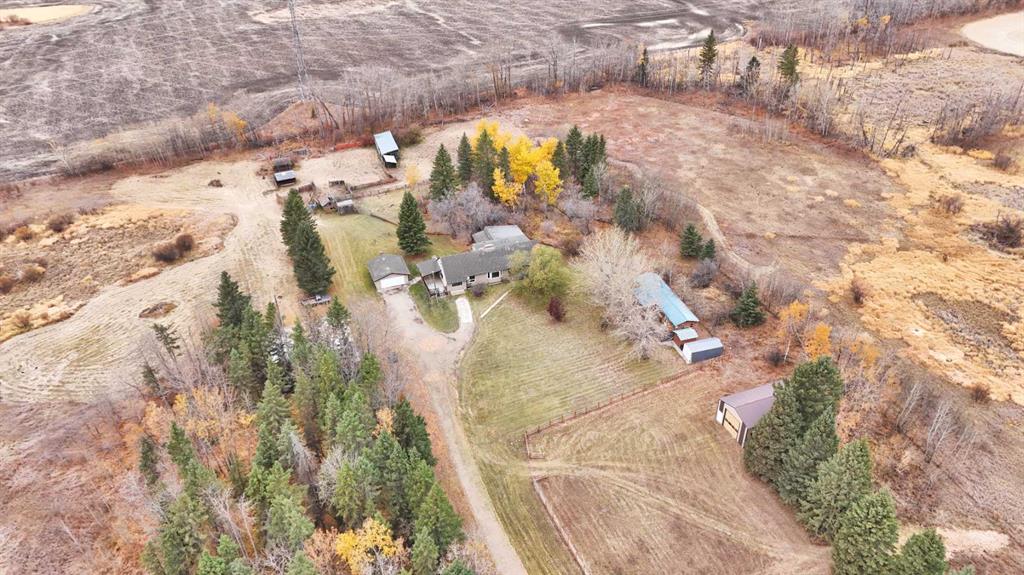 Fabulous opportunity with recent renovation upgrades! Invest in your future and enjoy complete privacy on this 80-acre parcel, located within Red Deer’s intermunicipal district along its eastern boundary. This property offers a wonderful rural lifestyle, a solid investment hold, dual-residence living, and multiple streams of farming income, including livestock, equestrian, tree farming, market gardening, and grain. With its proximity to the city, this is a unique opportunity where your living investment is sure to appreciate over time. The property features a 2-storey main house (built in 1974), a mobile home (1991), a 24'x24' detached garage (1976), a 40'x26' insulated shop with cement flooring, a 50'x24' cold storage pole-style shop (1998), and numerous other outbuildings. The land is level, with approximately 32 acres of arable farmland featuring excellent soil quality, expansive pastures, low-lying areas, treed and brush sections, and a beautiful tree-lined driveway that leads from paved Range Road 270 to the yard site. The main home offers a functional layout with a main floor master bedroom, two living areas (one with a wood-burning fireplace), a kitchen complete with an indoor barbecue, and a renovated 2-piece bath. The expansive bonus room addition features a gas fireplace, patio doors to the south-facing deck, and a bar area perfect for entertaining. Upstairs, you'll find a roomy bedroom with a Juliette balcony, a 4-piece bathroom, and an adjoining space with two additional sleeping areas. The lower level is wide open and offers ample storage, a utility area, and laundry. The well-maintained mobile home includes 2 bedrooms, 1 bathroom, upgraded vinyl windows (2007), a south-facing covered deck, and a parking shelter. Renovation highlights include new windows for both the house and mobile home (2007), a fully renovated main floor 2-piece bath, and a complete second floor renovation with new doors, trim, and paint. Also a complete bathroom reno including shower, flooring, vanity, and paint. Additional upgrades include shingles and siding on the house (2011) and a replacement of the septic tank (1992). Zoned A1 Future Urban Development District, this property allows for agricultural and related uses until the land is needed for urban development. This property is a rare combination of lifestyle, investment, income potential, and privacy—an opportunity that rarely comes along!