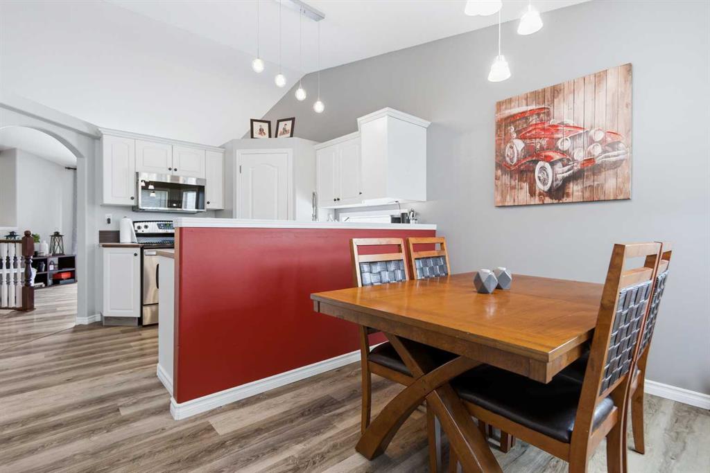 Welcome to 10 Briarwood Crescent, a solid and inviting home in the heart of the Briarwood subdivision, perfect for a first time buyer or a growing family looking to get into the market at an affordable price. This location checks all the boxes. You are close to schools, shopping, and the Eagle Builders Centre, home of the Blackfalds Bulldogs, making day to day living convenient and community focused. Inside, you will find five bedrooms, which is hard to come by at this price point. The main floor offers a practical layout with an easy, natural flow. The front living room features vaulted ceilings and a large window that brings in plenty of natural light. The kitchen connects nicely to the dining area and is finished with white cabinetry, creating a bright and welcoming space. Just off the dining room, the back door leads to a deck overlooking a fully fenced backyard, ideal for kids, pets, or summer evenings. The main level includes three bedrooms and a full bathroom, making it functional for families of all stages. Downstairs, you will appreciate the large entry area from the double attached garage, complete with a coat closet, perfect for Alberta seasons. The basement adds two more generously sized bedrooms, a full bathroom, and a comfortable family room that works well for entertaining, movie nights, or a kids hangout space. Notable updates over the past several years include vinyl plank flooring, fresh paint throughout, new shingles and eaves in 2024, and a hot water tank replaced in 2023, offering peace of mind for the next owner. This is a well kept, practical home in a great neighbourhood, offering space, value, and a location that truly works for everyday life.