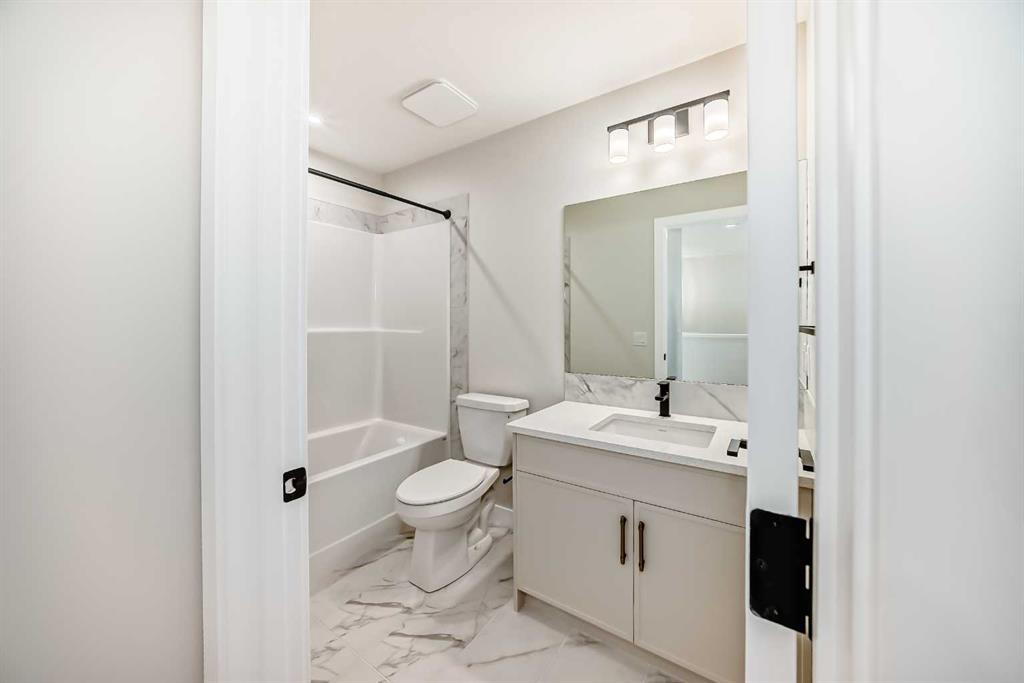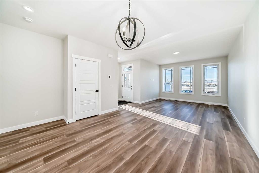 Welcome to this brand new, never lived-in semi-detached home located on a desirable corner lot in the award-winning community of Coopers Crossing, Airdrie. Designed with comfort, style, and functionality in mind, this home offers everything a modern family could want. Highlights: Brand new – never occupied Corner lot 3 bedrooms + bonus room,2.5 bathrooms Double attached garage Rear deck (10’ x 9.9’) Side entrance Upper-floor laundry Soft-close cabinets, stainless steel appliances, chimney hood fan The main floor features an open-concept layout with a bright and spacious living area, a well-appointed dining space, and a contemporary kitchen showcasing stainless steel appliances, chimney-style hood fan, and soft-close cabinetry. A convenient two-piece washroom and access to a 10’ x 9.9’ rear deck complete this level — perfect for everyday living and entertaining. Upstairs, you’ll find three spacious bedrooms, a large bonus room, and two full bathrooms, including a beautifully finished ensuite. The laundry room is thoughtfully located on the upper floor for added convenience. This home also includes a double attached garage (19’3” x 19’7”), a separate side entrance to the basement, and abundant natural light from multiple windows. Situated in one of Airdrie’s most sought-after neighborhoods, Coopers Crossing is known for its beautiful parks, walking trails, green spaces, and proximity to excellent schools, shopping, and all amenities. Experience the exceptional lifestyle Coopers Crossing has to offer with this stunning new home