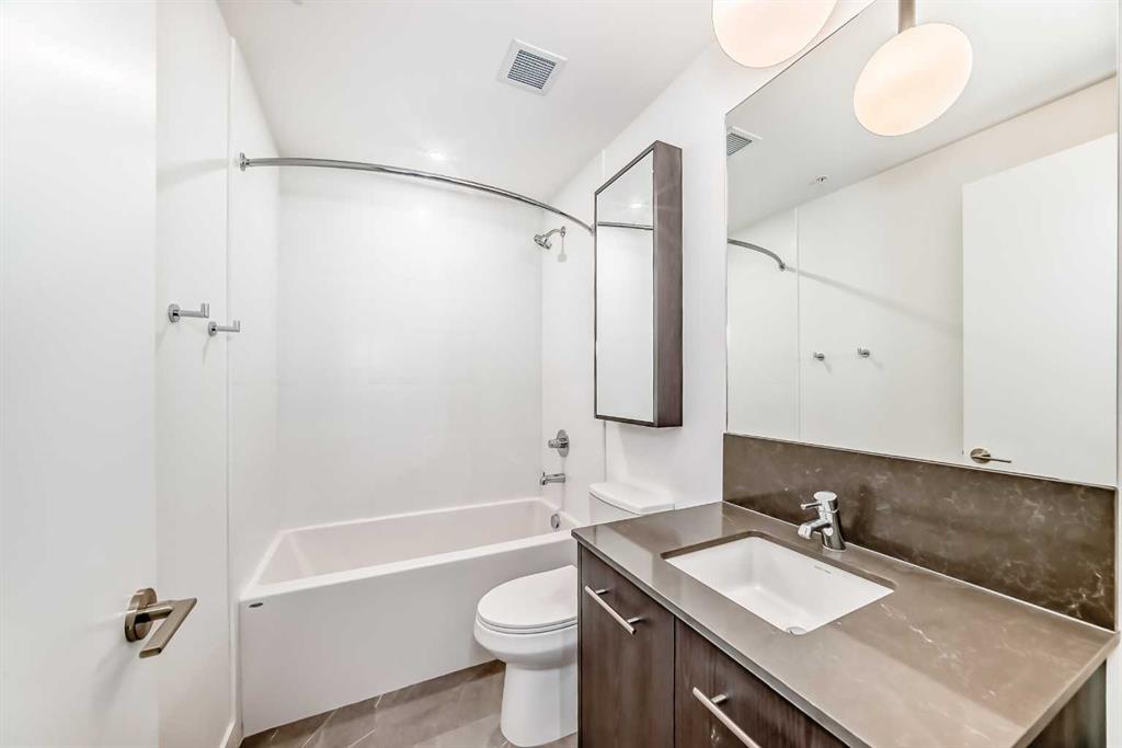 Stunning 2 Bed 2 Bath Condo in Eau Claire | River Views | Underground Parking Move-in ready 2-bedroom, 2-bathroom condo in First & Park by Graywood Developments, located in Calgary’s sought-after Eau Claire neighbourhood. This new unit offers clear views of the Bow River and Peace Bridge, just steps from Prince’s Island Park, downtown offices, and river pathways. The open-concept layout features 9-foot ceilings, floor to-ceiling windows, and durable vinyl plank flooring. The kitchen includes Fulgor stainless steel appliances, a gas cooktop and quartz counters. The primary bedroom has its own ensuite and walk-through closet. A second full bathroom and bedroom offer flexibility for guests or roommates. Enjoy in-unit laundry, air conditioning, titled underground parking, and a private balcony with river views. Building amenities include a gym, meeting room, lounge, bike storage, visitor parking, and daytime concierge. Ideal for professionals or downsizers looking for a low-maintenance lifestyle in a central location.