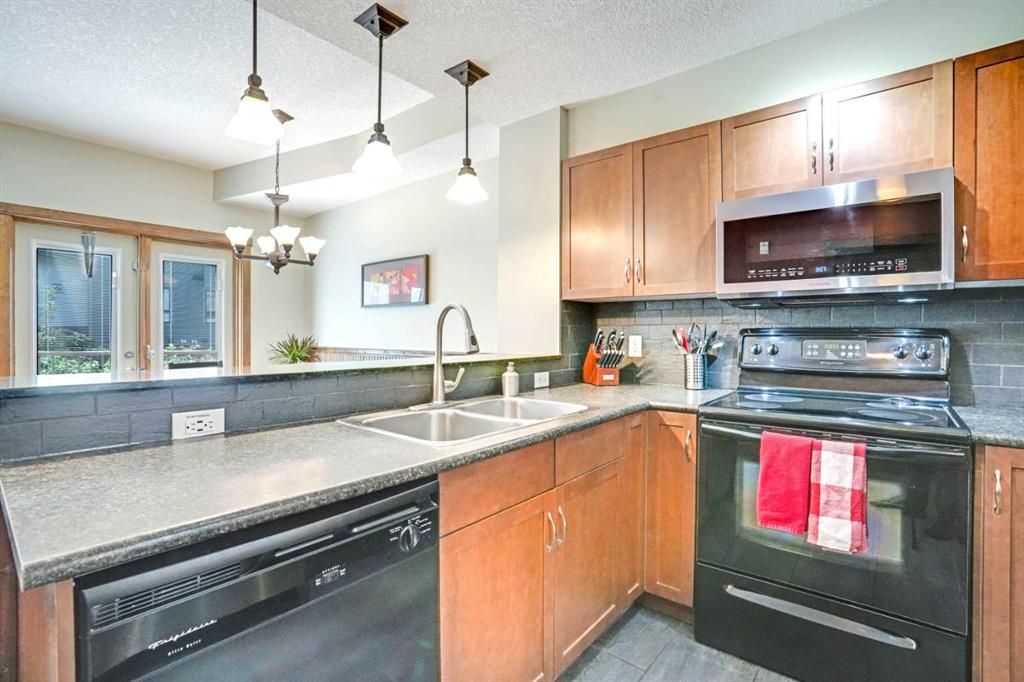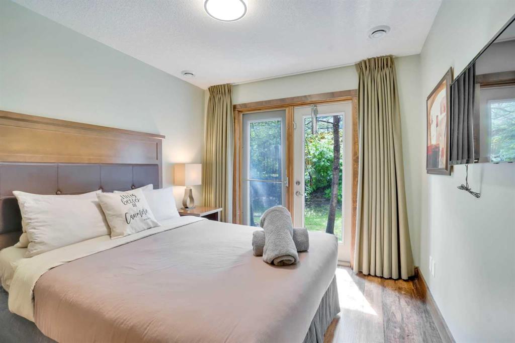 Enjoy the warm afternoon sun from one of 2 SW patio’s surrounded by attractive mountain architecture and beautiful views of the Mt. Rundle! This is one of the most peaceful and quiet locations you will find! This spacious 2 story townhouse has direct access to your vehicle for easy unloading of all of your gear & groceries! The entry level has a cozy living area, bright dining area with fully equipped kitchen and half bath. The doors and trim throughout are solid pine and the most of the flooring has been recently upgraded to match the warm mountain feel of the decor. Downstairs there are 2 large bedrooms each with their own ensuite and own direct outside access. The larger ensuite has been upgraded. The 18 foot long bedroom has the space to include an additional twin bunk which would expand the sleeping to 8-9 people (similar to most 3 bedrooms)! With this upgrade, Income should be strong and part way between a 2 bedroom and 3 bedroom! There is ample storage space both within the unit and in the external storage locker conveniently located beside the entrance door. Amenities include a hot tub & fitness room only a 10 second walk away. Fire Mountain Lodge has a healthy reserve fund and relatively low condo fee which includes air conditioning and in floor heating on the lower level. The location is ideal just a short walk away from the shops of Canmore and Spring Creek. List Price is $919,000+GST. GST is often deferred and not paid at the time of sale when the buyer is GST registered. All furniture, furnishings, kitchenware and unit items are included in the sale. This is a fantastic opportunity to own property & generate strong income on Airbnb!