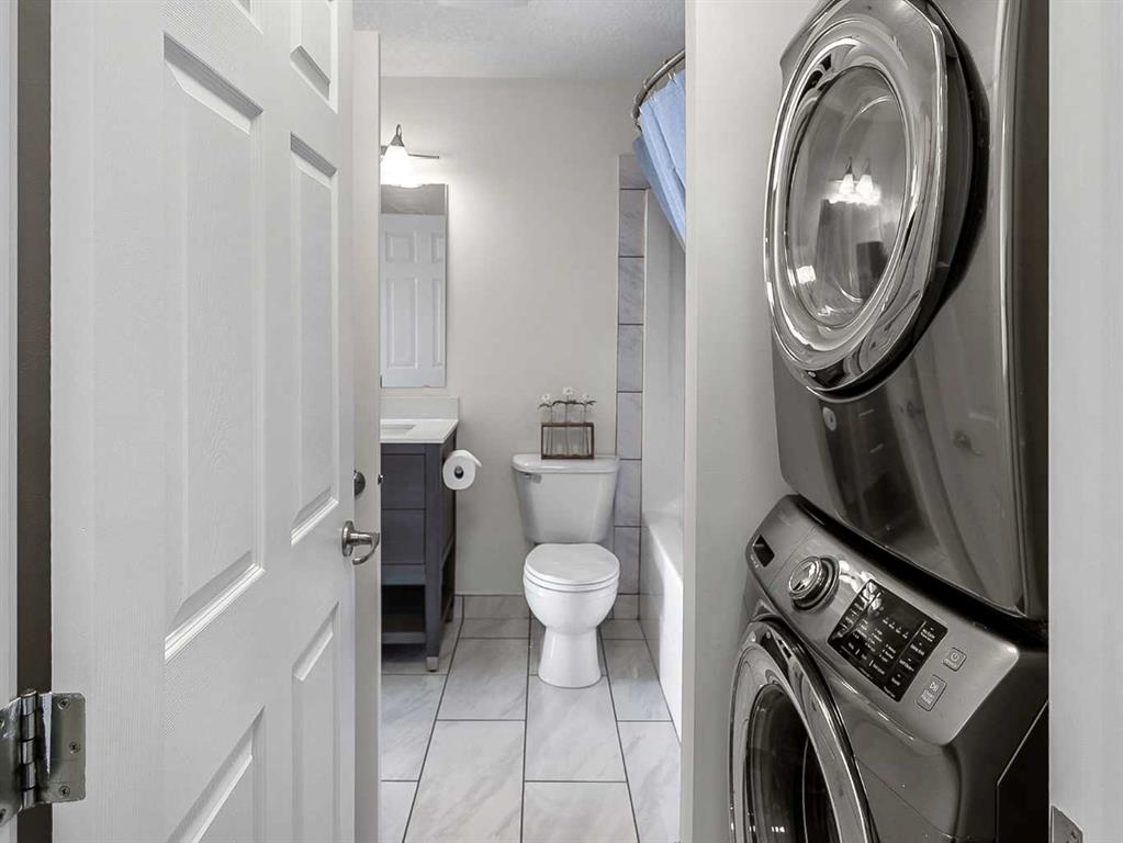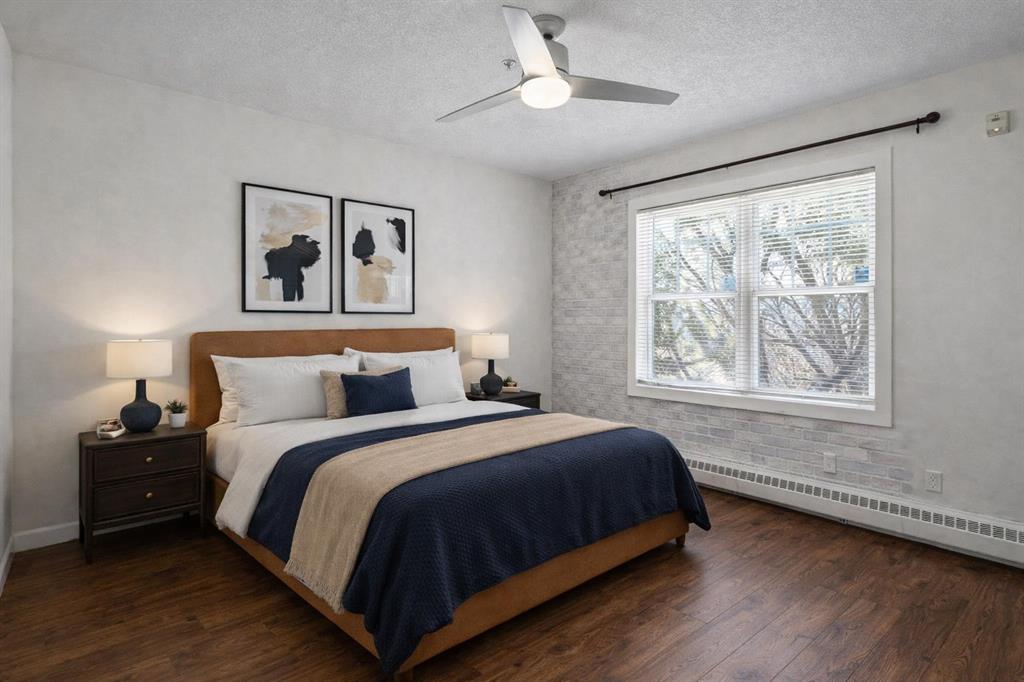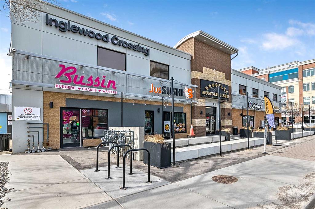 Spacious and bright 2-bed, 2-bath condo with in-suite laundry and 9' ceilings welcomes you home. Freshly painted throughout and an open-concept floor plan offers a great layout. The timeless kitchen features dark cabinetry, newer stainless steel appliances, and a generous eating bar. The dining room can accommodate a large table, while a corner gas fireplace complements the living room. The primary bedroom boasts a walk-in closet and a private 4-pc ensuite, while the second bedroom also has a walk-in closet and a convenient 4-pc cheater ensuite that can be closed off and accessed from the open area. Enjoy an exceptionally private, spacious balcony with south exposure for all-day sun plus a gas line for your BBQ. This isn’t your typical ground-floor unit. Due to grading, the elevated position feels more like a mid-level unit. Convenient titled underground parking and a storage locker make errands effortless. You’re locking up and in your car in under 30 seconds. Skip the gym membership! This well-equipped complex features a large, functional fitness centre and a recreation room. Ideal for gatherings, workouts, or a quiet workspace. Located in Inglewood, Calgary’s historic and vibrant neighbourhood known for its boutique shops, cafés, restaurants, live music venues, craft breweries, river pathways, and proximity to Pearce Estate Park, the Bow River, Harvie’s Passage Lookout, and the Inglewood Bird Sanctuary, you’ll enjoy a unique blend of urban lifestyle and natural beauty.