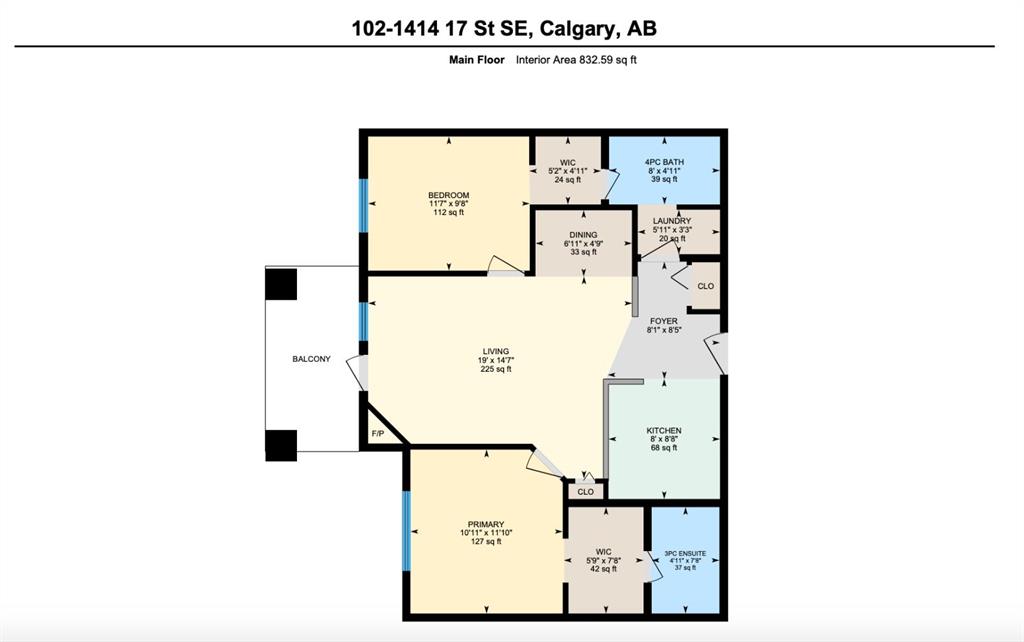 | Bedroom - Primary | 10`11" x 11`10" | Main |