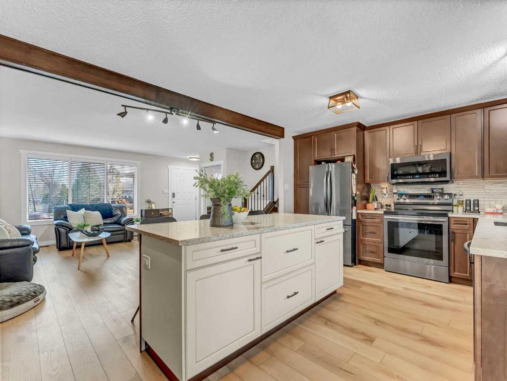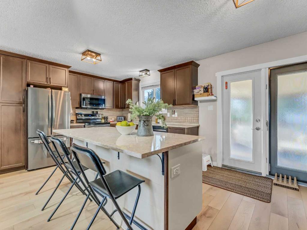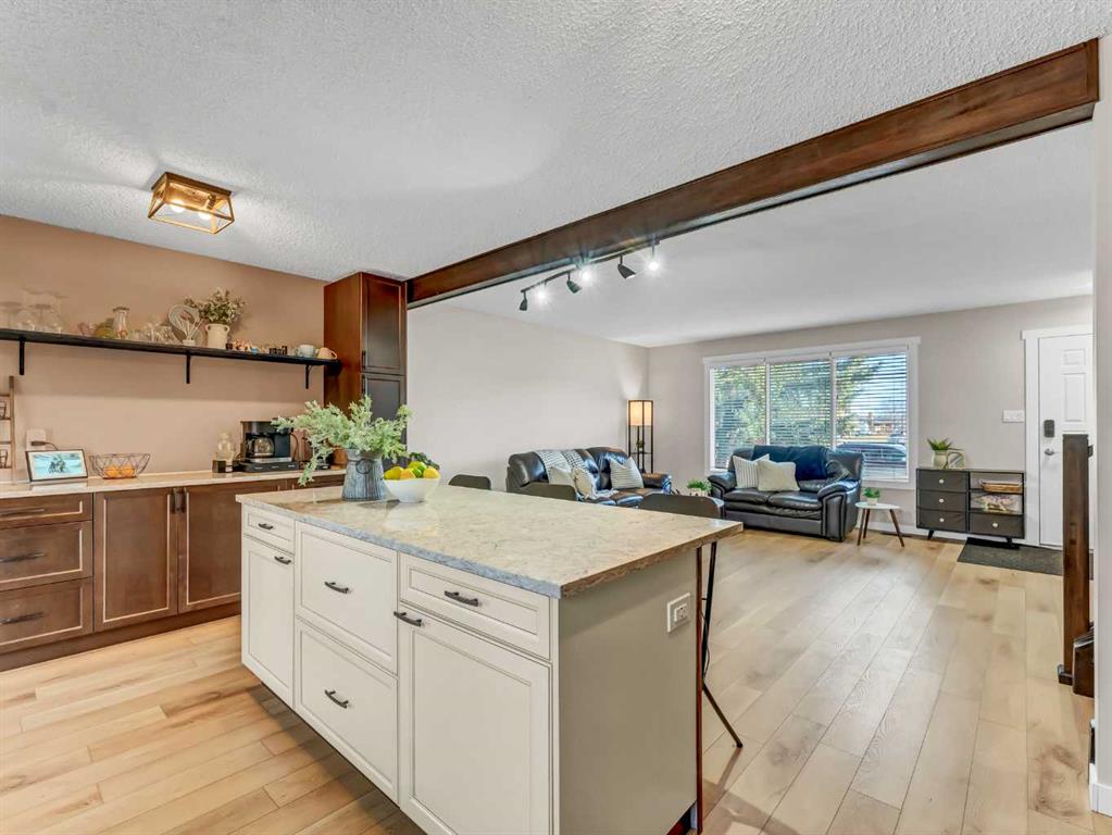 Move-In Ready, Nicely Renovated 4-Level Split with Heated Garage. Welcome to 103 Ewart Crescent SE—a beautifully renovated 4-level split offering 4 bedrooms, 3 bathrooms, and a layout that’s perfect for growing families. New, gorgeous vinyl plank flooring flows throughout the home, setting the tone for a bright and modern feel. The main floor features a huge front living room that opens seamlessly into the renovated kitchen (2020), creating an ideal space for everyday living and entertaining. The kitchen is a standout with tons of cabinetry and storage, newer appliances (2020), quartz countertops (2023), a large centre eat-at island, and a stylish coffee bar/serving station. Upstairs, you’ll find three bedrooms including the primary suite with a private 2-piece ensuite, along with the main 4-piece bathroom featuring a re-glazed tub. The third level adds even more functional living space with a large family room complete with a surround sound system—perfect for movie nights—plus a 3-piece bathroom, a spacious laundry/storage room, and direct access to the double attached heated garage. The lowest level offers exceptional flexibility with a large flex room ideal for a games room, gym, playroom, or additional living space, along with the fourth bedroom. Outside, the fully fenced backyard is ready for family fun with underground sprinklers, a covered deck, a shed, and a play centre—making it an ideal space for kids and pets. This thoughtfully updated home offers space, comfort, and functionality in a great SE location. A must-see for families looking for a move-in-ready home with room to grow.