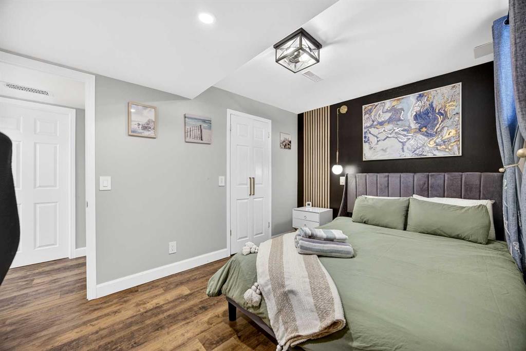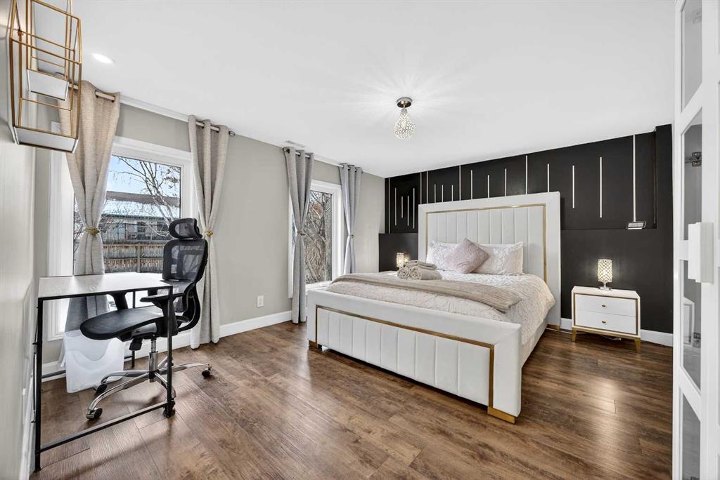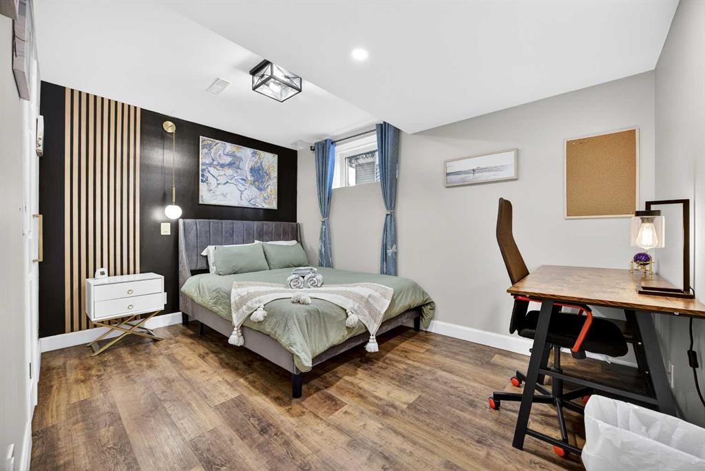 Here is the one you have been waiting for! A stunning Layne Built walkout home in Meadowbrook Estates sitting on a quiet cul-de-sac with a sunny South facing lot. This 5 bedroom, 3.5 bathroom home has been completely updated and renovated throughout. Over 2600 sq ft of developed space including a SELF CONTAINED, FULLY LICENSED, 2-BEDROOM AIR-BNB GENERATING $35,000 PER YEAR on average over the last 3 years. This is an amazing opportunity to live up, rent down and cover your mortgage! Or a great mother-in-law space, nanny, or for extended families, the options are endless! As you enter the home you will be wowed by the soaring open signature Layne ceiling with beautiful detailed ornate plaster work adding timeless character and craftmanship to the space. Gleaming hardwood flooring leads you through the large open concept living room with tons of natural light shining through the NEW TRIPLE PANE windows. Chefs dream kitchen with warm ivory custom cabinetry, granite counters, tile backsplash, upgraded stainless steel appliances, and a large center island with an undermount sink and eat up bar. Open to the breakfast nook with big bright windows and garden door out to the large upper balcony with new surface boards and a natural gas hook-up. Adjoining cozy family room with tile-faced gas fireplace and renovated 2-piece powder with newer front-loading washer and dryer complete the main floor. Head up the brand-new carpet to the large master retreat with a bay window, renovated 4-piece ensuite bathroom, and walk-in closet. Good sized 2nd and 3rd bedrooms with durable vinyl plank flooring and their own adjoining renovated full bathroom. Open the soundproofed basement door that leads you to a beautifully decorated AirBnB basement with spacious living room with stone faced fireplace, dining area, and fully equipped kitchenette with butcher block counters. 2 large bedrooms and a spa-like bathroom with floor to ceiling tile and walk-in shower. This gorgeous space walks out onto a covered patio with relaxing hot tub and patio area. Your guests will never want to leave! All this on a huge lot with big mature trees giving you a very private tranquil backyard space. This home has been extensively updated throughout including new triple pane windows (2023), R45 attic insulation (2022), furnace and A/C (2019), roof (2013) just to name a few major ones. All located in the desirable neighborhood of Meadowbrook with a tight-knit community atmosphere. Families will appreciate the proximity to highly rated schools and being surrounded by parks, playgrounds, shopping, and East Lake Regional Park. This home is a must see!
