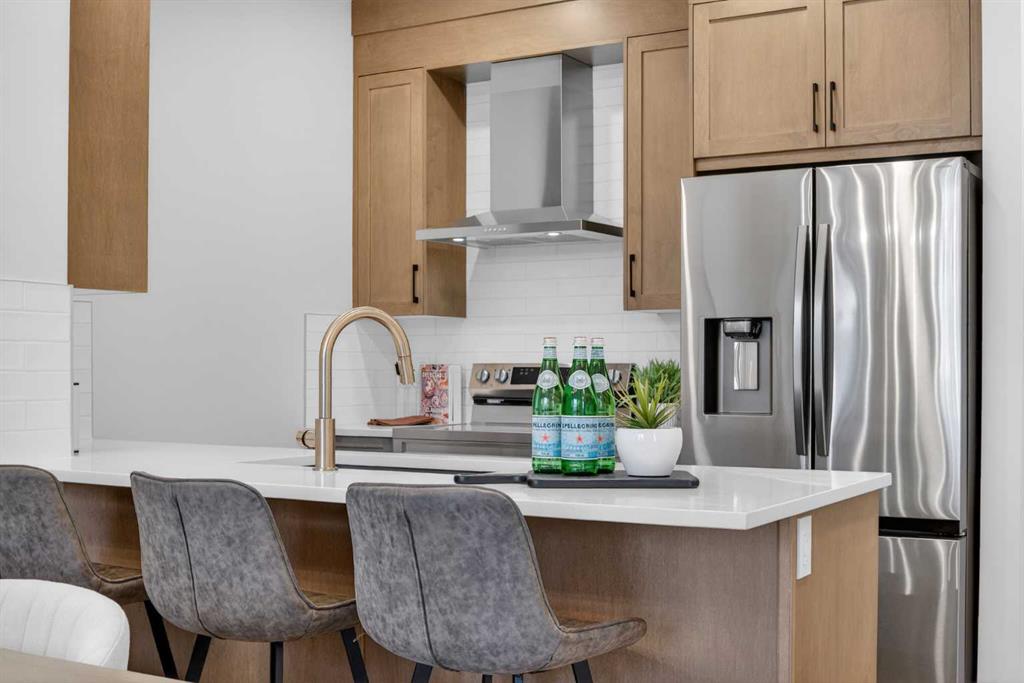 Welcome to 1051 Bayview Crescent, an END UNIT street-side luxury townhome with NO CONDO FEES and a SIDE ENTRANCE! The Jasper townhome features an attached double garage, a rooftop patio, and low-maintenance living. The tastefully designed home offers over 1400 sq ft. of above-grade living space plus an unfinished basement with 9' ceilings, ready for your design ideas. On the main floor, you will find soaring ceilings in the open-concept living space and large windows that let natural light flow through. The chef-inspired kitchen offers beautiful cabinetry and stone countertops and is well-equipped with stainless steel appliances. The kitchen is open to the dining and living room, perfect for entertaining family and friends. Complimenting the main floor is a convenient half bath, storage and entry from the attached 19.3' x 21.7' garage. Venturing upstairs, you will find a spacious primary retreat with a spa-like ensuite, a spacious shower, and a generous walk-in closet. Two additional bedrooms, a full bath, a 4-piece bath and laundry complete the upper level. Outside, enjoy spending time on your upper rooftop patio, which is situated above the garage. Bayview is a beautiful community with parks, benches and pathways that meander throughout the community and along the canals. Kids and adults alike will enjoy the outdoor basketball nets, gym, amphitheatre, and tennis courts, which convert into a skating rink in the winter. Come and see all the amenities the community offers for yourself! *RMS has been applied to the construction drawings provided by the builder. Taxes to be assessed.