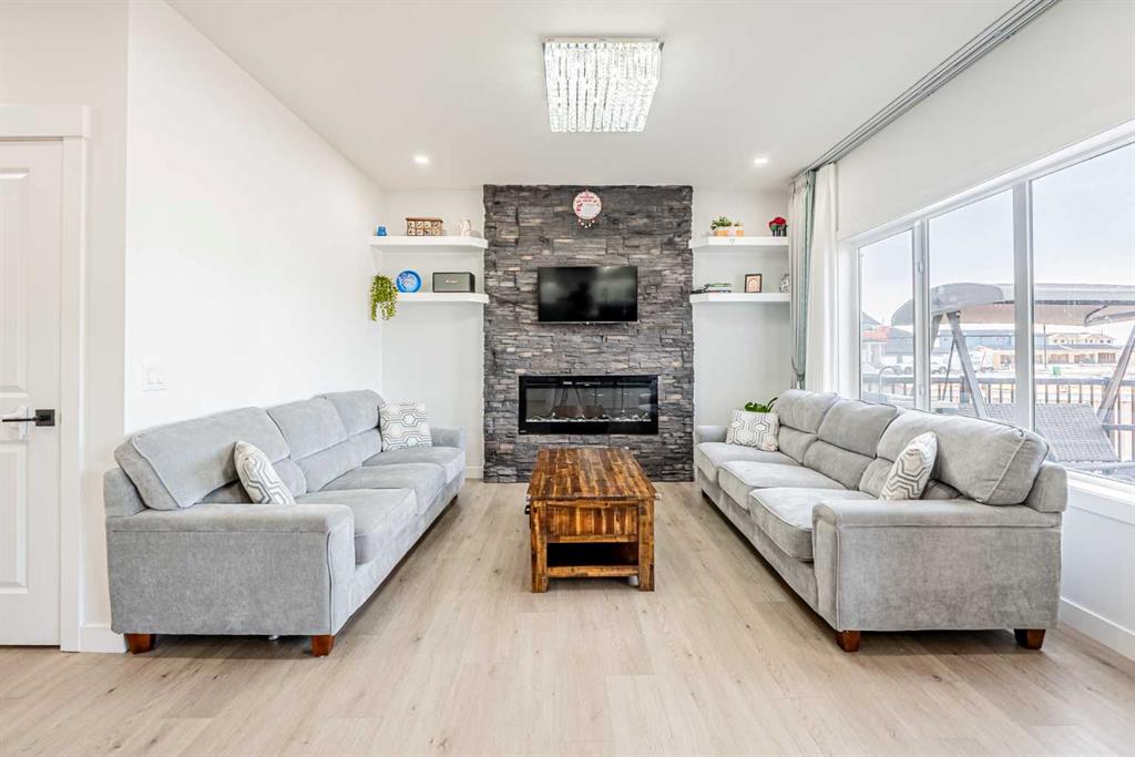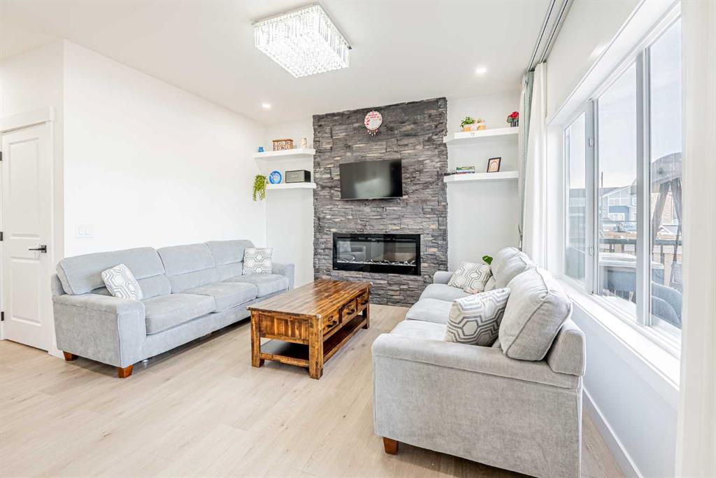 Welcome to the brand-new community of Waterford. This stunning semi-detached front garage duplex offers exceptional value at a fantastic price. The home features 3 bedrooms, a den and 2.5 bathrooms, and approximately 1,740 sq. ft. of well-designed living space. The main level showcases a modern kitchen with a built-in appliance tower, large island, and walk-through pantry, flowing into a bright open-concept family room. The fireplace wall is beautifully upgraded with stone, adding warmth and elegance to the living area. Step outside to enjoy a nice rear deck, perfect for relaxing or entertaining. The upper level includes a spacious primary bedroom with a walk-in closet, 2 additional bedrooms, a convenient laundry room, and a large bonus room. The basement is partially finished, features a separate entrance, and is ready for your future development. Located in a growing community close to schools and major amenities. Call today to book your private showing!