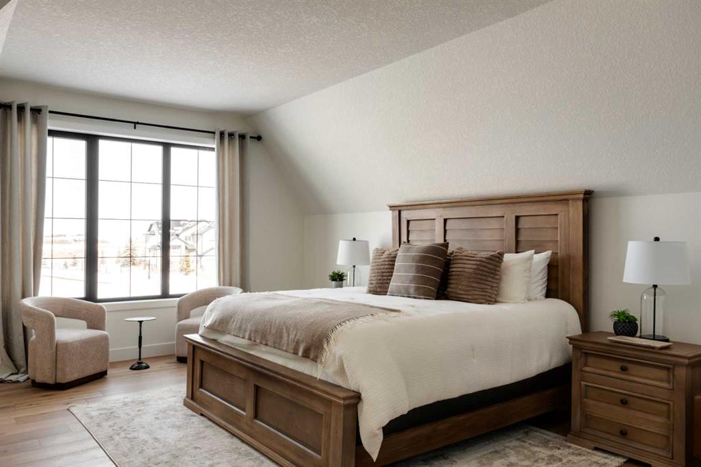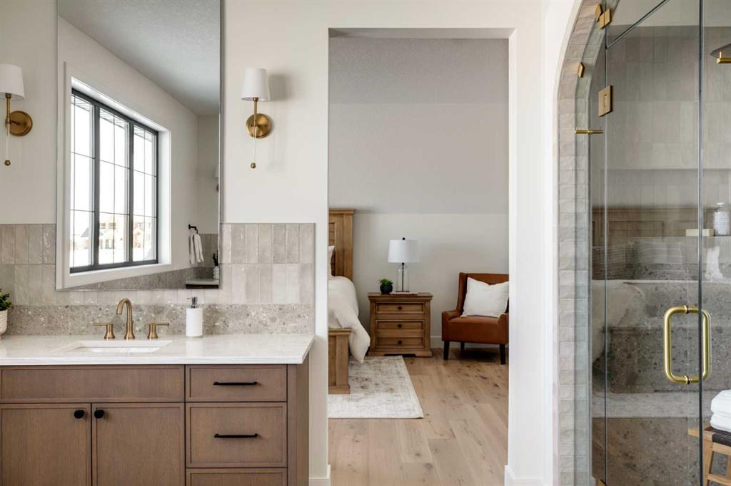 A Feng Shui + Vastu approved floor plan that blends positive energy with practical design. Perfect flow, balanced layout, and built for a lifestyle that feels right the moment you walk in. Welcome to The Blaire in Goldwyn—a home that doesn’t just sit on a lot, it claims a breathtaking position backing onto a ravine, with sweeping views that redefine estate living. With more than 6,700 sq. ft. of total living space, this residence is as much about lifestyle as it is about design. The main level delivers moments worth gathering for: a chef’s kitchen with oversized island, a full spice kitchen for elevated entertaining, a formal dining room, and a sun-drenched sunroom overlooking nature itself. The great room, with its soaring ceilings, feels nothing short of cinematic. A study/library, prayer room, and thoughtfully designed mudroom bring balance to the grandeur. Upstairs, the primary retreat is your personal sanctuary: a spa-inspired 5-pc ensuite, an expansive walk-in closet, and access to a private 29’ balcony with uninterrupted ravine views. Three additional bedrooms—each with its own ensuite and walk-in closet—offer both luxury and privacy, while a bonus room and upper laundry make daily living effortless. With a covered porch, outdoor deck, and an oversized triple garage, every detail of The Blaire has been considered to elevate the experience of living. This is more than a home—it’s your front row seat to the beauty and prestige of Goldwyn.