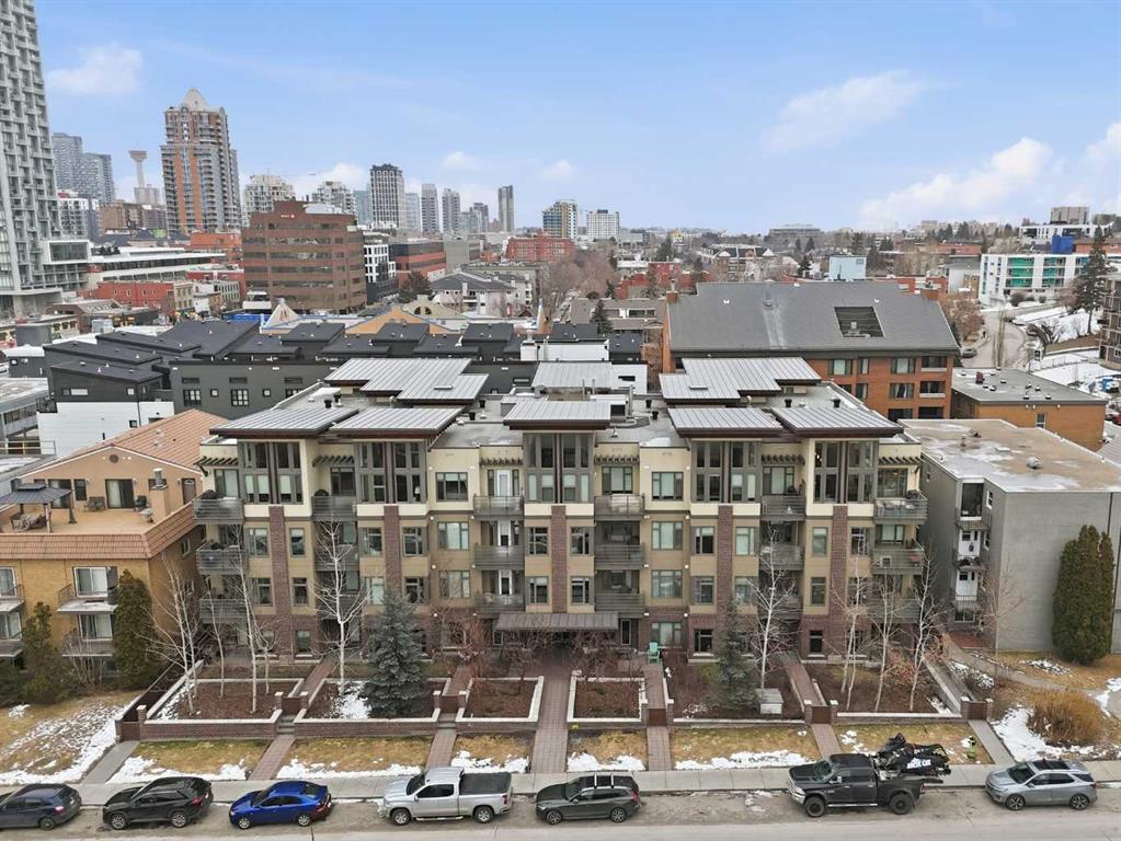 *OPEN HOUSE APRIL 25 12-2* Do you want to be in the heart of all the action of downtown Calgary? This PRIVATE ENTRANCE MAIN FLOOR CORNER CONDO is just steps from 17th Ave - located in the well managed, PET FRIENDLY, 2015 built TEN building - one of the most sought-after modern builds in the prestigious community of LOWER MOUNT ROYAL. Offering tremendous value at $415,000 - this 762 square foot 2 BEDROOM, 2 BATHROOM home is the perfect purchase for those looking for modern finishes and a newer building. This unit offers affordable monthly fees of $613.78, an ASSIGNED STORAGE LOCKER, and a TITLED PARKING SPACE located just steps from the elevator. In the well planned open concept design, you'll find two bedrooms, both with their own ensuite bathroom, as well as a FULL-SIZED LAUNDRY PAIR. The living space features West exposed windows making this a light-filled, cozy space. In the spacious kitchen and dining area, you'll love the cork floors, large island with QUARTZ COUNTERTOPS, and stainless steel appliance package complete with a beverage fridge. You’ll be impressed by the easy access into the unit from the TWO PATIO DOORS - forget the elevator and buzzing guests in—enjoy the direct-access convenience that FEELS MORE LIKE A TOWNHOUSE than a condo. FRESHLY PAINTED and cleaned (including the carpet), this unit is move-in ready and completely turn-key. With an INCREDIBLE LOCATION IN THE HEART OF CALGARY'S DOWNTOWN - the list of amenities just a short stroll away is endless. If you’re looking for that vibrant city lifestyle at an amazing price, this home is a must-see. With Calgary's ever-growing popularity, stop renting and watch your investment continue to rise. Call for a private showing!