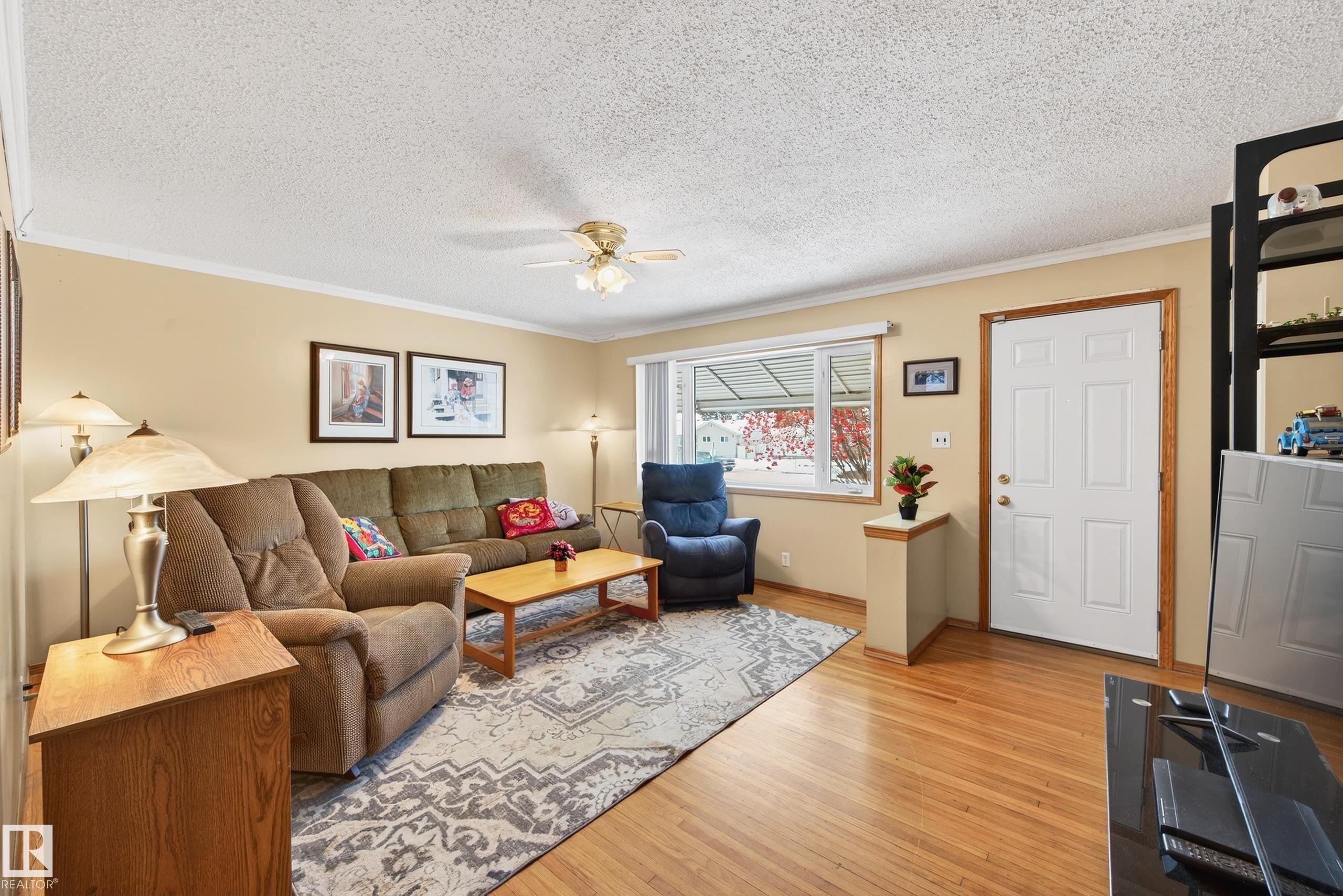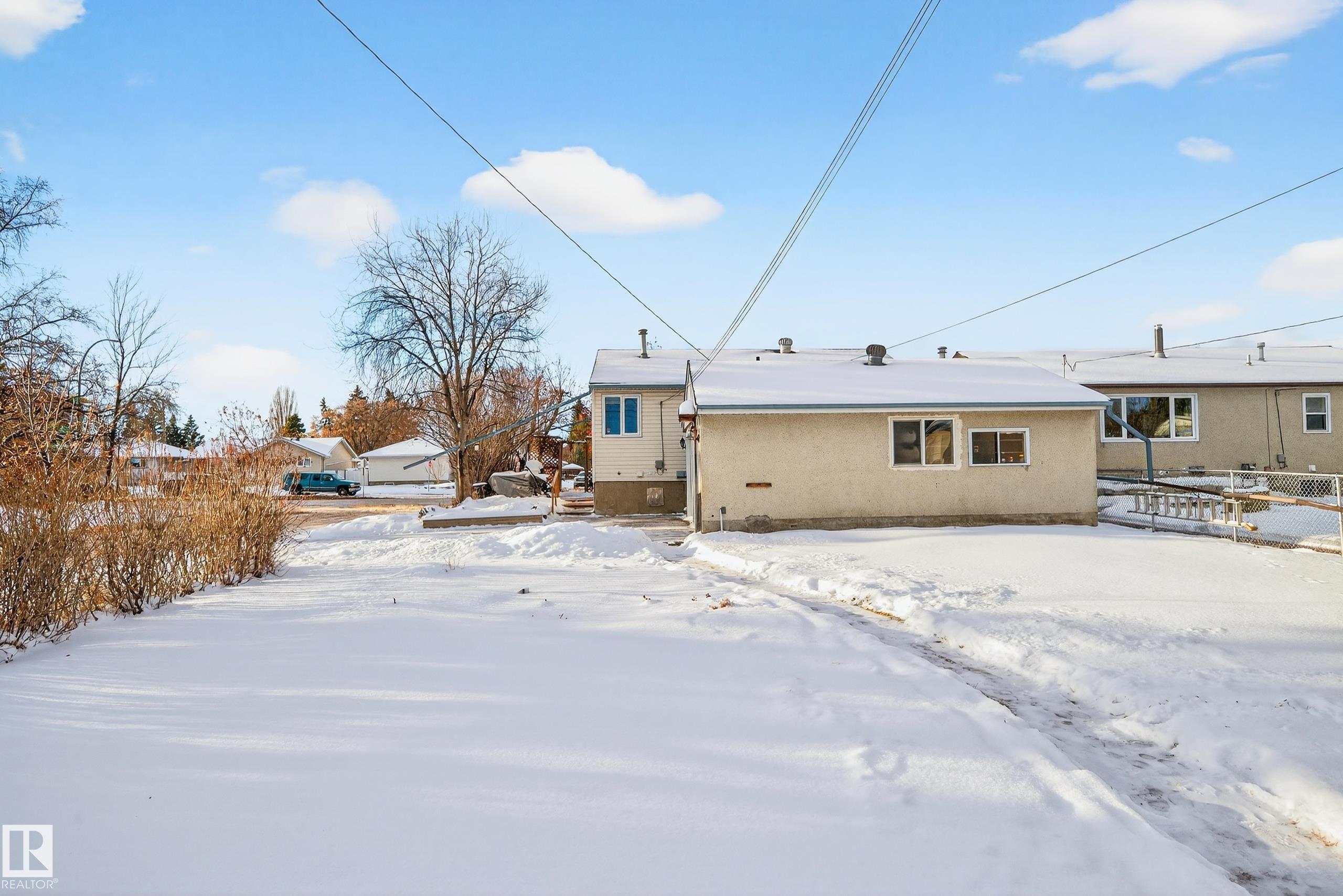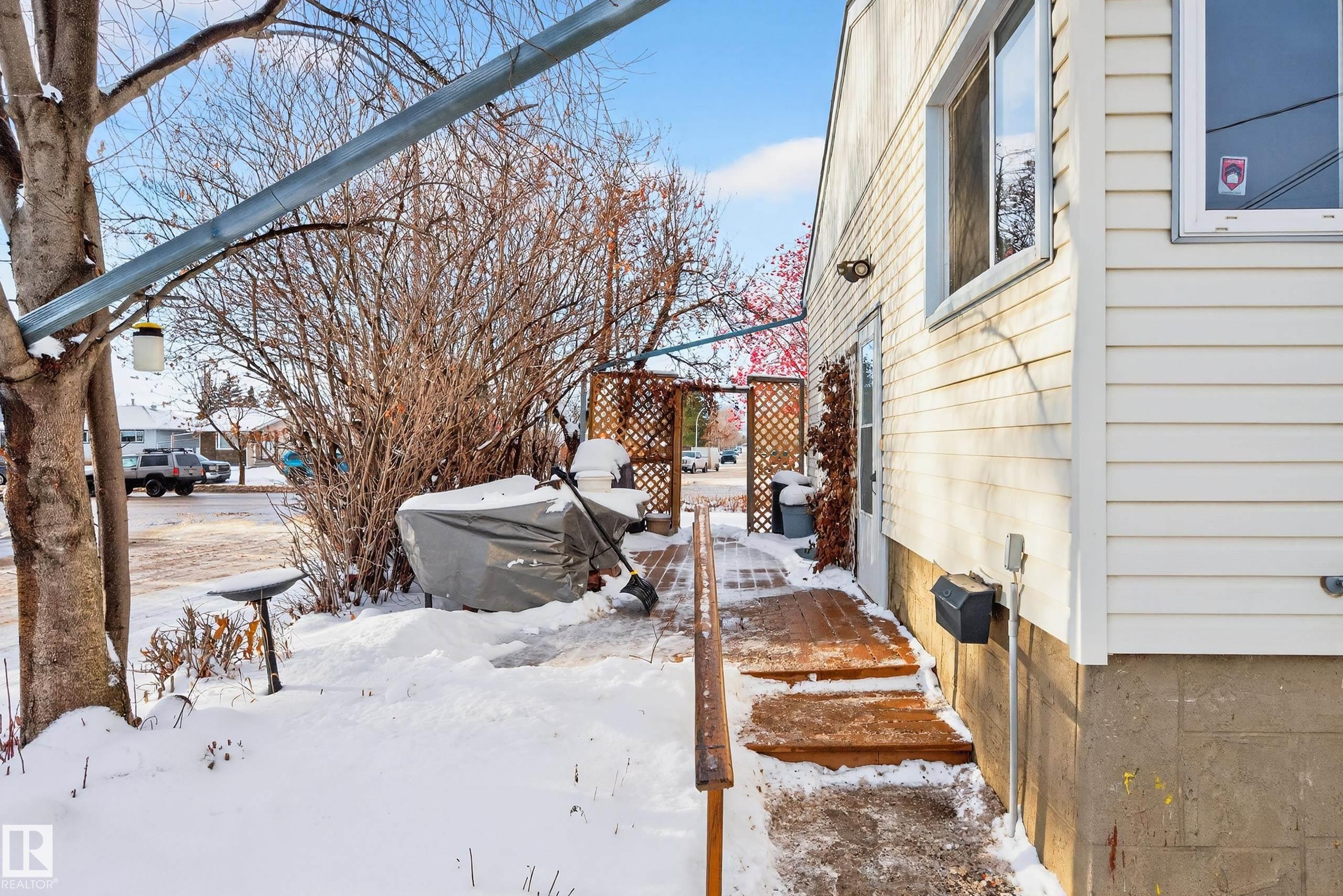 ATTN: DEVELOPERS & first-time home buyers! Lovely 4 bdrm + 2 bath bungalow on HUGE CORNER LOT (50x148 lot on 156 St & 108 Ave is 686 m2) now available. Main floor layout offers spacious living room, kitchen (with built-in dining table+new fridge '24 & new stove '23), hallway pantry, 2 bdrms & full bath (with walk-in shower). The basement offers large living room, additional 3rd & 4th bedrooms + a laundry /storage rm area & a 3pc bath. Side entry door could be a SEPARATE ENTRANCE to the basement. Windows have been upgraded to double pane vinyl since built - newest include 2 main floor bdrm windows (triple pane) in 1990's. New sewer line in Sept 2024 (house to street) + new plumbing under sink. Original hardwood flooring. Garage is heated with workshop + has accessible attic for storage. House has extra vapour barrier, tyvek house wrap, and upgraded siding - late 90’s. Deck on south side has upgraded low maintenance decking. Welcome to High Park - welcome home! :)