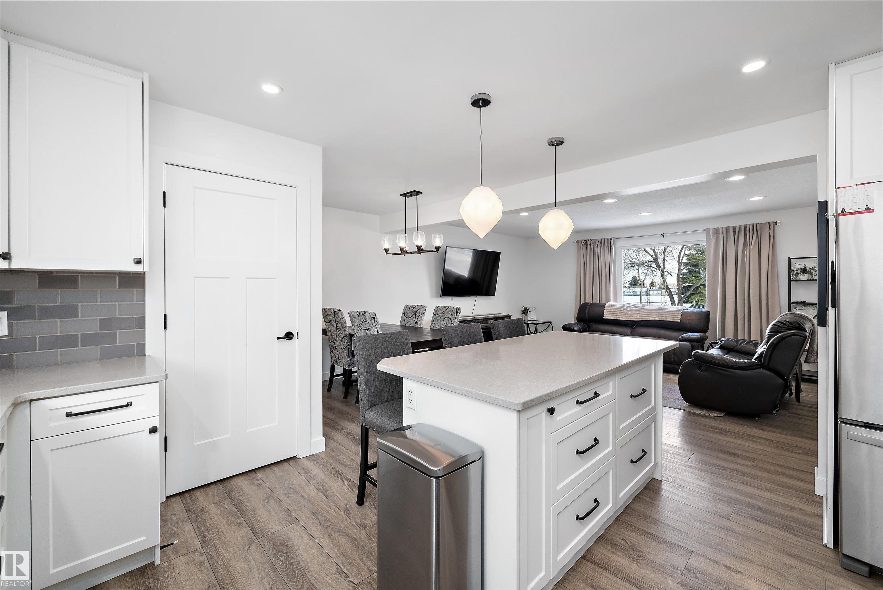 This stunning Rundle Heights home shows a 10! Featuring extensive recent renovations throughout, including a beautifully updated kitchen with quartz countertops, large 4-seat island, shaker cabinetry with soft-close drawers, and modern black hardware. The open floor plan is enhanced with a structural beam, stylish vinyl plank flooring, updated interior doors, pot lighting, and new light fixtures. The main bathroom has been fully refreshed and includes a relaxing soaker tub. Additional upgrades include central A/C, high-efficiency furnace, hot water tank, shingles, and newer vinyl fencing. Located directly across from a park and within walking distance to Ivor Dent K-9 School and St. Jerome Science Academy. Just minutes to the River Valley, Downtown, Anthony Henday, and Yellowhead Trail. Fantastic family home in a great location!