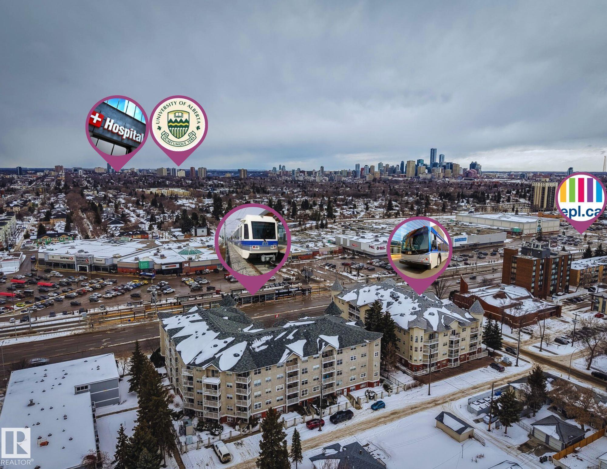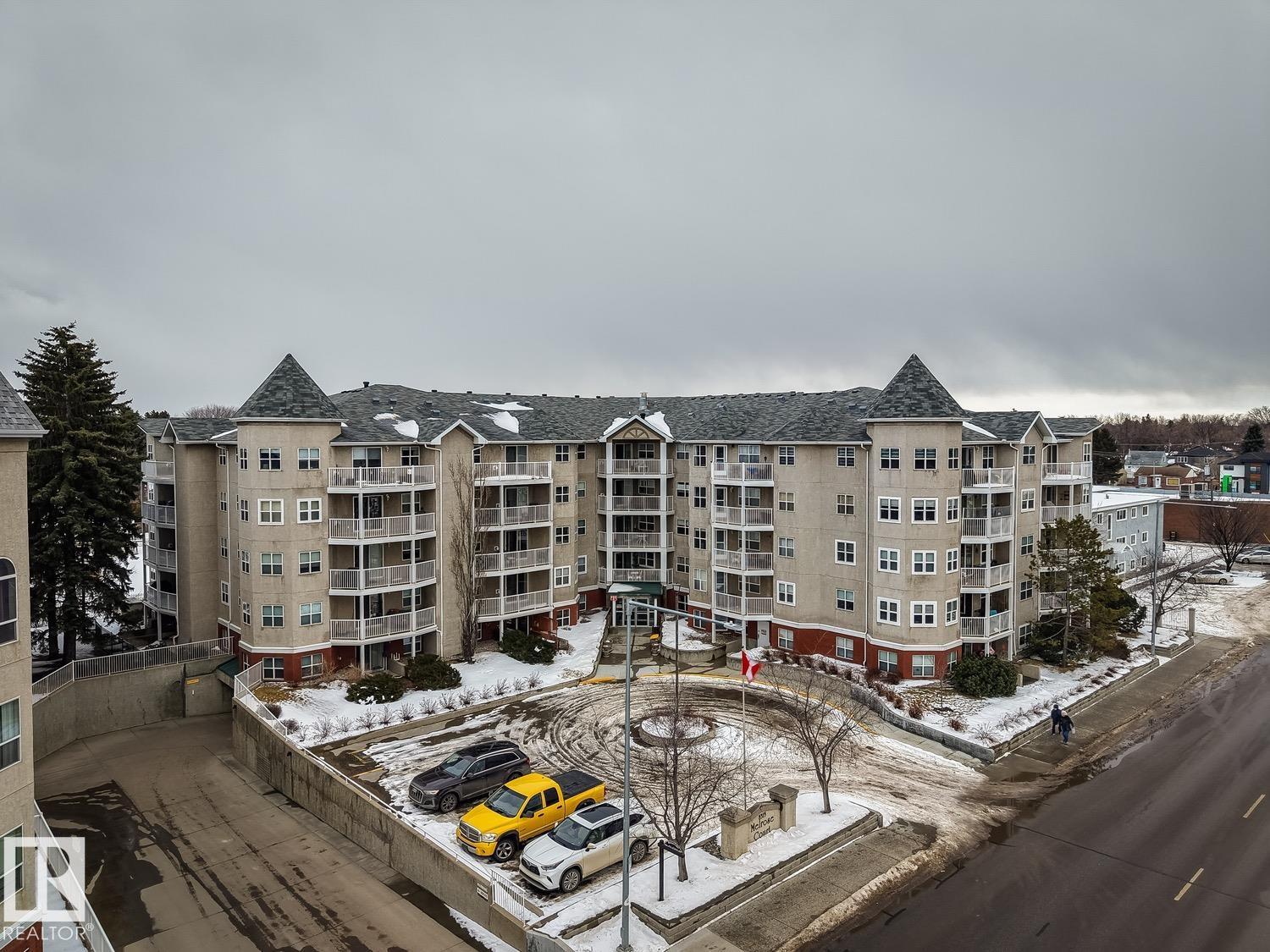 Welcome to this beautifully upgraded 2 bed, 2 bath condo in a well-maintained 50+ adult living building. Just steps to the LRT and bus stop, Bonnie Doon Mall and the University of Alberta. Newly renovated (2024) with new flooring, baseboards, freshly painted ceilings, refinished kitchen cabinets with new hardware, modern lighting, new sink and faucet, and newer fridge, convection/airfryer range, microwave, washer and dryer! Both bathrooms feature new toilets and faucets. New curtain rods and blackout curtains included. The fireplace has been regularly serviced. Bonus items that can stay include: four storage units with baskets in master, two exterior trellises with bench and storage racks, and a small upright deep freeze. Enjoy the northwest-facing balcony with afternoon sun. Includes one storage cage and one titled parking stall by the main garage door. Melrose Court offers a social room, kitchen, library, guest suite and self-serve car wash. Condo fees include internet and all utilities except power.