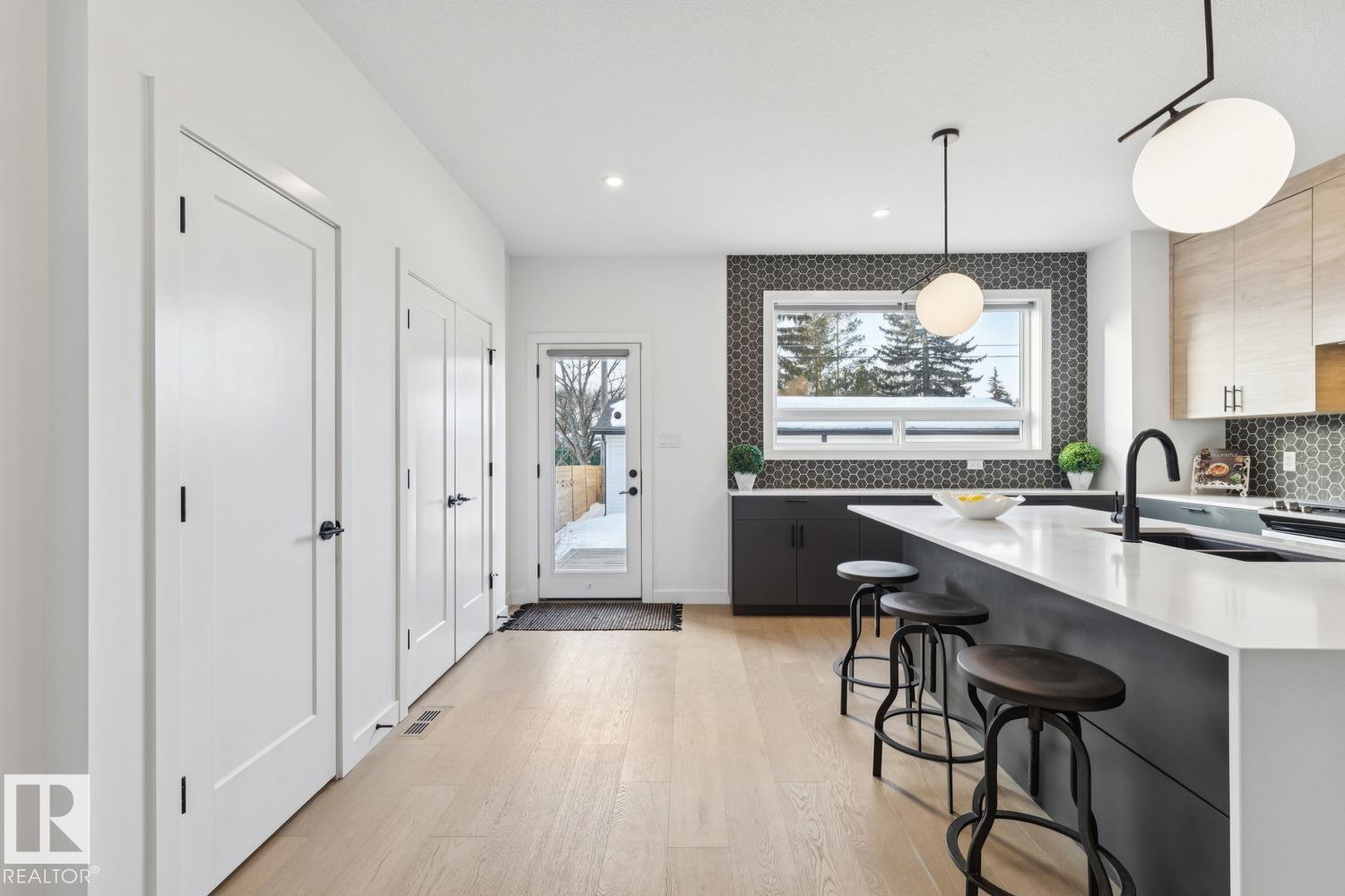 MORTGAGE HELPER – LEGAL 1-BEDROOM BASEMENT SUITE! Built by ACCENT INFILLS, Alberta’s 2020 Builder of the Year, The WINNIFRED is located in the highly sought after community of Westmount. This modern 4-bed, 4-bath, 2-storey home offers 1,574 sq. ft. (builder plans show 1,684 sq. ft.) of exceptional design & functionality. The exterior features striking Shou Sugi Ban burnt cedar with Hardie Board & Batten for standout curb appeal. Inside, enjoy 9-ft ceilings, oversized windows, & an open-concept main floor with a gourmet kitchen, stainless steel appliances, & a large waterfall island—perfect for entertaining. The primary bedroom boasts a vaulted ceiling, walk-in closet, & a spa-like 5 piece ensuite. Professionally finished 1 bedroom Legal basement suite with private entrance, kitchen, full bath & in-suite laundry—ideal for income or guests! West-facing rear deck & double garage included. Located on a tree-lined street near top schools, the Brewery District, trendy restaurants, & vibrant 124th Street.