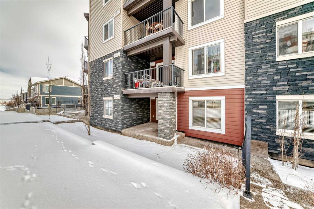 Ground floor cozy 2 bedroom plus Den and 2 baths is nestled in the family-friendly neighborhood of Kincora. Situated right in the midst of all kinds of amenities - transit routes, shopping centers, schools, recreational facilities, walk and bike paths. This is urban living at its best!. Freshly painted, spacious entrance you are ushered into the open floor concept of living room and dining area. To the left of the entrance is good size Den and the laundry room. Then there is the 4pce bathroom and a good size bedroom. To the right as you enter is good size kitchen with plenty of cabinets and counter top space, also the primary/master bedroom complete with walk in closet and 4pce ensuite. The porch off the living room has good view of the complex and neighborhood for those summer days hang out. Condo fees cover both heat and water, offering additional convenience. With easy access to Stoney Trail, Shaganappi Trail, and Beddington Trail, you'll enjoy a hassle-free commute and excellent connectivity to everything you need.