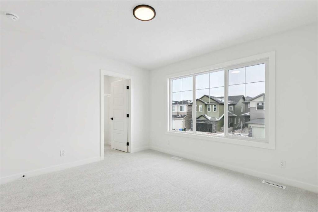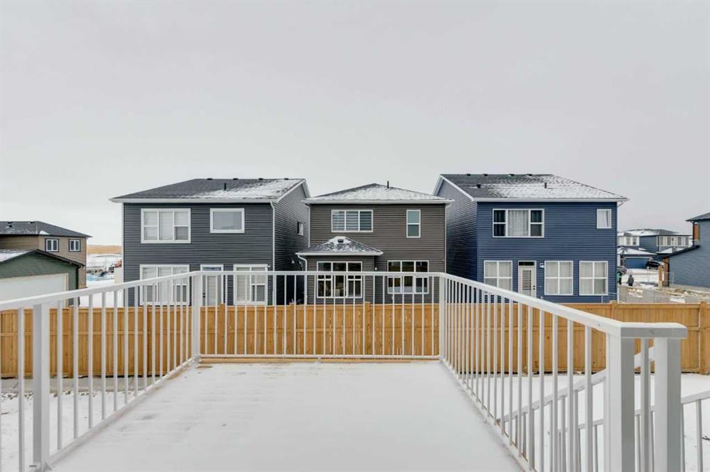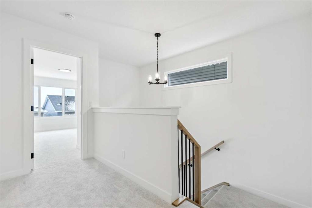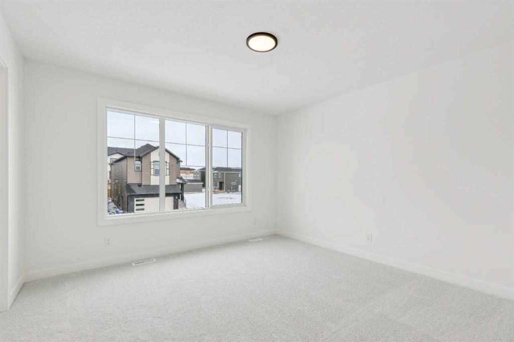 Welcome to the Birkley 3 by Sterling Homes Calgary! Built by a trusted builder with over 70 years of experience, this home showcases on-trend, designer-curated interior selections tailored for a home that feels personalized to you. Energy efficient and smart home features, plus moving concierge services included in each home. Welcome to this beautifully appointed 2025 specification home situated on a sunshine lot. The kitchen features a chimney hood fan with microwave wall unit, pendant lighting above the eating ledge, and a convenient walk-in pantry. The ensuite offers a fiberglass base shower with tiled walls, a tiled niche, and a bank of drawers for added storage. Fall in love with the maple railing with iron spindles that add the perfect finishing touch to this home. Photos are representative. Enjoy thoughtful upgrades throughout, including a side entrance, painted basement floor, larger basement windows, and added garage width. Relax by the electric fireplace with maple cap or step out onto the 10' x 12' rear deck complete with BBQ gas line. This energy-efficient home is Built Green certified and includes triple-pane windows, a high-efficiency furnace, and a solar chase for a solar-ready setup. With blower door testing, plus an electric car charger rough-in, it’s designed for sustainable, future-forward living. Featuring a full range of smart home technology, this home includes a programmable thermostat, ring camera doorbell, smart front door lock, smart and motion-activated switches—all seamlessly controlled via an Amazon Alexa touchscreen hub. Spme photos are a representative.