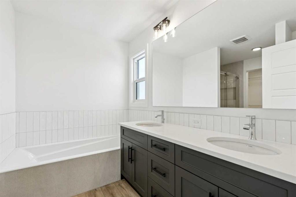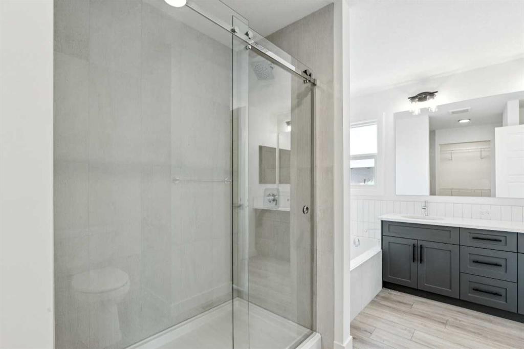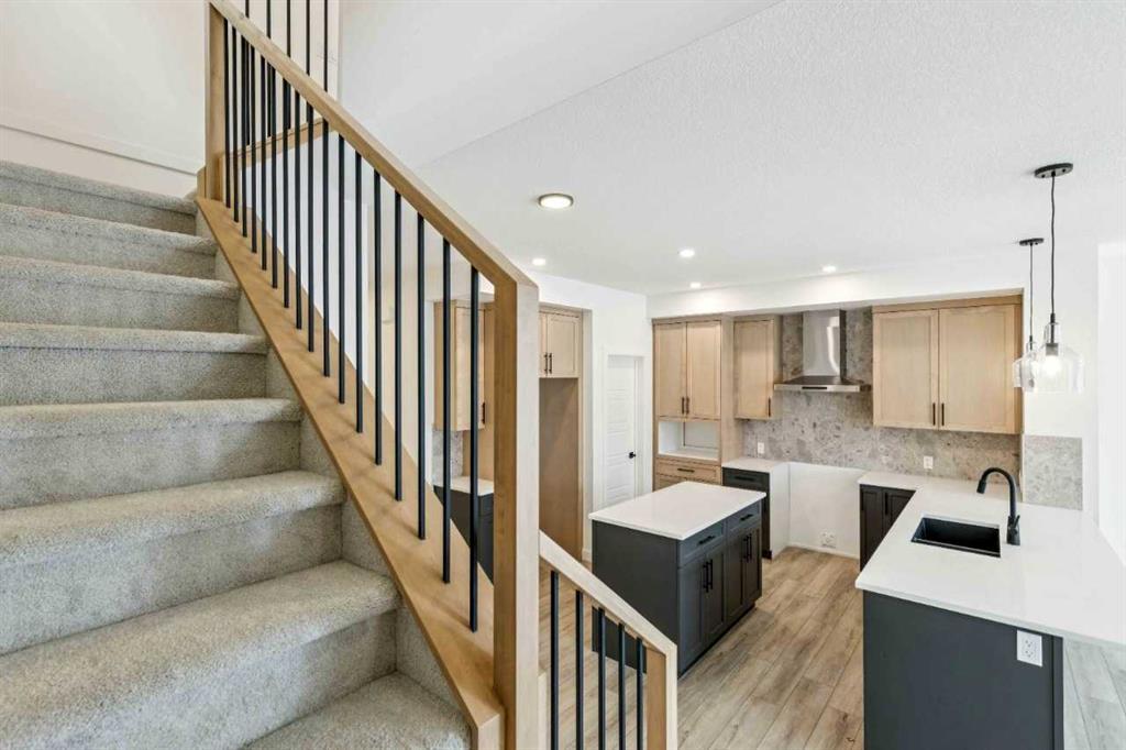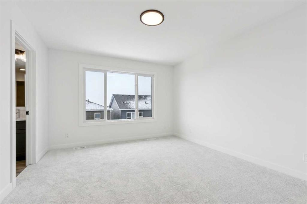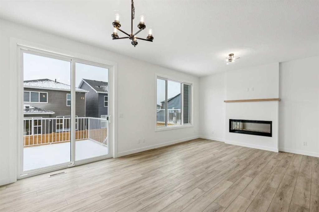 Welcome to the Birkley 3 by Sterling Homes Calgary! Built by a trusted builder with over 70 years of experience, this home showcases on-trend, designer-curated interior selections tailored for a home that feels personalized to you. Energy efficient and smart home features, plus moving concierge services included in each home. Welcome to this beautifully appointed 2025 specification home situated on a sunshine lot. The kitchen features a chimney hood fan with microwave wall unit, pendant lighting above the eating ledge, and a convenient walk-in pantry. The ensuite offers a fiberglass base shower with tiled walls, a tiled niche, and a bank of drawers for added storage. Fall in love with the maple railing with iron spindles that add the perfect finishing touch to this home. Photos are representative. Enjoy thoughtful upgrades throughout, including a side entrance, painted basement floor, larger basement windows, and added garage width. Relax by the electric fireplace with maple cap or step out onto the 10' x 12' rear deck complete with BBQ gas line. This energy-efficient home is Built Green certified and includes triple-pane windows, a high-efficiency furnace, and a solar chase for a solar-ready setup. With blower door testing, plus an electric car charger rough-in, it’s designed for sustainable, future-forward living. Featuring a full range of smart home technology, this home includes a programmable thermostat, ring camera doorbell, smart front door lock, smart and motion-activated switches—all seamlessly controlled via an Amazon Alexa touchscreen hub. Spme photos are a representative.