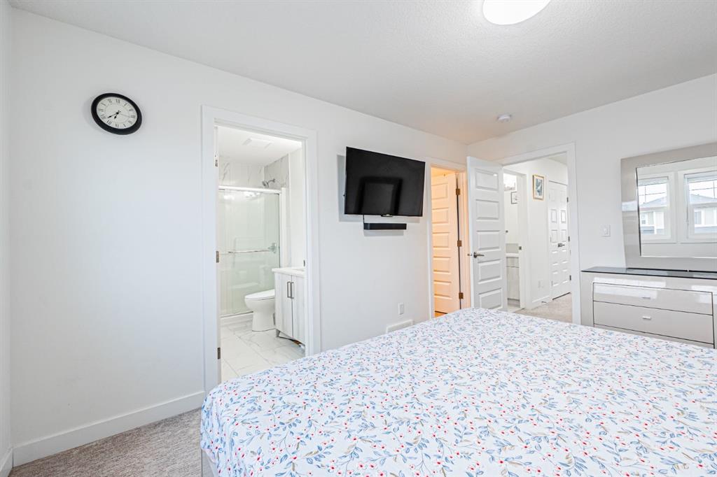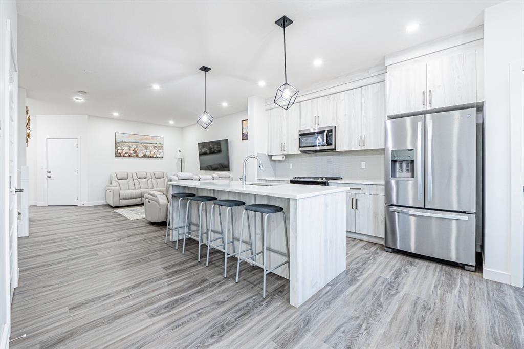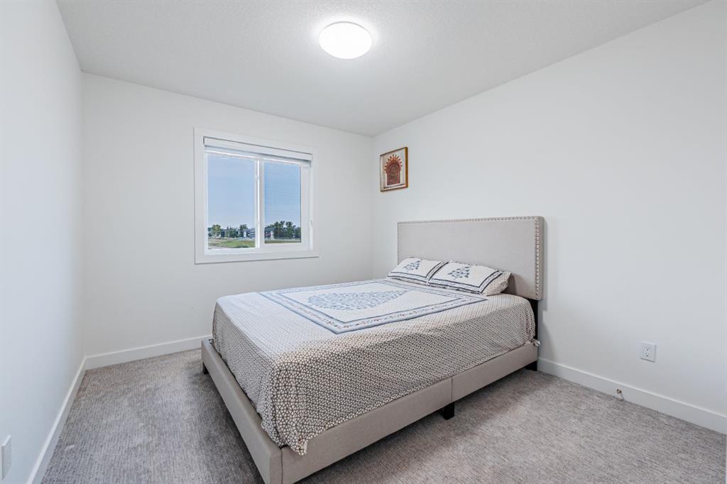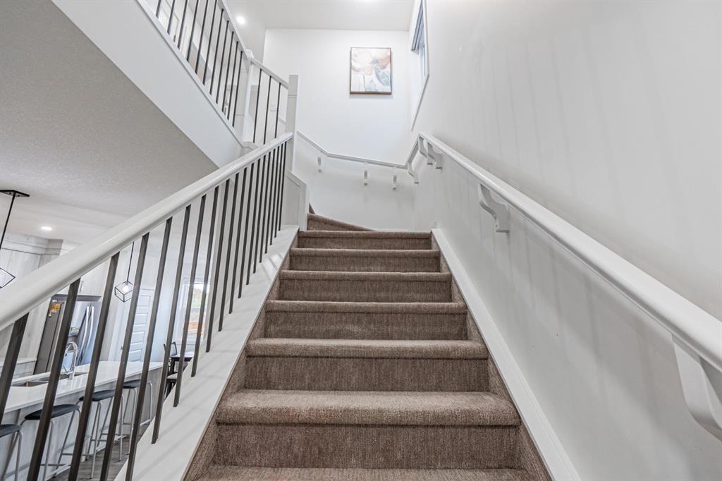 4 BEDROOMS + DEN | 3.5 BATHS | FRONT ATTACHED GARAGE | ILLEGAL BASEMENT SUITE | HIGH-END FINISHES | PRIME LOCATION | Welcome to this stunning and exceptionally maintained front garage duplex in the sought-after community of Midtown, Airdrie. This beautiful home showcases a modern design, high-end finishes, and a functional layout perfect for families, professionals or investors. With a total of 4 bedrooms plus a den and 3.5 bathrooms, this property offers exceptional comfort, versatility, and value. The main floor features a bright and open-concept layout that seamlessly connects the living, dining, and kitchen areas—perfect for entertaining or everyday family life. The elegant kitchen is a true highlight, complete with stainless steel appliances, ceiling-height cabinetry, quartz countertops, and a large island that provides additional workspace and seating. A cozy living room invites relaxation, while the dining area opens to a fully fenced and landscaped backyard with a deck and BBQ gas line, ideal for summer gatherings. A convenient half bathroom completes the main floor. Upstairs, you’ll find three spacious bedrooms, including a luxurious primary suite with a walk-in closet and private ensuite bathroom. Two additional bedrooms share a full bath, and the upstairs laundry adds everyday convenience. The upper level offers a versatile layout perfect for growing families. The basement is fully developed with an illegal suite featuring a separate side entry, large living area, modern kitchen, bedroom plus den, and a full bathroom. This space is currently rented, making it an ideal mortgage helper or a perfect setup for extended family. Located in a quiet and family-friendly area, this home is just steps away from parks, walking trails, schools, and essential amenities such as Co-op Gas, Tim Hortons, and shopping. With 8 years of new home warranty remaining, this property offers both peace of mind and exceptional value. Move-in ready and waiting for you—schedule your private viewing today!