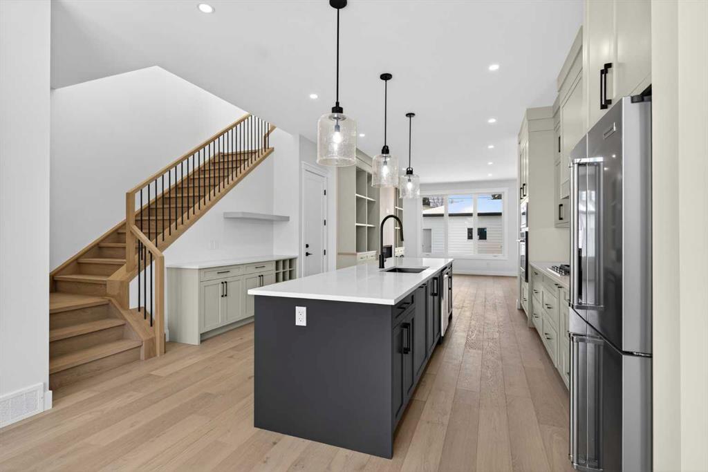 READY FOR IMMEDIATE OCCUPANCY! Welcome to the epitome of urban elegance, a stunning semi detached inner~city infill perfectly situated in one of Calgary’s most desirable communities, just minutes from downtown. This exceptional home includes a LEGAL BASEMENT SUITE, offering a fantastic opportunity for additional income or a comfortable private space for guests. Nestled in a quiet, tree lined neighbourhood yet only moments from the vibrant energy of downtown, this residence truly offers the best of both worlds, tranquility and convenience. Step inside and discover a meticulously designed, modern luxury home that blends style and functionality. The open concept main floor is ideal for entertaining, featuring a chef inspired kitchen with a massive quartz island, premium finishes, and ample workspace to spark your culinary creativity. The inviting living area showcases a stunning fireplace surrounded by custom built-ins, while the rear mudroom and convenient two piece powder room add everyday practicality. Step outside to your west facing backyard sanctuary, perfect for relaxing or entertaining long into Calgary’s summer evenings. Upstairs, the spacious bedrooms are designed for peace and comfort, each with large windows that fill the rooms with natural light. The primary suite impresses with a vaulted ceiling, a generous walk~in closet (offering more space to store your treasures than you’ll find in most infill homes) and an elegant and well appointed ensuite. An upper laundry room with sink also presents on this floor of the home. The lower level is masterfully finished and includes a full kitchen, a MASSIVE living area, a bedroom, and a bathroom, all enhanced by in~floor heating for ultimate comfort. Enjoy being just minutes from trendy boutiques, cafes, parks, and entertainment venues. Embrace the vibrant Rosscarrock lifestyle with this exceptional infill home ~ where luxury, location and lifestyle meet!