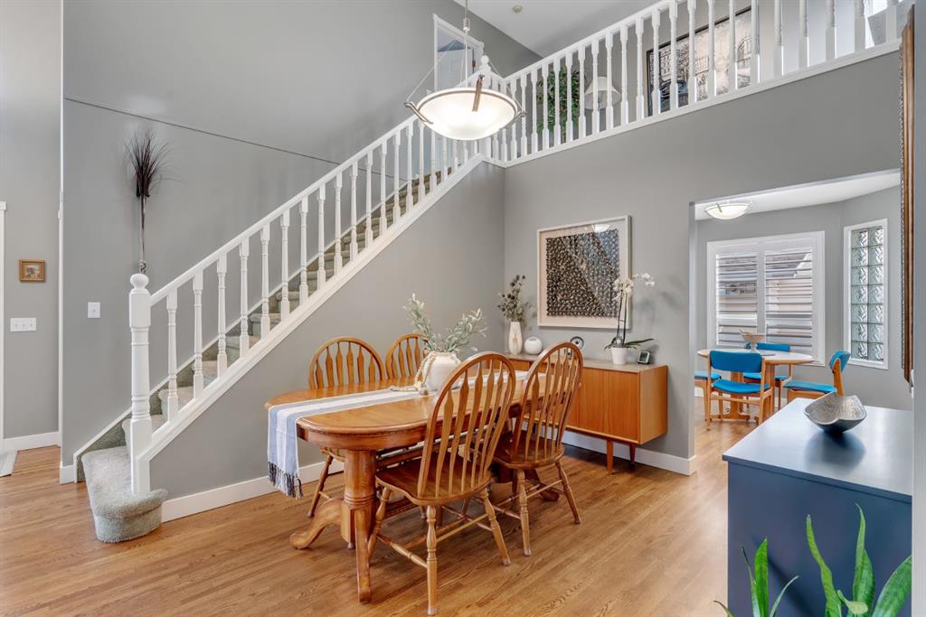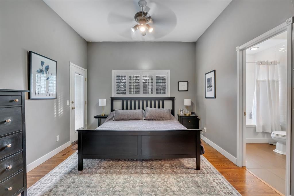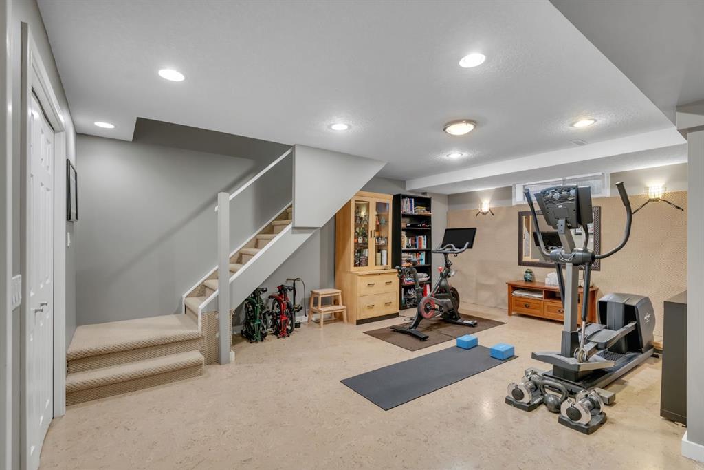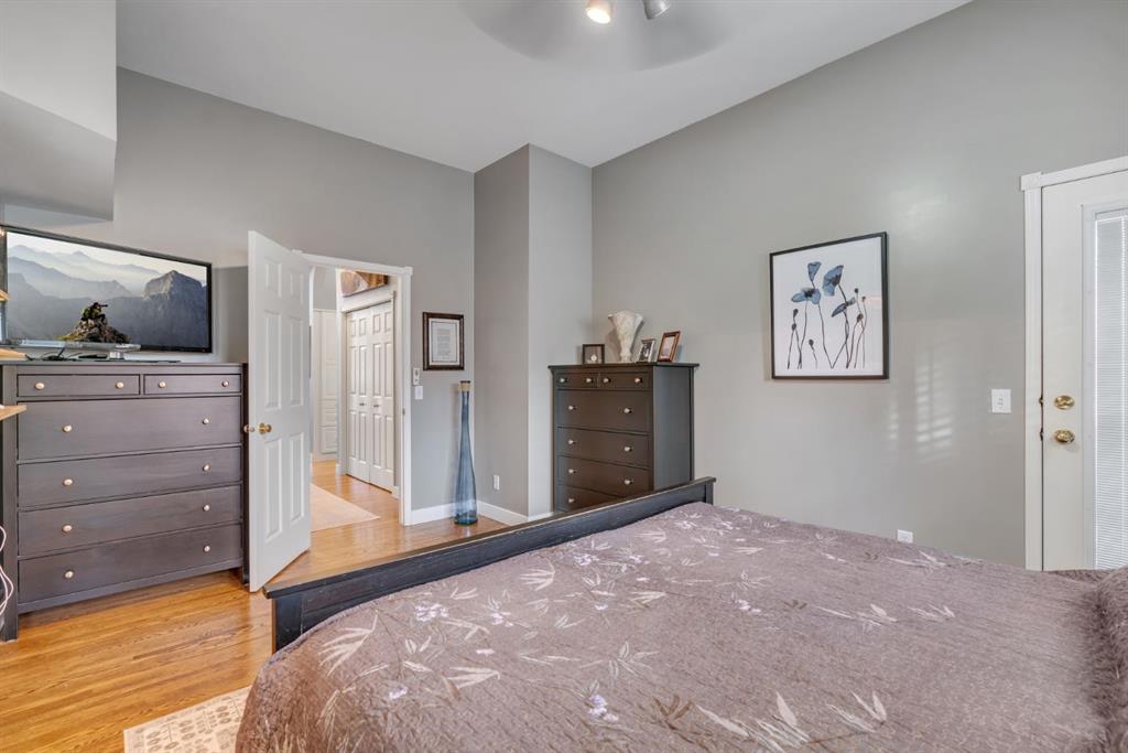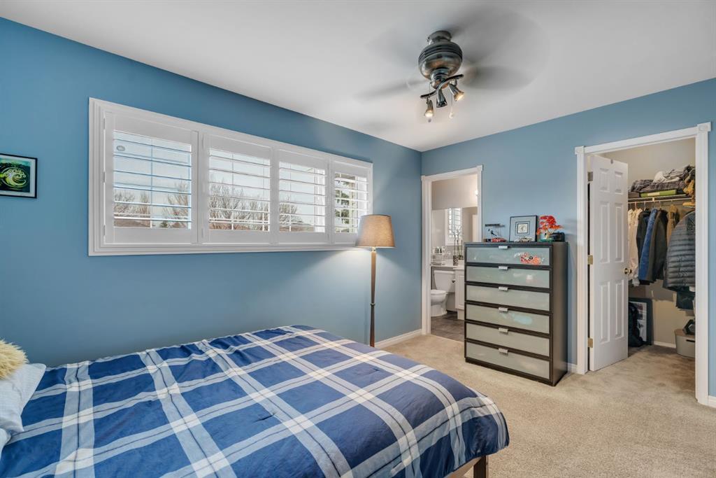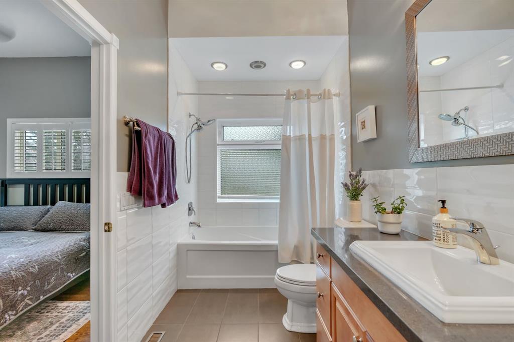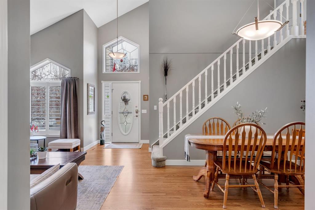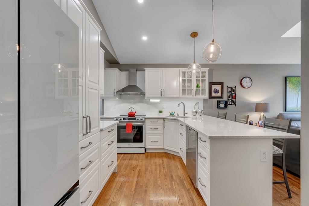 This beautifully upgraded home backs onto greenspace with a sunny south backyard and offers bungalow style living with bonus space for guests or family. As you enter, the main level features soaring vaulted ceilings in the living and dining rooms, refinished hardwood floors throughout, and an upgraded white kitchen with quartz countertops, eating bar, under-cabinet lighting, pull-out drawers, a pantry with organizers, and a newer white glass front Samsung Bespoke fridge with beverage center and induction stove (2023) plus the nook has extra storage. The family room with skylights and beautiful gas fireplace with tile surround provides direct access to the no-maintenance deck overlooking the greenspace. The primary bedroom on the main floor offers the ultimate convenience—no stairs required—and includes a walk-in closet, updated ensuite with new shower and soaker tub and heated floors. It also provides deck access. A main floor den/office, powder room and laundry room complete this ideal layout. Upstairs, the loft is perfect for a reading area or office and the additional bedroom with walk-in closet and ensuite make the perfect private space for older kids, guests, or extended family. The developed basement adds even more versatility with two additional bedrooms (one with a built-in Murphy bed), bathroom with shower, a spacious rec room with a gas fireplace, workout area with cork flooring and plenty of storage. Additional updates and features include: air conditioning, all Poly-B replaced, California shutters, new garage door (2023), newer furnace (2019), extra-wide driveway, gas BBQ line on the deck and backyard shed. This home truly combines the ease of one level living with the flexibility of additional space — a rare and truly special find in Riverbend! Ideally located on one of the community’s best streets, it backs directly onto greenspace and is just a short walk to the Bow River pathways, Quarry Park amenities, and offers quick access to Glenmore Trail and Deerfoot- don't miss out on this great home!