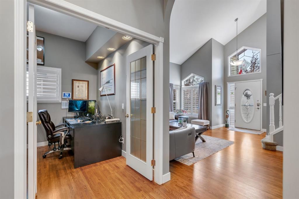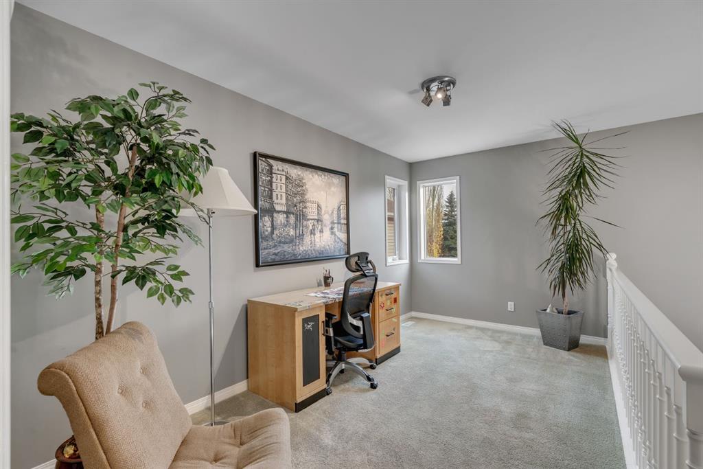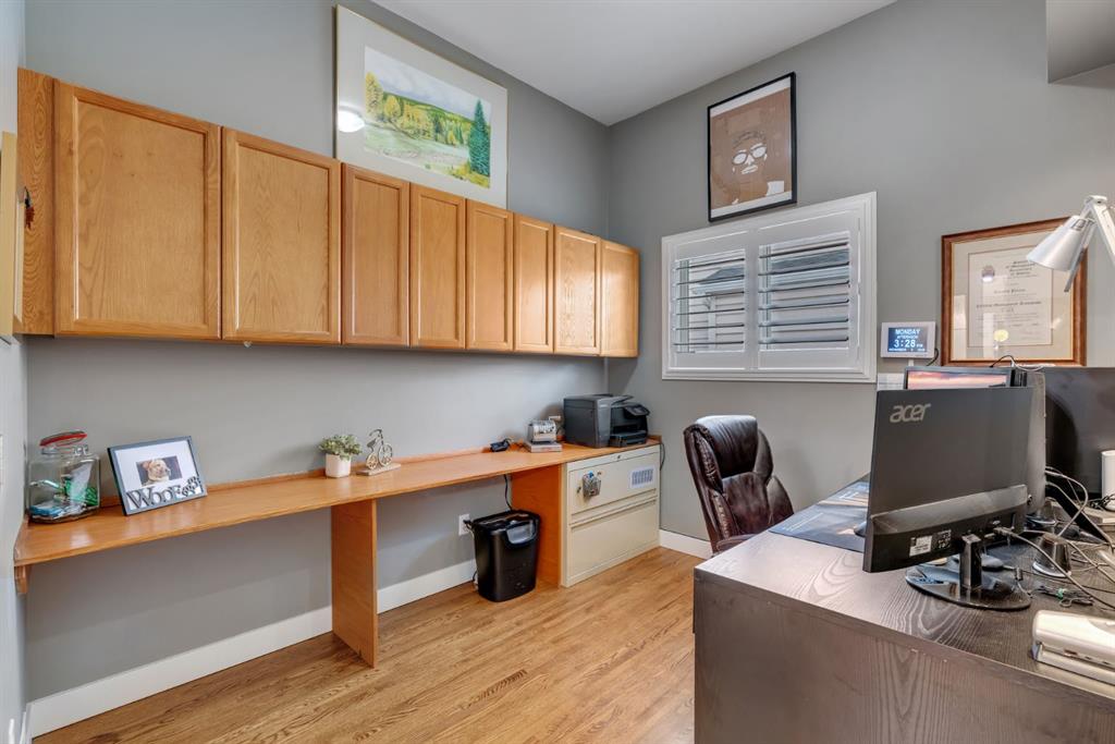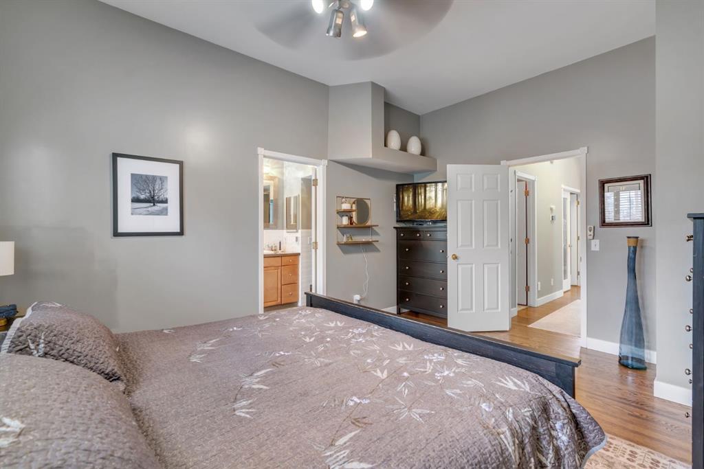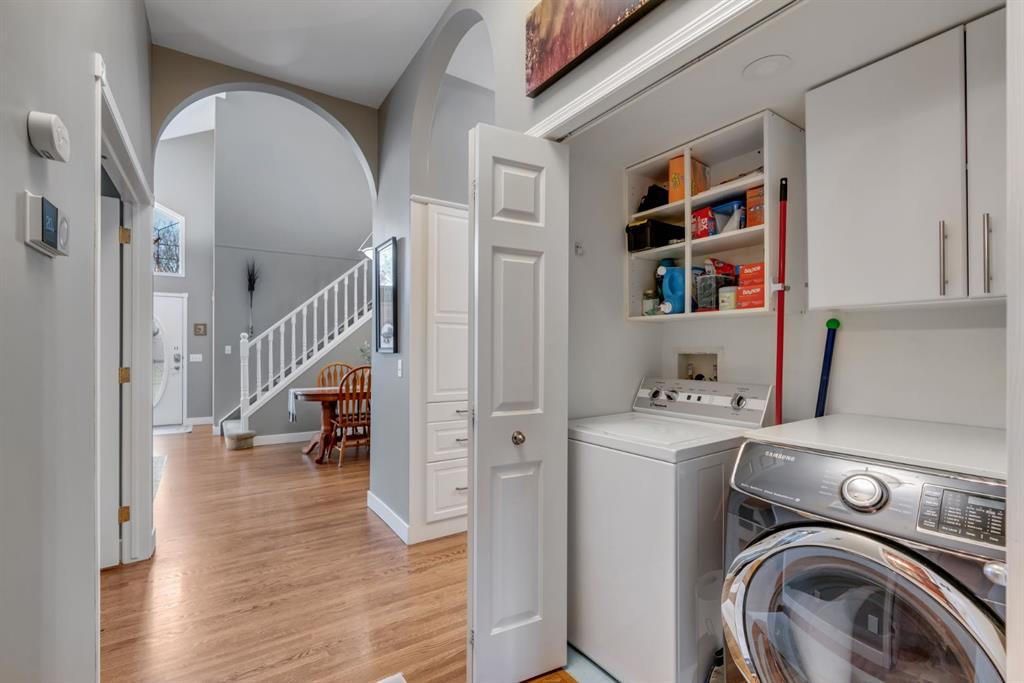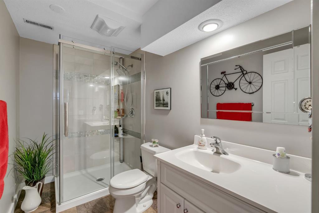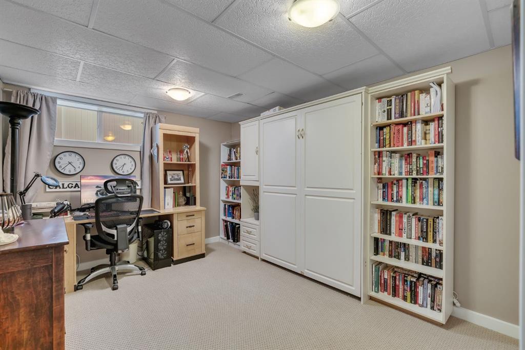 This beautifully upgraded home backs onto greenspace with a sunny south backyard and offers bungalow style living with bonus space for guests or family. As you enter, the main level features soaring vaulted ceilings in the living and dining rooms, refinished hardwood floors throughout, and an upgraded white kitchen with quartz countertops, eating bar, under-cabinet lighting, pull-out drawers, a pantry with organizers, and a newer white glass front Samsung Bespoke fridge with beverage center and induction stove (2023) plus the nook has extra storage. The family room with skylights and beautiful gas fireplace with tile surround provides direct access to the no-maintenance deck overlooking the greenspace. The primary bedroom on the main floor offers the ultimate convenience—no stairs required—and includes a walk-in closet, updated ensuite with new shower and soaker tub and heated floors. It also provides deck access. A main floor den/office, powder room and laundry room complete this ideal layout. Upstairs, the loft is perfect for a reading area or office and the additional bedroom with walk-in closet and ensuite make the perfect private space for older kids, guests, or extended family. The developed basement adds even more versatility with two additional bedrooms (one with a built-in Murphy bed), bathroom with shower, a spacious rec room with a gas fireplace, workout area with cork flooring and plenty of storage. Additional updates and features include: air conditioning, all Poly-B replaced, California shutters, new garage door (2023), newer furnace (2019), extra-wide driveway, gas BBQ line on the deck and backyard shed. This home truly combines the ease of one level living with the flexibility of additional space — a rare and truly special find in Riverbend! Ideally located on one of the community’s best streets, it backs directly onto greenspace and is just a short walk to the Bow River pathways, Quarry Park amenities, and offers quick access to Glenmore Trail and Deerfoot- don't miss out on this great home!