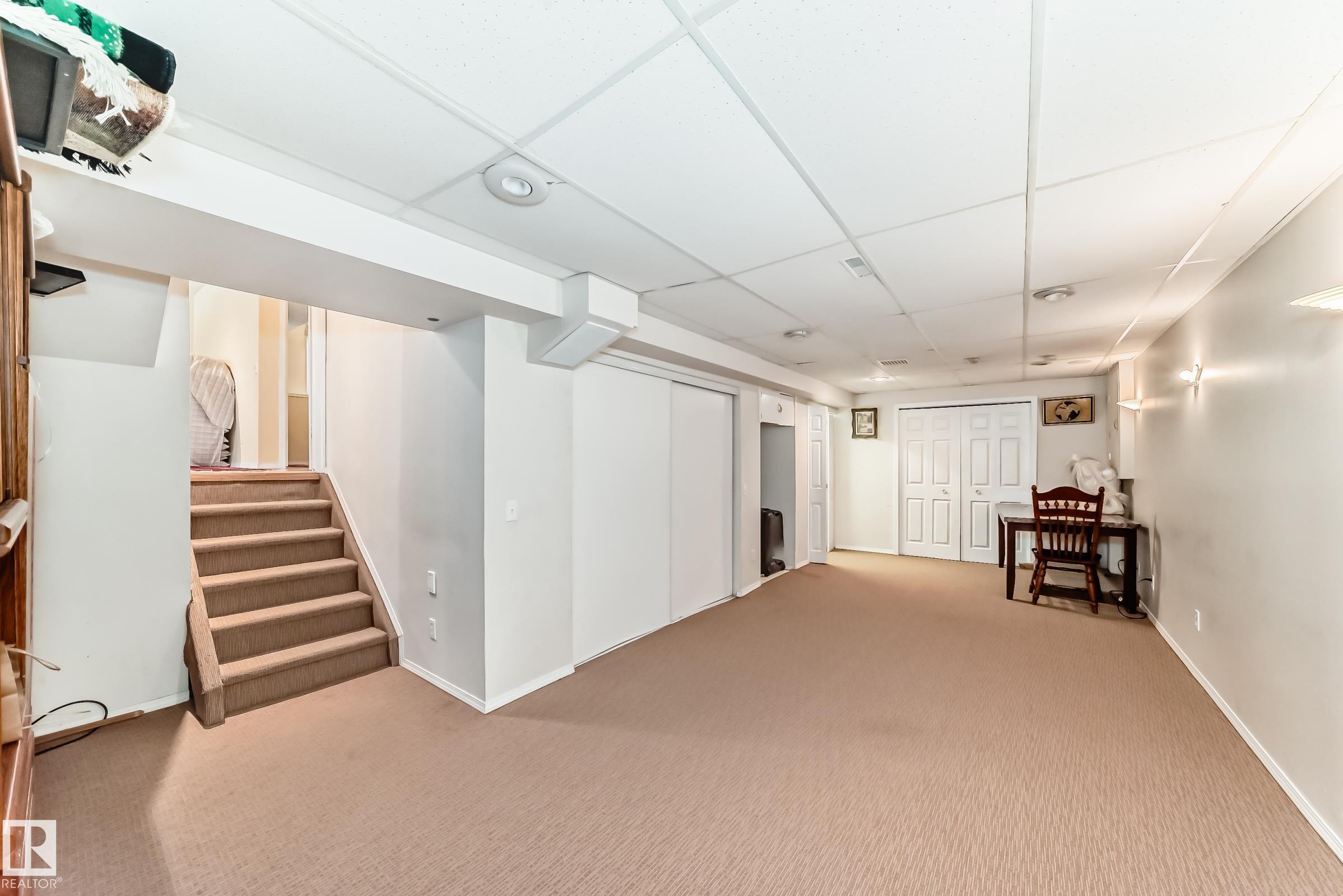 Best describes this Charming 4 level split in one of the highly-rated residential neighborhoods in Southwest Edmonton features, a total of 4 bedrooms, den & 3 full baths. It has Approximately 2468 sqft of total living space on all finished levels. Recent Upgrades include, new roof (2019) Furnace (2022) new hot water tank (2025) & new carpet & deck in 2026. Welcoming main floor highlights, a living & dining room combo with Vaulted ceilings. Large Eat-in kitchen with garden door to a Super size deck overlooking, a fully fenced back yard for the family to enjoy. Primary bedroom offers, a 3 piece En-suite & Walk-in closet. Third level features. a massive family room with wood burning fire place, 4th bedroom & a full bath. Basement has a huge rec room, den (large enough to use as a bedroom) utility room, laundry & ample storage space. This great family home is conveniently located nearby School, park/play ground & public transportation with a quick access to Anthony Henday drive. Pride of Ownership is evident!