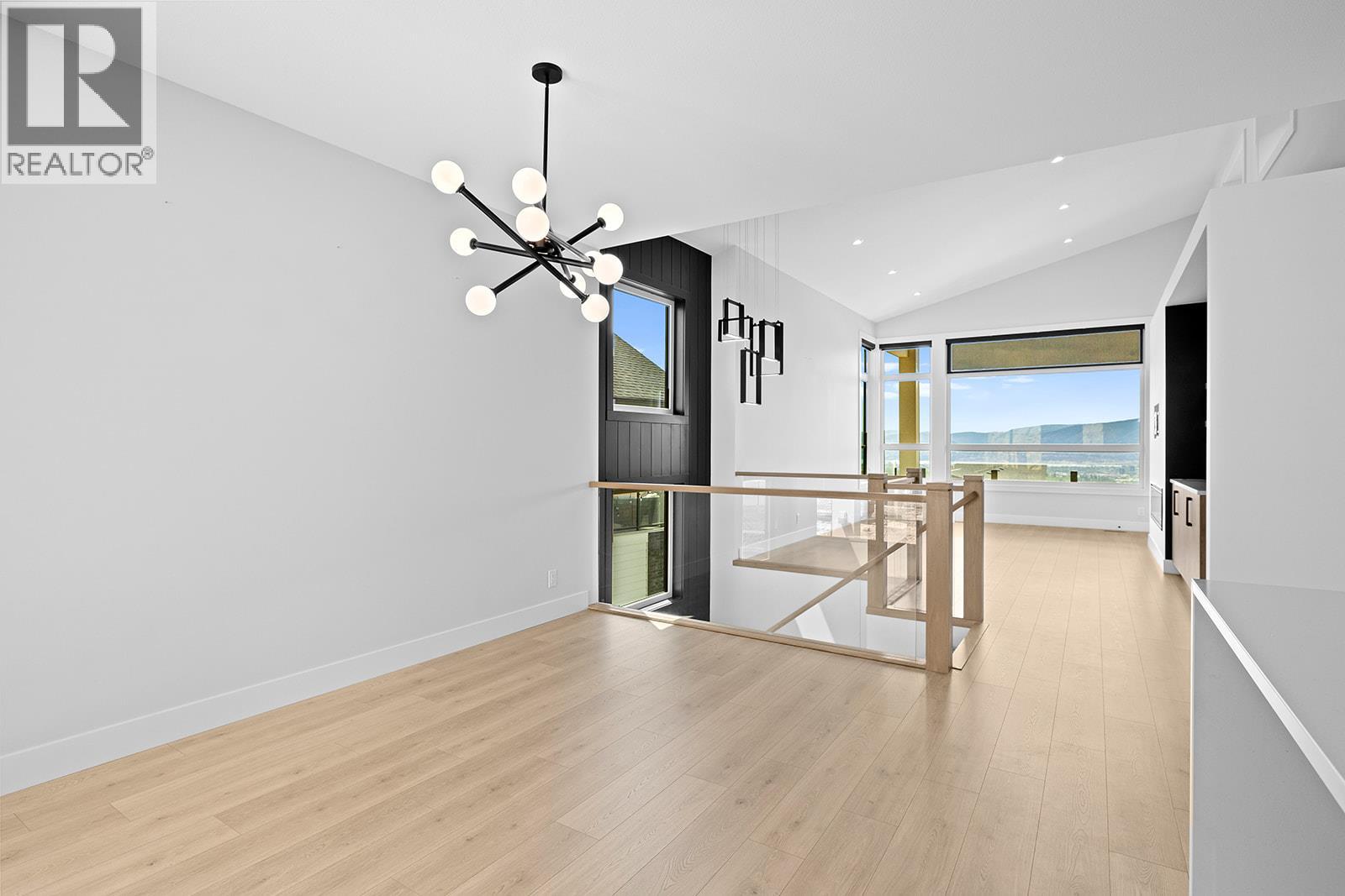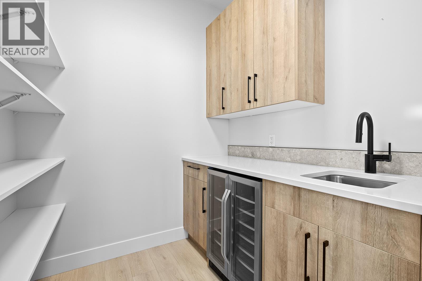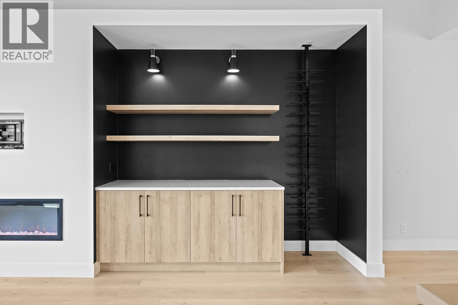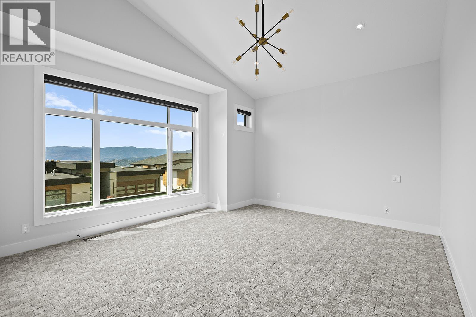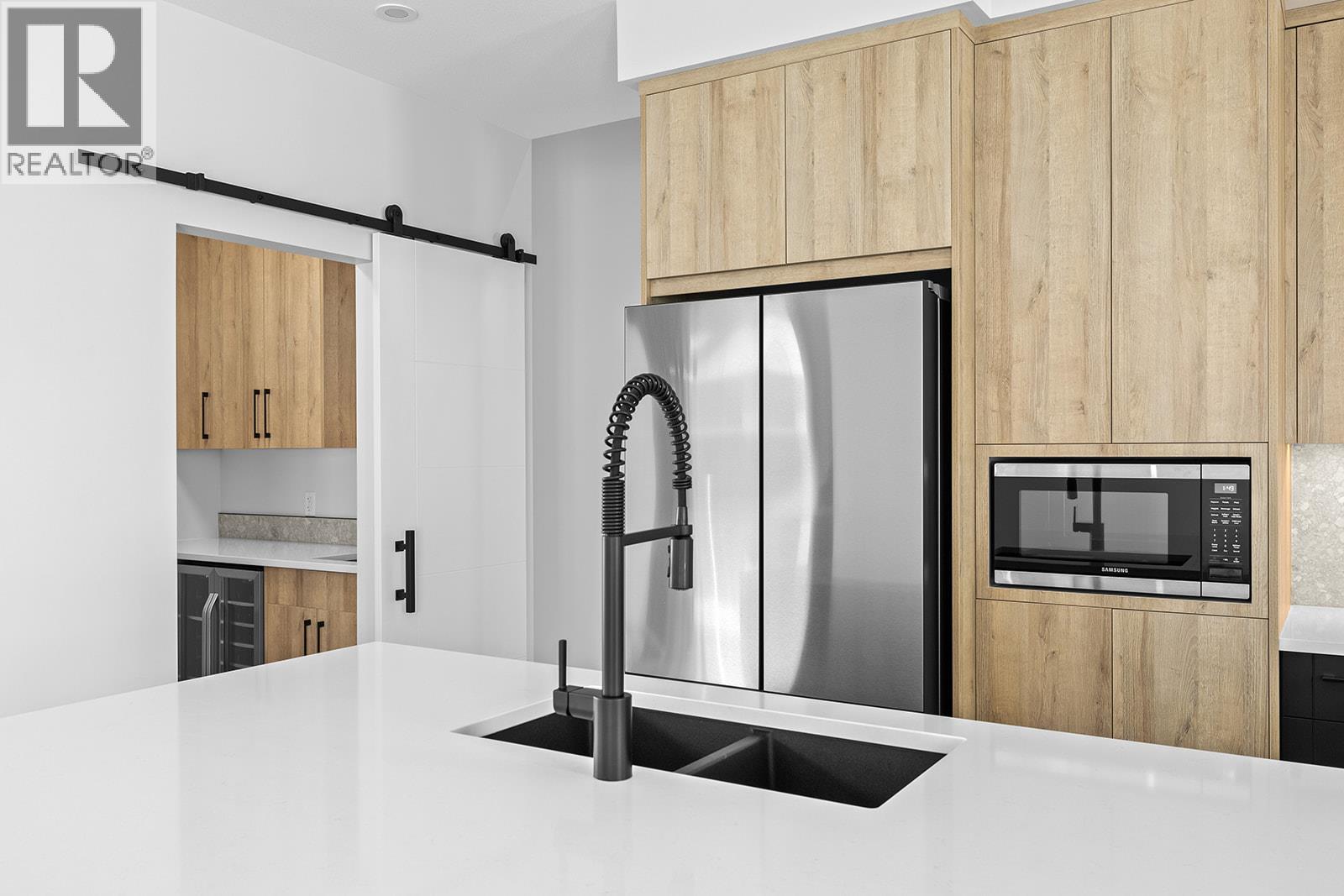Carrington Homes presents their stunning Showhome, offering refined living with views of Okanagan Lake, elegant design, and a legal suite for added flexibility. From the moment you step inside, this home makes a lasting impression. The main living area is bright with vaulted ceilings and expansive windows that flood the space with natural light. The great room is an architectural showpiece, featuring a 16-foot wall with a sleek electric fireplace, custom floating cabinetry and shelving, modern wall sconces, and an open-air wine display that brings a luxurious touch to the space. The chef-inspired kitchen is a blend of modern design and function, featuring contrasting cabinetry, premium finishes, and a fully outfitted butler’s pantry, complete with a beverage fridge, second sink, melamine shelving, and both upper and lower cabinets. Offering exceptional versatility, the home includes a triple car garage: a double garage serving the main residence, plus a single garage with ideal access for the suite. The 2-bed 1-bath legal suite features its own entrance, in-suite laundry, and a full 6-piece stainless steel appliance package. Every detail of this home has been curated to combine luxury, function, and comfort. Located just 10 minutes from Downtown, this prime location places you in a quiet neighbourhood, and within easy reach of popular amenities with golf courses, parks, and hiking trails are all nearby, and day-to-day essentials like groceries, restaurants, and coffee shops only minutes away. Simply move in, and enjoy Kelowna Life.