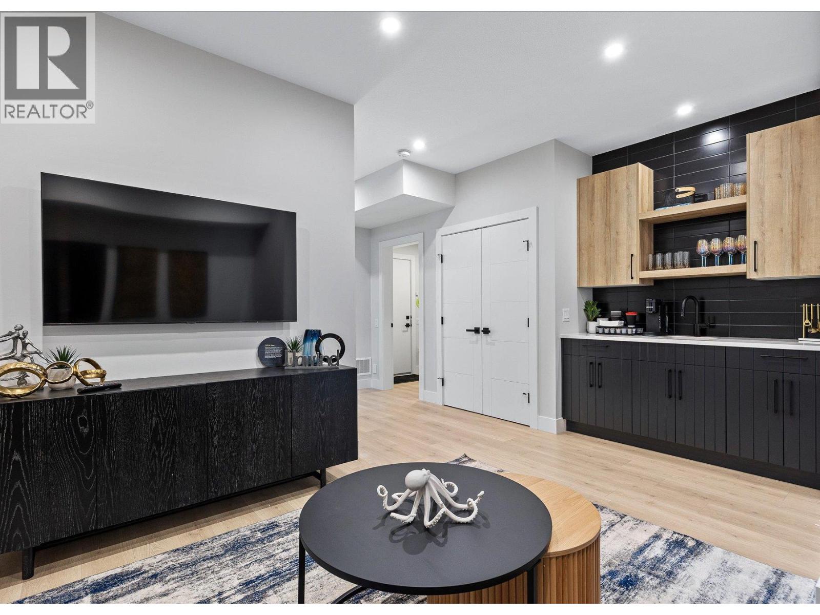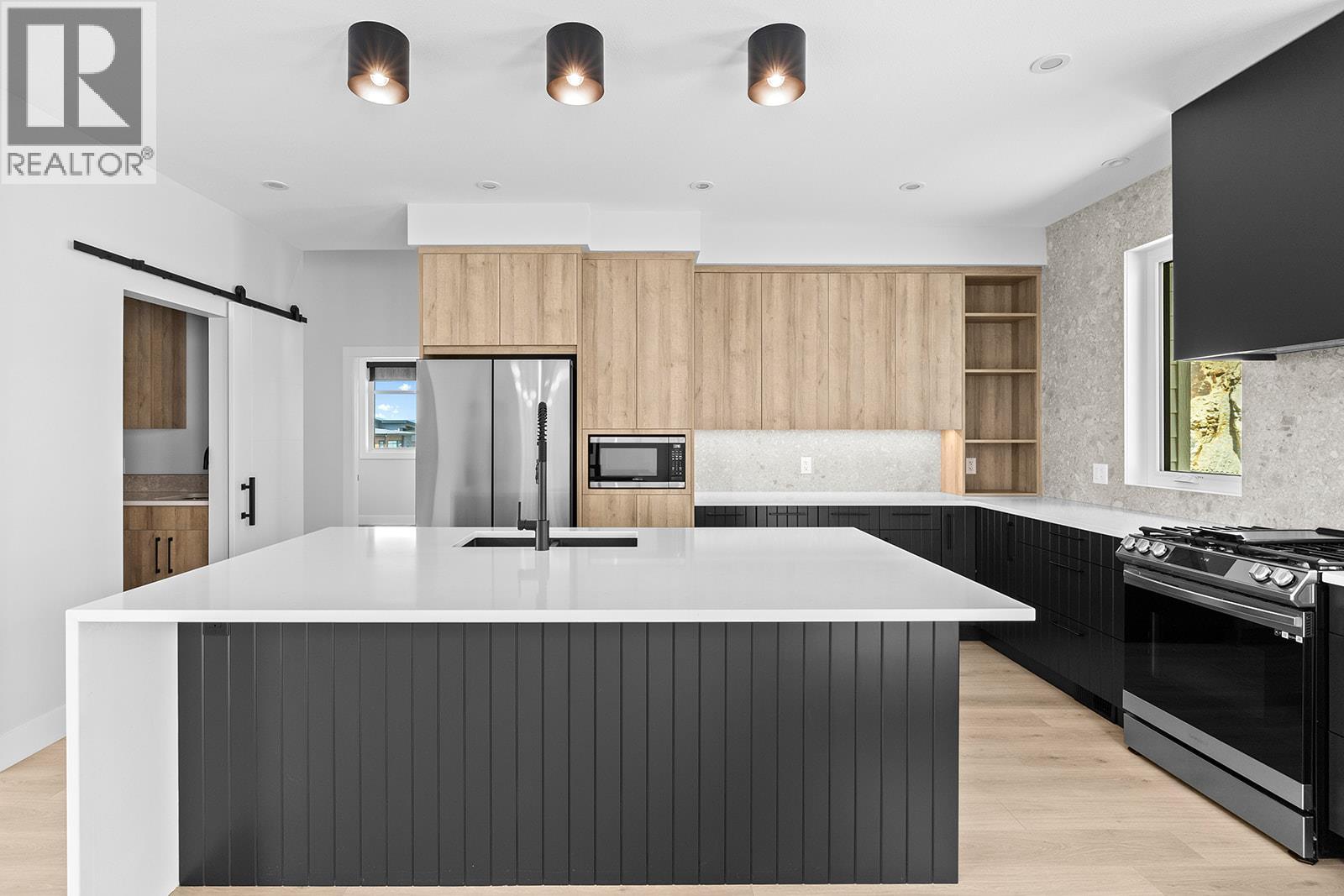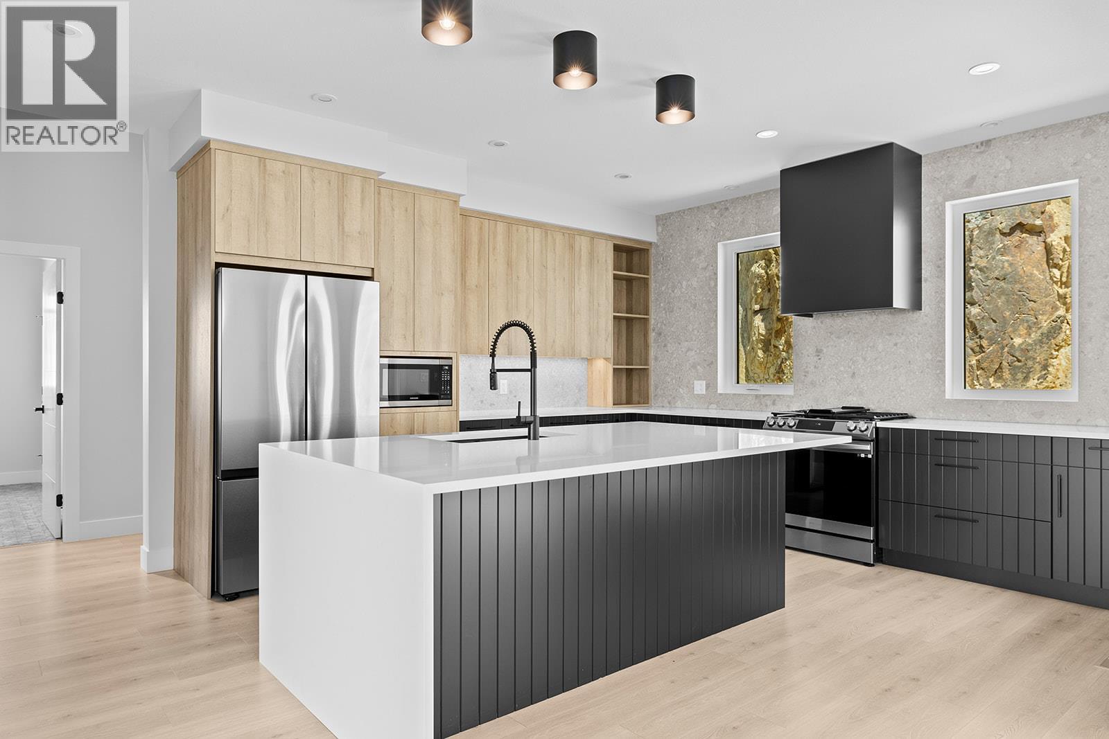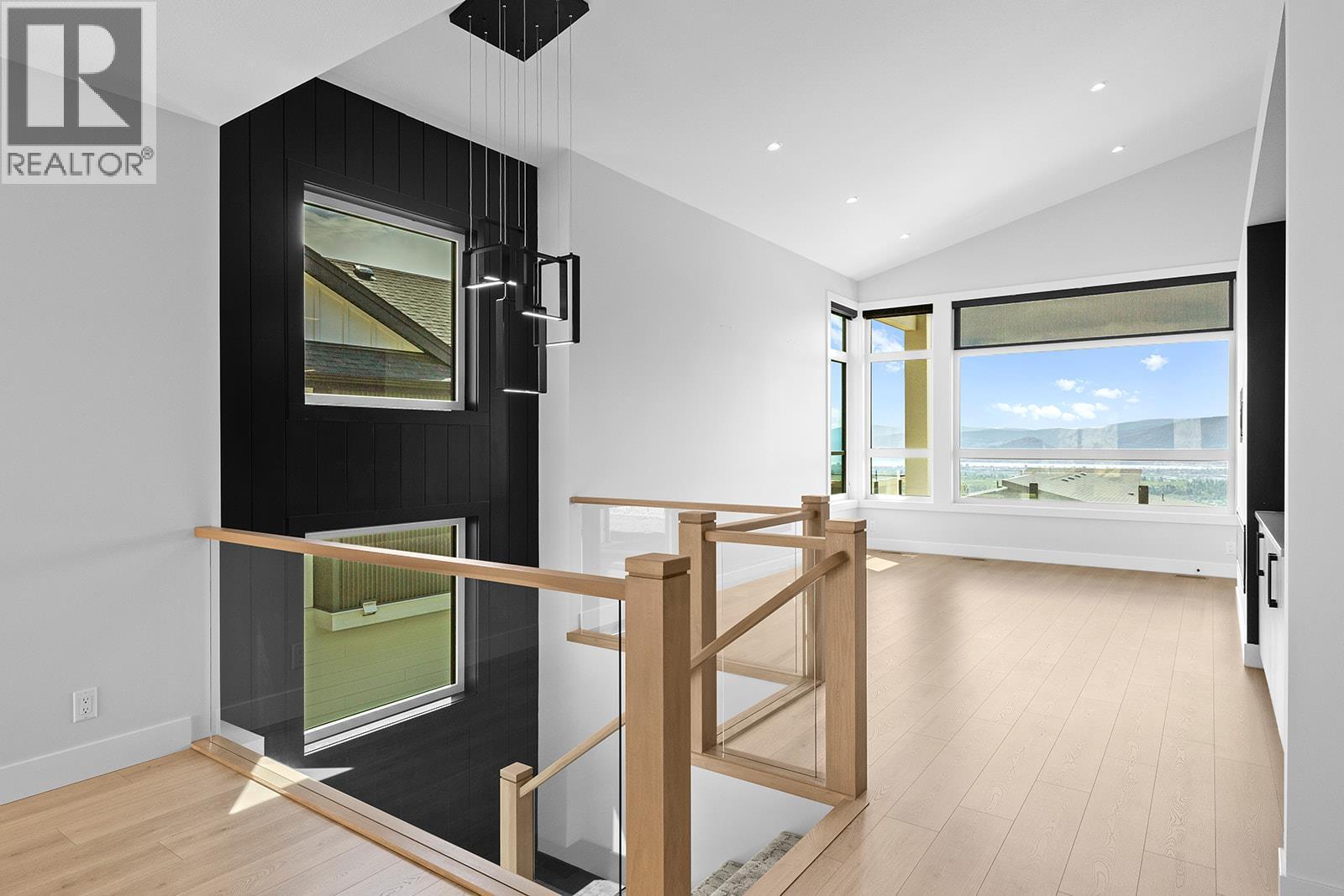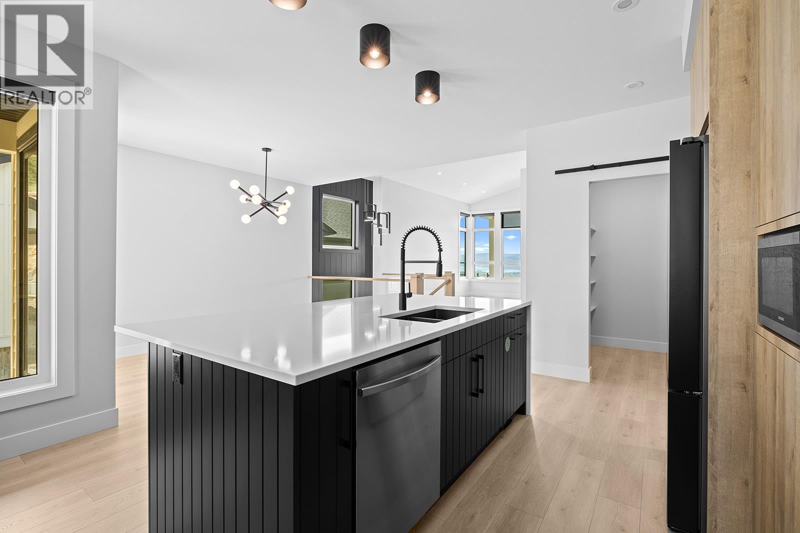 Carrington Homes presents their stunning Showhome, offering refined living with views of Okanagan Lake, elegant design, and a legal suite for added flexibility. From the moment you step inside, this home makes a lasting impression. The main living area is bright with vaulted ceilings and expansive windows that flood the space with natural light. The great room is an architectural showpiece, featuring a 16-foot wall with a sleek electric fireplace, custom floating cabinetry and shelving, modern wall sconces, and an open-air wine display that brings a luxurious touch to the space. The chef-inspired kitchen is a blend of modern design and function, featuring contrasting cabinetry, premium finishes, and a fully outfitted butler’s pantry, complete with a beverage fridge, second sink, melamine shelving, and both upper and lower cabinets. Offering exceptional versatility, the home includes a triple car garage: a double garage serving the main residence, plus a single garage with ideal access for the suite. The 2-bed 1-bath legal suite features its own entrance, in-suite laundry, and a full 6-piece stainless steel appliance package. Every detail of this home has been curated to combine luxury, function, and comfort. Located just 10 minutes from Downtown, this prime location places you in a quiet neighbourhood, and within easy reach of popular amenities with golf courses, parks, and hiking trails are all nearby, and day-to-day essentials like groceries, restaurants, and coffee shops only minutes away. Simply move in, and enjoy Kelowna Life.