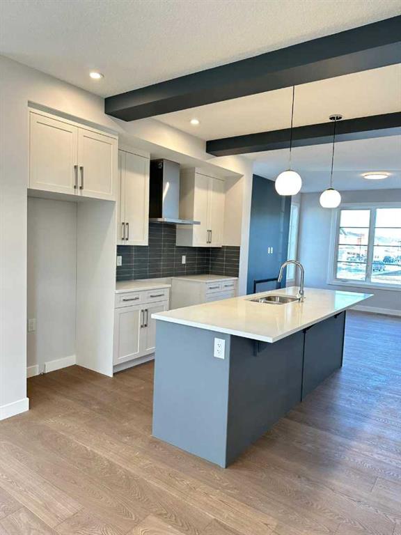 Welcome to the Fernie 3 by Douglas Homes — a beautifully designed and thoughtfully crafted home located at 1189 Waterford Drive in the vibrant community of Waterford, Chestermere. This 1,598 sq ft two-storey home offers 3 bedrooms, 2.5 bathrooms, and a rear detached garage, all situated on a sought-after corner lot. With a fall possession date, it’s move-in ready when you are! Step inside to discover 8-foot doors throughout and engineered hardwood flooring on the main level. Thanks to the additional side windows, the home is filled with natural light, creating a bright and inviting atmosphere. The main floor features a flex room, an open and airy great room with an electric fireplace, and a modern kitchen complete with quartz countertops, a chimney-style hood fan, built-in microwave, and stainless steel appliances. Upstairs, the spacious primary suite offers a large walk-in closet and a spa-inspired ensuite with dual vanities. You’ll also find a convenient upper-floor laundry room, two additional well-sized bedrooms, and a full bathroom. Outside, enjoy the treated wood deck — perfect for relaxing or entertaining. Additional highlights include 9’ ceilings on the main level, side entry to the basement for future development, and a prime location close to parks, schools, and local amenities in a rapidly growing community. Unlock Savings with the First-Time Home Buyers’ GST Rebate! You may qualify for up to $50,000 in savings on a brand-new home through the First-Time Home Buyers’ GST Rebate. To be eligible, you must be 18 or older, a Canadian citizen or permanent resident, and not have owned or lived in a home owned by you or your spouse/common-law partner in the last four years. Note: This offer applies only to homes placed under contract after May 27, 2025, and is subject to Government of Canada and CRA rules. Don’t miss your chance to own this stunning, move-in-ready home built with quality craftsmanship and attention to detail. Please note: Some photos are of a similar show home for illustration purposes only. Actual finishes, colors, and style may vary. Call today to book your private showing or to learn more about this limited-time opportunity!