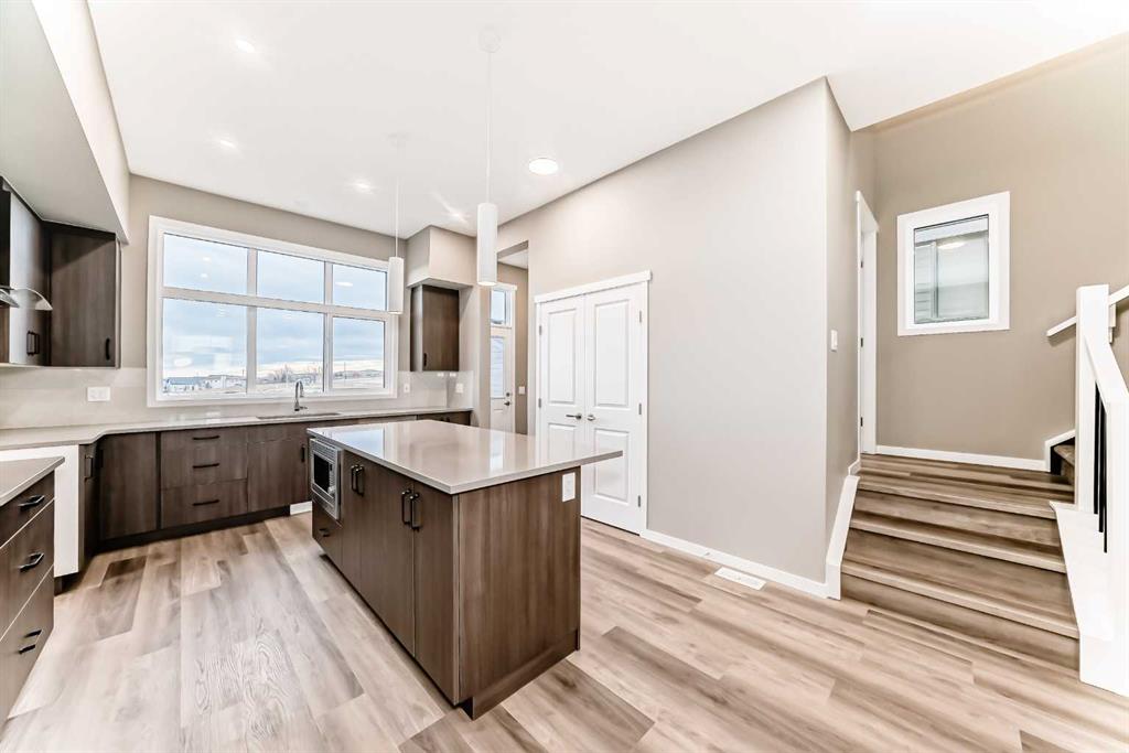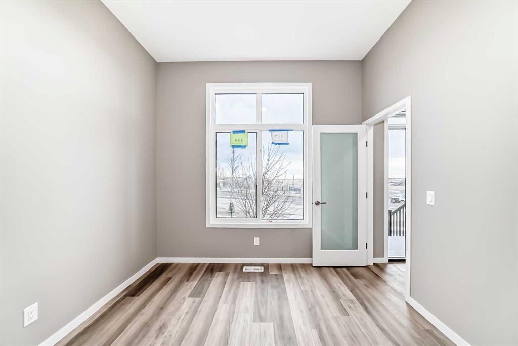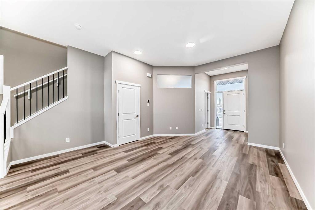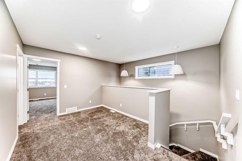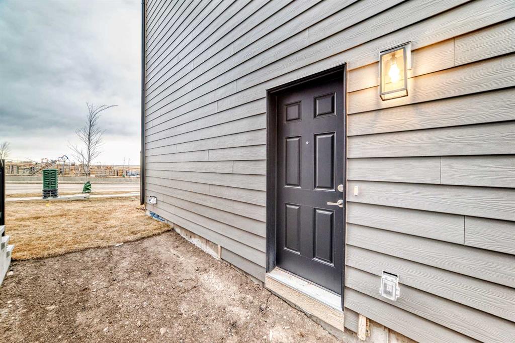 Welcome to 119 Sawgrass Gate NW — a brand-new, thoughtfully designed semi-detached home with no condo fees, and immediate possession available. Built by award-winning Hopewell Residential, this home offers exceptional craftsmanship, long-term value, and modern functionality in one of Airdrie’s newest and most exciting communities, Sawgrass Park. The exterior showcases durable Hardie Board siding, a premium fibre-cement product known for its longevity, resistance to fire, moisture, and pests, and its ability to maintain curb appeal with minimal maintenance—an excellent long-term investment for homeowners. A 20’ x 21’ rear garage pad and front yard landscaping included complete the exterior package. Inside, the main floor is bright and inviting, featuring quartz countertops throughout, a paint-grade spindle railing, and a beautifully upgraded kitchen with full appliance package, chimney-style hood fan, and ample storage—perfect for everyday living and entertaining. A versatile main-floor flex room with French door provides an ideal space for a home office, playroom, or formal dining area. Upstairs, you’ll find three well-appointed bedrooms, a spacious bonus room, and upper-level laundry for added convenience. The primary suite is a true retreat, offering a walk-in closet and a 4-piece ensuite with dual vanities and a walk-in shower. The undeveloped basement offers incredible future potential with 9’ foundation walls, a separate side entrance, and 3-piece bathroom rough-in plumbing, making it ideal for additional living space, a home gym, or future development to suit your needs. Located in Airdrie, Sawgrass Park is designed for modern living, with future parks, pathways, and convenient access to schools, shopping, and major commuter routes—offering the perfect balance of community connection and everyday convenience. This is an outstanding opportunity to own a brand-new, no-condo-fee home with premium finishes, thoughtful upgrades, and immediate possession. Don’t miss your chance to be part of this growing NW Airdrie community.
