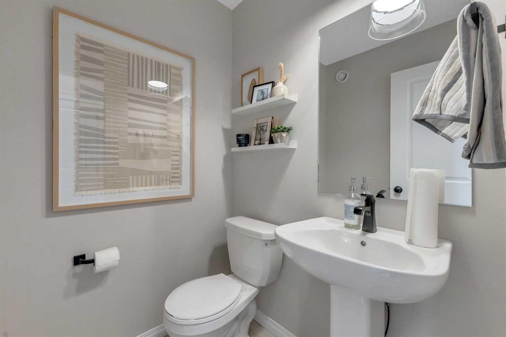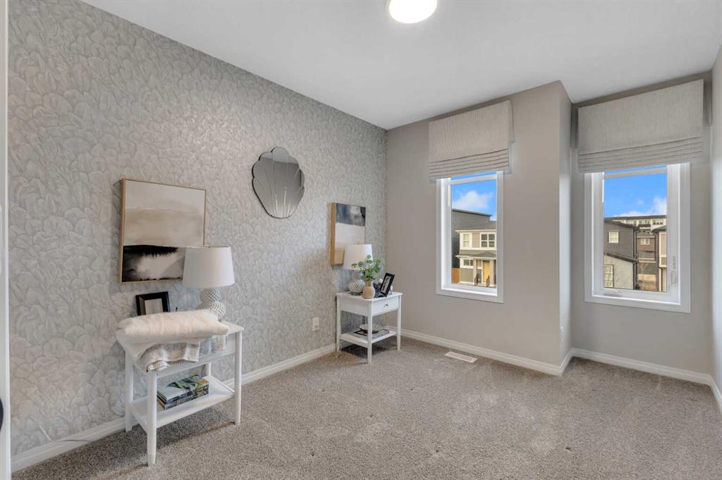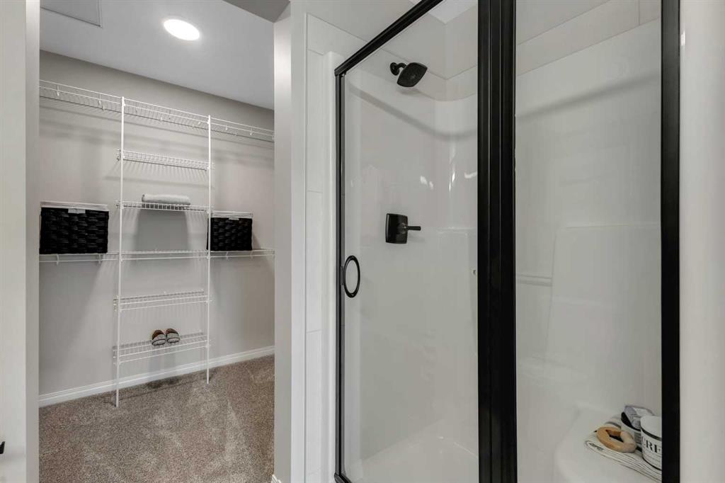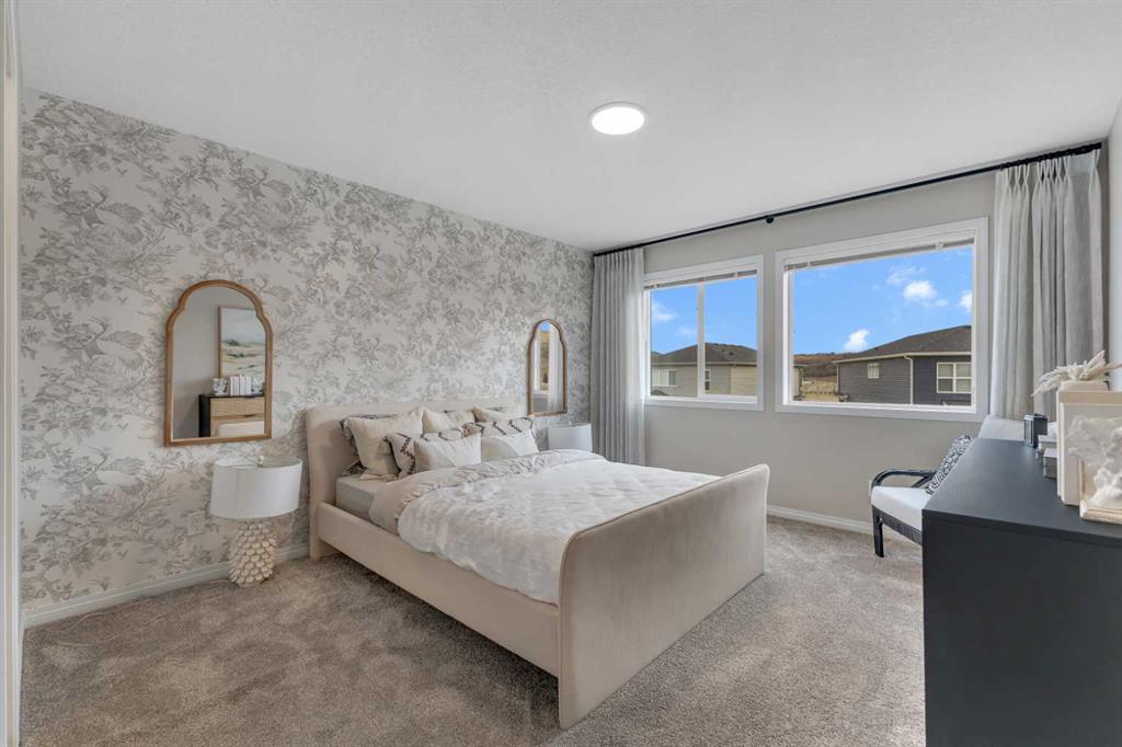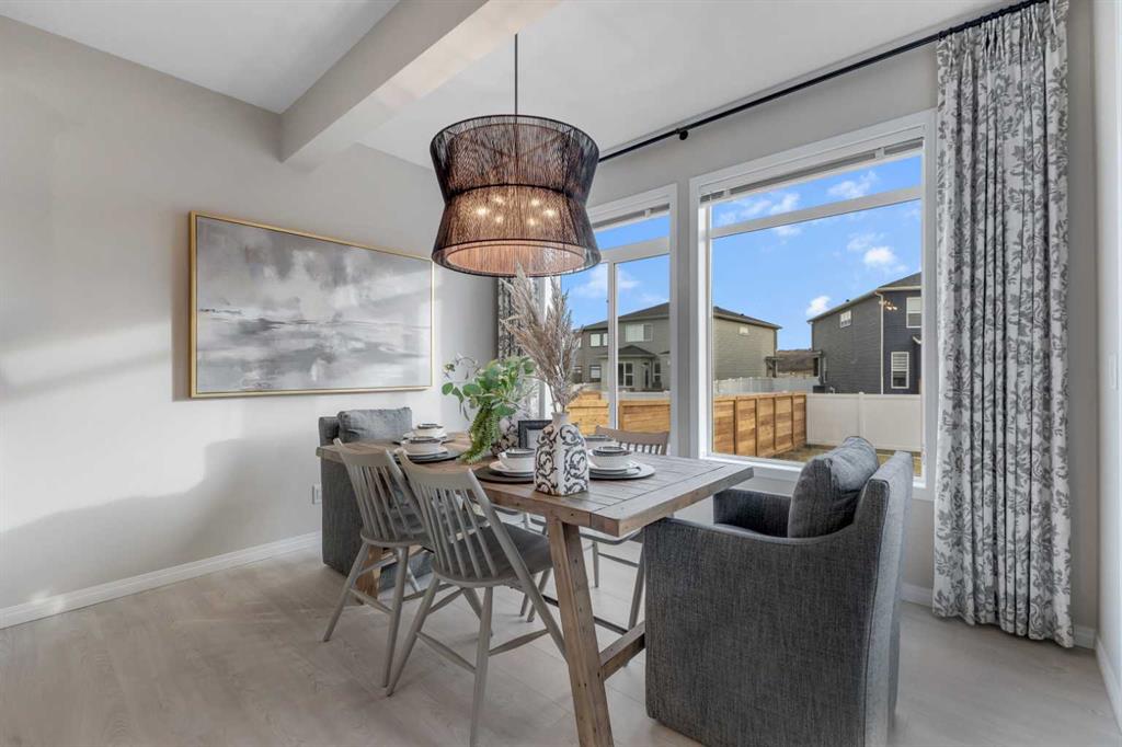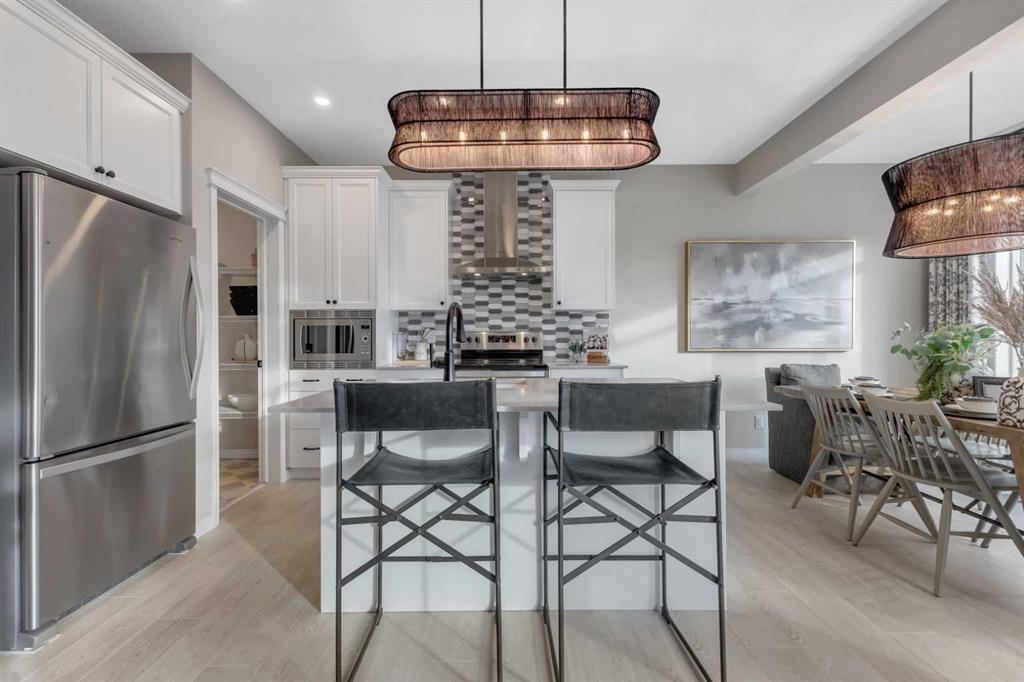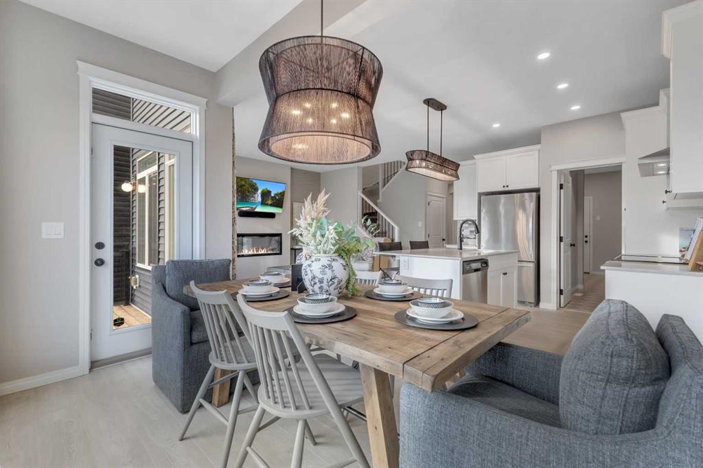 Former Show home: Step into over 1,900 sq ft of modern comfort, featuring 3 bedrooms, 2.5 baths, and a double garage. The main floor flex room offers versatility for your home office or guest space. Enjoy elegant upgrades throughout — from quartz countertops, custom lighting, and black hardware package to a chimney-style hood fan and upgraded backsplash. Unwind in the 5-piece ensuite with a soaker tub, gather in the bonus room, or host on the 10’x10’ deck with a gas BBQ line. This home also includes air conditioning, window coverings, iron spindle railings, and a 50” built-in electric fireplace — all thoughtfully designed for comfort and style. Note: Home is staged for presentation. All staging items and décor are excluded from the sale.