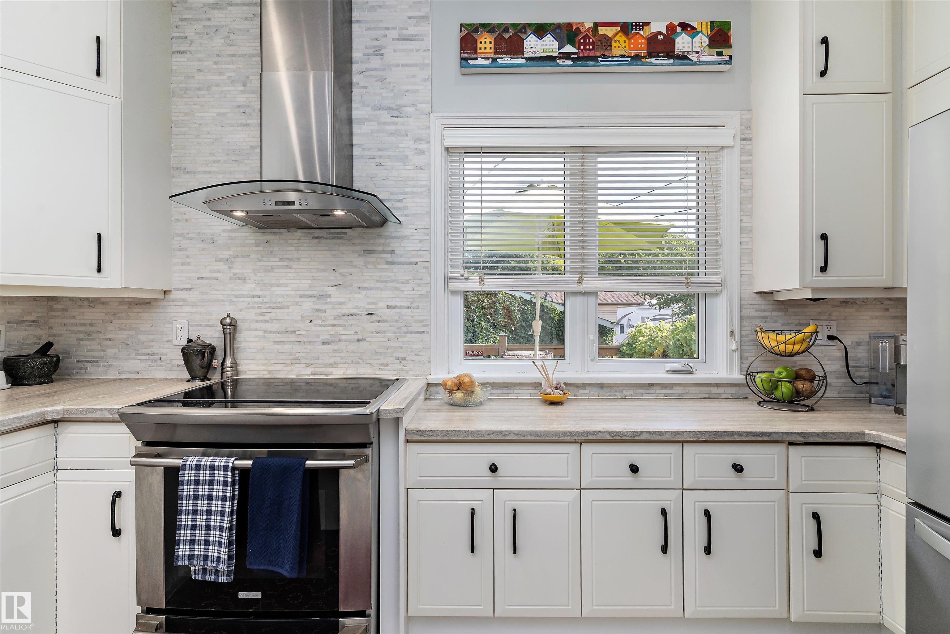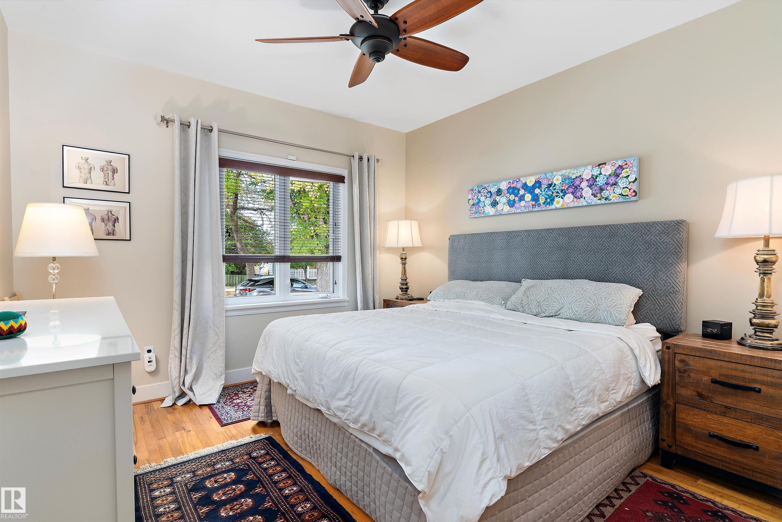 Beautifully maintained jewel box in Montrose! This home has been meticulously cared for, offering a perfect blend of character and modern upgrades. Inside, you’ll love the wide birdseye maple hardwood floors, soaring 9' ceilings, and a bright kitchen with full-height cabinets, custom blinds, and high-end appliances. Durable battleship-grade linoleum keeps things practical, and vinyl windows fill the home with natural light.The fully renovated basement provides a cozy extra bedroom, family space, and a high-efficiency furnace for comfort and energy savings.Outside, every detail has been handled: all concrete has been replaced, there’s a large parking pad next to the double detached garage, and the park-like backyard is ready for summer gatherings.This property has been pet-free and smoke-free, ensuring a fresh, well-kept interior. Enjoy easy access to the LRT, Yellowhead, and major routes, making your commute a breeze. Homes like this don't come up very often.