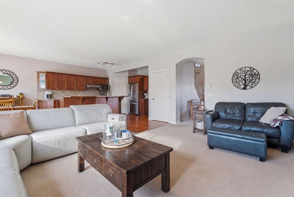 On the market for the first time. This stunning home is in the highly coveted lake community of Crystal Shores in Okotoks. This residence offers nearly 3,400 square feet of developed space, lake access, and backing onto peaceful greenspace. Upon entering, you will be greeted by soaring 9’ ceilings, an expansive floor plan and gorgeous railings! The bright and spacious main level is filled with natural light and features a thoughtfully designed layout. The kitchen is a focal point with solid wood cabinets, a timeless tile backsplash, stainless steel appliances, and a corner pantry for added storage. Adjacent to the kitchen is a sun filled dining room with direct access to your WEST BACKYARD! Enjoy the low maintenance dura deck, no neighbours directly behind you, and MOUNTAIN VIEWS. The expansive living room flows seamlessly into the dining room and kitchen making it ideal for entertaining guests. A stunning custom fireplace adds warmth and character to the living space. A versatile large den at the front of the home can serve multiple purposes such as a formal dinning room, office, children’s playroom, or additional living area. The main floor is complete with a half bath tucked away for privacy and a convenient main floor laundry room. Upstairs, the primary suite is a true sanctuary with mountain views and complete privacy. Offering a substantial closet and a spa inspire ensuite consistent of dual sinks, a large soaker tub, and separate shower. You will also find 3 generous sized bedrooms, a well appointed 4 piece main bath, and a bonus room with expansive vaulted ceilings. The bonus room is the perfect space to unwind, enjoy family time and reconnect. The lower level adds even more value and is complete with an additional bedroom, 3piece bath and inviting rec room with a bar. Additional highlights include a double attached garage, gas line on the deck, and the comforts of air conditioning. This is a rare opportunity to own a well maintained home in one of Okotoks’ most desirable communities, walking distance to four schools, and an extensive path system. Enjoy amble space, privacy, and an unbeatable lifestyle! Schedule your showing today or view the virtual tour.