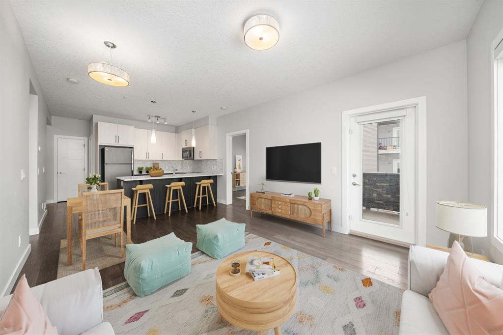 Welcome to this stunning corner-unit home at 121, 16 Sage Hill Terrace NW, where modern convenience meets an incredible sense of privacy. Upon entering, you are greeted by a versatile, oversized den that serves as the perfect home office or a massive storage solution—a rare find in condo living. As you move into the heart of the home, the space opens into a bright, open-concept floor plan tied together with beautiful luxury vinyl plank (LVP) flooring and large windows equipped with upgraded blackout blinds for ultimate comfort. The kitchen is a chef’s delight, featuring a large peninsula with seating for three that flows seamlessly into the dining and living areas, making it an ideal setup for hosting family and friends. This thoughtful layout offers two generous bedrooms and two full bathrooms adorned with classic tile flooring. The primary retreat is large enough to easily accommodate a king-sized bed and dressers, complete with a walk-through closet leading to a private 4-piece ensuite. The second bedroom is perfectly situated adjacent to the main 4-piece bathroom, offering a great setup for guests or roommates. What truly sets this home apart is its unique "elevated" ground-floor position; while you enjoy the effortless access of a main-floor entrance, the building’s natural slope perches the unit high above the ground level for added security and a private, peaceful view. Step out onto the balcony to take in the vast south and east views with your morning coffee. Completing this package is a titled, heated underground parking stall, all located just steps from Sage Hill’s premier shopping, dining, and scenic ravine pathways.