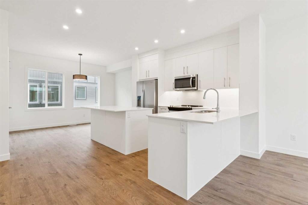 Welcome to modern living at its finest in this brand new, never-occupied 4-bedroom townhouse located in the vibrant and fast-growing community of Cornerstone. Thoughtfully designed across three levels, this home blends style, space, and everyday convenience. Step inside on the first floor, where a versatile bedroom or home office awaits—perfect for remote work or guests—along with ample storage and direct access to the double attached garage. The main living level is bright, open, and made for entertaining. A spacious living room flows seamlessly into the dining area and contemporary kitchen, complete with stainless steel appliances, sleek quartz countertops, and clean modern finishes. Step out onto the oversized balcony to enjoy sunshine and views of the courtyard. Upstairs, the third floor features three additional bedrooms, including a well-appointed primary retreat with a walk-in closet and private ensuite. Upstairs laundry adds everyday ease and smart functionality. Beyond the home, Cornerstone offers a lifestyle that continues to grow. Enjoy nearby amenities including a daycare and dental office, with even more on the horizon. The community is set to feature Calgary’s first approved Major Activity Complex (MAC)—a future hub for commercial, retail, and multifamily living—plus two planned LRT plazas. Just minutes away, Highstreet at Cornerstone provides everyday convenience with Chalo! FreshCo and a 17,000 sq. ft. Shoppers Drug Mart. Modern. Move-in ready. Perfectly positioned. This is your opportunity to secure a brand new home in one of Calgary’s most exciting new communities.