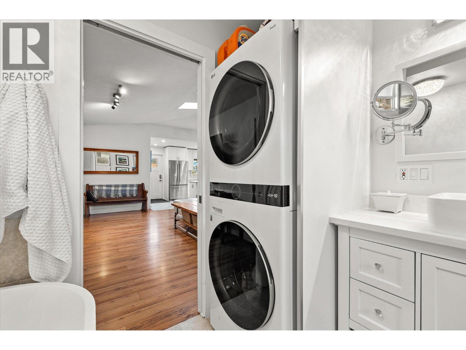 Experience the charm of this updated 4-bedroom plus den (could be a bedroom), 3-bathroom home in Lakeview Heights, offering breathtaking 180-degree panoramic views of Lake Okanagan and Upper Mission's twinkling lights. The main level, remodeled in 2017, boasts an open kitchen and dining area with abundant windows for natural light and stunning views. The kitchen features a large island and stainless steel appliances. The main floor includes a 3-piece bathroom updated in 2023, complete with a new washer and dryer, and a primary bedroom with vaulted ceilings, an updated ensuite, and a beautiful deck to enjoy the views. Additionally, there is a bedroom with a spacious walk-in closet, a versatile den, and a small pantry/mudroom by the front door. The lower level offers flexibility: it can be converted into a 2-bedroom suite with its own washer and dryer in the bathroom, ideal as a mortgage helper, or left open as part of the main home, providing a great space for older children with their own laundry facilities. There is room to add a single car garage with storage or car port by the upper main door. The upper yard features two walking paths leading to a level grass area with a storage shed and fire pit. This home is centrally located near the West Kelowna wine trail, with numerous wineries, restaurants, and amenities just a short distance away. Enjoy the best of Lakeview Heights living in this beautiful home which is listed $54K under assessed value making this a smart buy.