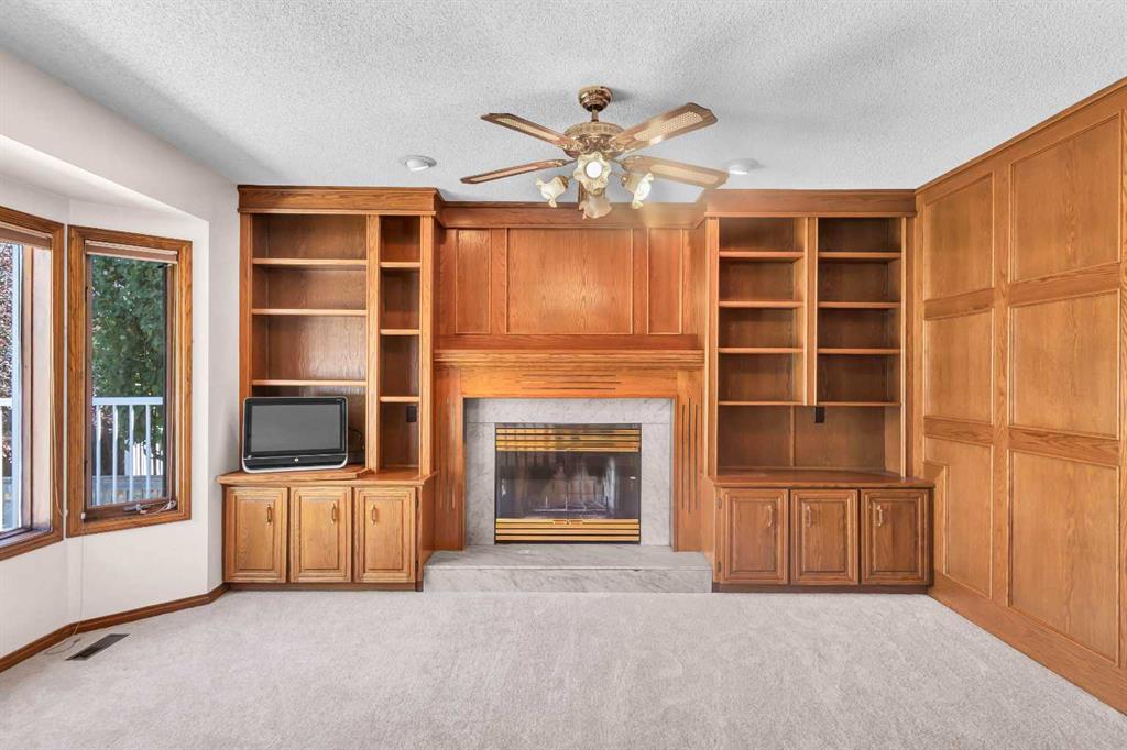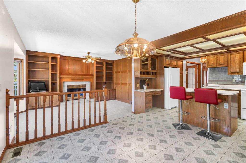This rare 1,785 sq. ft. bungalow in the highly sought-after community of Edgemont offers nearly 3,300 sq. ft. of total living space, an oversized double garage, and excellent curb appeal with its classic brick front exterior. The main level features a bright and inviting living room with a large bay window, formal dining area, and a spacious family room with custom built-ins and a cozy fireplace. The kitchen offers an abundance of cabinetry, center island, breakfast nook, and direct access to the sunny back deck—perfect for family gatherings and entertaining. There are three bedrooms on the main floor, including a generous primary suite with double closets and a private ensuite. Two additional bedrooms and a full bath complete this level. The fully developed lower level (1,493 sq. ft.) is designed for entertaining and extra living space. It includes a huge recreation room with a second fireplace, wet bar, full bath, laundry area, workshop, and multiple storage rooms. With its private walk-up access to the backyard, this level offers excellent potential for multi-generational living, a home business, or a future secondary suite (subject to city approval). The backyard is private and landscaped with mature trees and fruit trees, providing both shade and charm. Situated on a quiet street in Edgemont—close to schools, parks, walking paths, and all amenities—this home combines size, location, and potential, ready for your personal touches and upgrades.