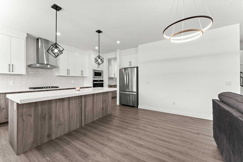 Welcome Home | Lakeside Community | Over 4300+SQFT | 6-Bedrooms | 5 Full-Bathrooms | Open Floor Plan | Dream Kitchen | Spice Kitchen | Triple car Garage | 2nd floor Laundry | Spacious Yard & Much More | This Extraordinary opportunity to own this newly built home in the new modern community of South Shore, with conveniently quick access to 16 AVE (HWY 1) & 17th AVE. This 2 storey home offers a noteworthy floor plan with extensive upgrades. The main floor features 9’ ceilings, a full bedroom room/Den/Office with a full bathroom, an open concept kitchen with floor to ceiling cabinetry with a Grand kitchen Island, Quartz countertops through out the home, Upgraded stainless steel appliances, Spice Kitchen & a pantry, a spacious formal living room & Family room with a Fire place & Dining over looking the north facing yard and Second floor boasts to Bonus room, Master bedroom with a large 5 pc ensuite & a Walk-in closet, 3 Additional bedrooms with an additional 4pc bathroom, while two additional bedrooms share a Jack and Jill bathroom, laundry room. Downstairs-(basement) you will find Legal Suite with its separate entrance along with a large Rec/Family room, private capacious kitchen, 2 good sized bedrooms, 4pc Bath. Book a showing today to view this lovely home to get the full experience of all it has to offer or visit the 3D Tour!!