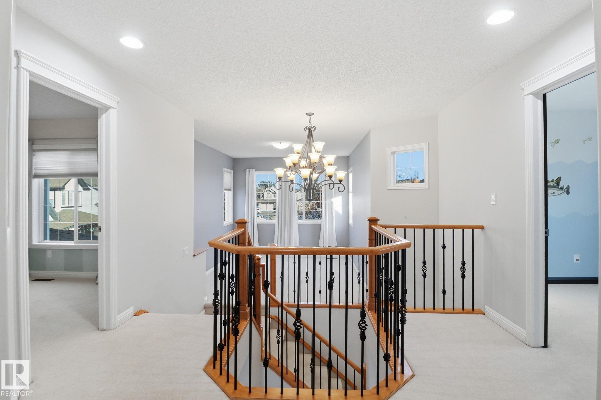 Well-maintained 2,458 sq ft home on a pie-shaped lot in desirable Rutherford with over $50,000 spent on upgrades since 2024. Improvements include attic insulation increased to R60, new bathrooms, new garage door with motor and keypad, new landscaping with trellis for downspout drainage, a newly built massive deck, and heat-regulating tech film added to the dining and living room windows. The home features A/C and a water softener. The main floor offers formal dining, a 2pc bath, and a kitchen with induction stove and breakfast bar open to the living room with fireplace. Upstairs includes a bonus room, spacious primary suite with 5pc ensuite, two additional bedrooms, upper laundry, and a 4pc bath. The fully finished basement provides a large family room with projector & screen, two bedrooms, a 3pc bath, and ample storage. Fully fenced yard with 2 storage sheds and great outdoor space. Walking distance to K–9 school with easy access to major routes and amenities.