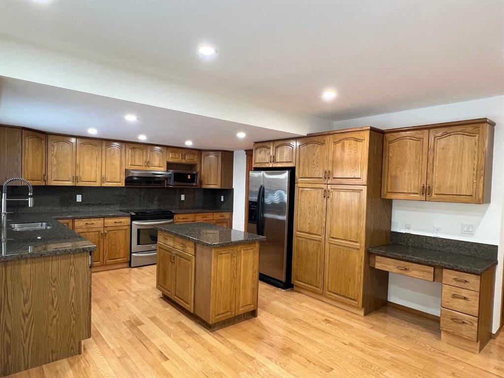 A rare opportunity to own a beautiful home backing directly onto the Bow River with a private west facing backyard. It features a unique oversized garage that appears as a standard two car garage, but has plenty of room for multiple vehicles and work space. The house is immaculate and move in ready with all 3 levels fully finished and recently painted. The main level features oak hardwood flooring and a family friendly floor plan. Generous sized kitchen with granite countertops and eating area with a view looking out at the green space. Enjoy entertaining in the living room with a vaulted ceiling and an elegant dining room. Upstairs you will enjoy a large primary bedroom with a walk-in closet and an ensuite featuring a separate bathtub and shower plus double sinks. There are 2 additional bedrooms that are perfect for kids or guests. A second full bathroom and extra large linen closet with ample storage space complete the upper level. The basement is fully finished with a large open rec room, pool table area, office, full bathroom and plenty of storage. The yard is fully landscaped with a west facing deck overlooking the peaceful river valley. The finished oversized garage is approximately 840 sq feet, has plenty of room for extra vehicles like a truck or boat plus hot & cold water and will provide ample storage. Roof, furnace and air conditioner all replaced in last 3 years plus poly B has been removed. Various pathways & parks are easily accessible right from your front door!