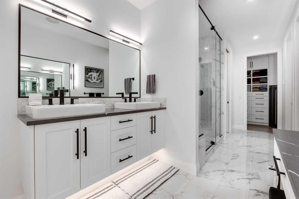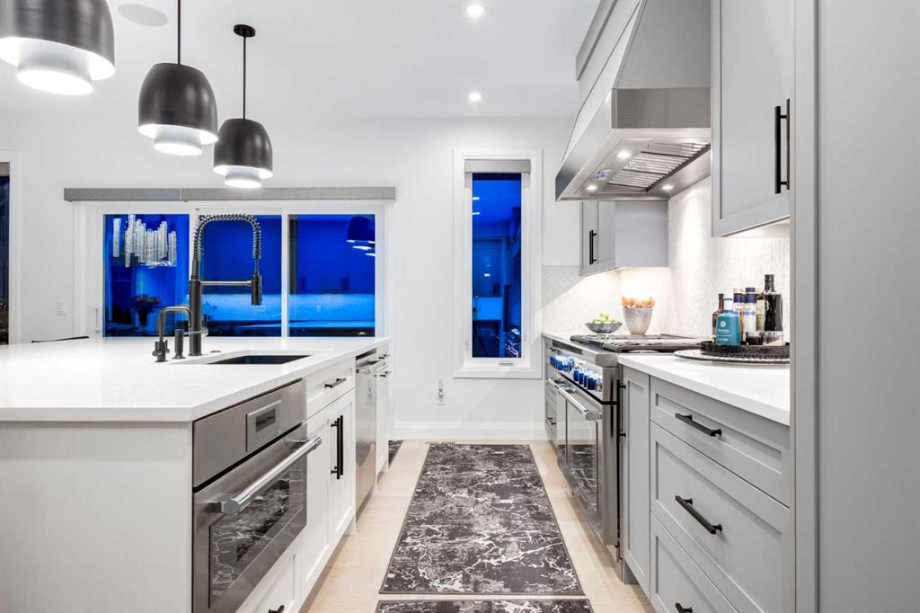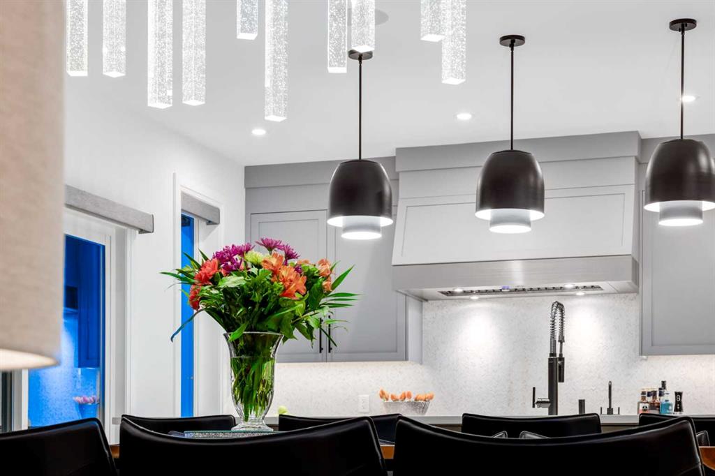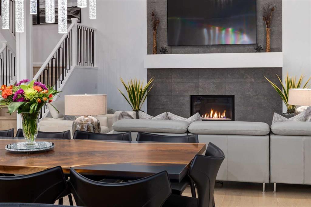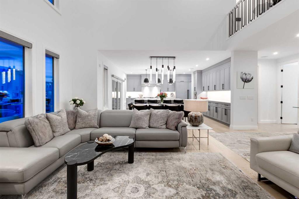 Realtor Preview Luncheon Today From 11:30AM to 1:30PM. Located in the heart of Springbank Hill, this beautifully appointed home backs onto a picturesque ravine and boasts views of the rolling hills and city to the South. Designed for low-maintenance living, this home features Hardie Board siding, aluminum composite fencing, an artificial turf lawn with a backyard putting green and artificial shrubs, ideal for snowbirds or busy families. Every inch of the nearly 4,500SF of living space was meticulously designed and decorated with intention, creating a true sanctuary that feels like a work of art. Soaring ceilings, white oak engineered hardwood floors, hardwood coffered ceiling details and the most spectacular designer lighting are only a few features that make this home so spectacular. The ‘chef’s kitchen’ features top-of-the-line Thermadore appliances including a multi-function built-in coffee and espresso machine and a dual zone beverage cooler. Custom features such as internal cabinet drawers, spice pullouts and a fabulous walk-through butler’s pantry leave nothing to be desired. A vaulted ceiling in the great room boasts a stunning floor-to-ceiling fireplace and a ‘showpiece’ staircase and masterfully displays the amazing Southerly view. A spacious dining area, a private home office and a mudroom outfitted with lots of custom storage combine beautiful design with perfect functionality. The upper level features a bright and open bonus room, two additional bedrooms, each with a walk-in closet and an ensuite bathroom and a spa-like primary suite with his-and-hers closets, one of which is connected to the incredible laundry room. The fully finished lower level boasts a fourth bedroom and bathroom, a ‘professional’ home gym, a games room and a media room with a fireplace and a wet bar. The heated triple attached garage, outfitted with epoxy flooring, custom storage, a work bench and cabinets, is every hobbyist’s dream. A six-person hot tub sits on an aggregate covered rear patio, an upper balcony with glass railing overlooks the views, a twelve-burner plus griddle BBQ station and a plumbed in natural gas fire table are all located in places to relax outside and admire the breathtaking view. Heated floors in all the bathrooms, Hunter Douglas programmable motorized solar shades and a high-end Elan smart home system that encompasses everything from security to lights to music and televisions, set this home apart from any other. This home offers something special for every stage in life.