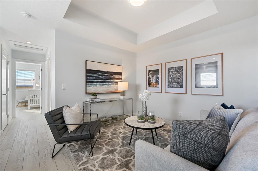 Experience style and thoughtful design in this brand-new TRUMAN-built home, ideally located near playgrounds, shopping, and just minutes from the Calgary South Health Campus and Stoney Trail. Step inside to an inviting open-concept layout that seamlessly connects the kitchen, dining, and living areas—perfect for both entertaining and everyday comfort. The bright kitchen showcases full-height cabinetry with soft-close doors and drawers, quartz countertops, a spacious eating bar, stainless steel appliance package, and a walk-in pantry. Elevated details include luxurious LVP flooring, a stylish 2-piece bathroom, and a practical mudroom designed for modern family living. Upstairs, a central bonus room offers flexible space for relaxation or work. The primary bedroom provides a serene retreat, featuring a 3-piece ensuite, and a generous walk-in closet. Two additional bedrooms, a full bathroom, and a conveniently located laundry area complete the upper level—balancing style, comfort, and functionality. A separate side entrance leads to the unfinished basement, offering future potential for a, home gym, or additional living space tailored to your needs. Move-in ready and built with TRUMAN’s signature craftsmanship, this home blends quality, design, and comfort—helping you Live Better. *The photo gallery showcases a similar home with comparable layout and features; finishes may vary.