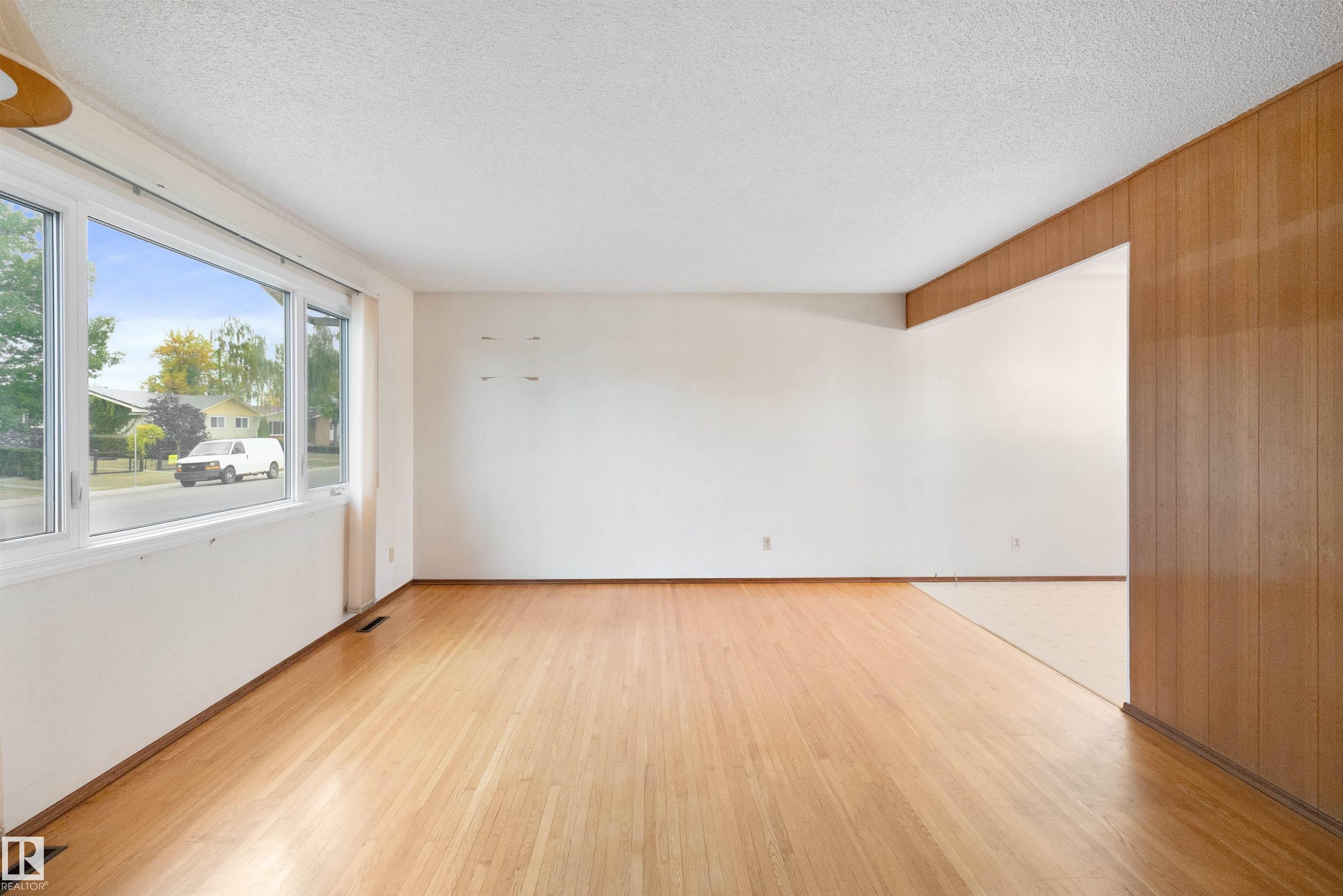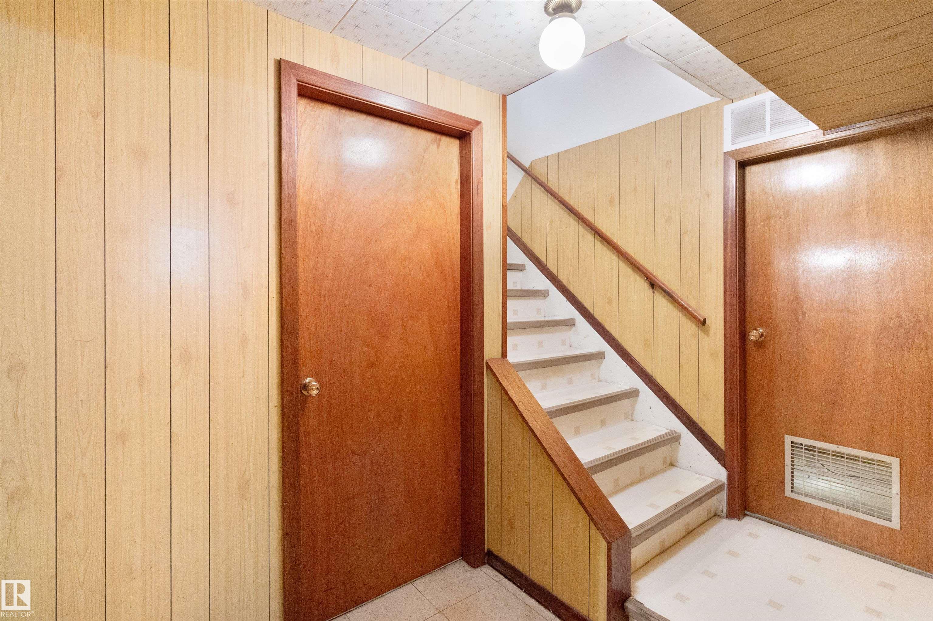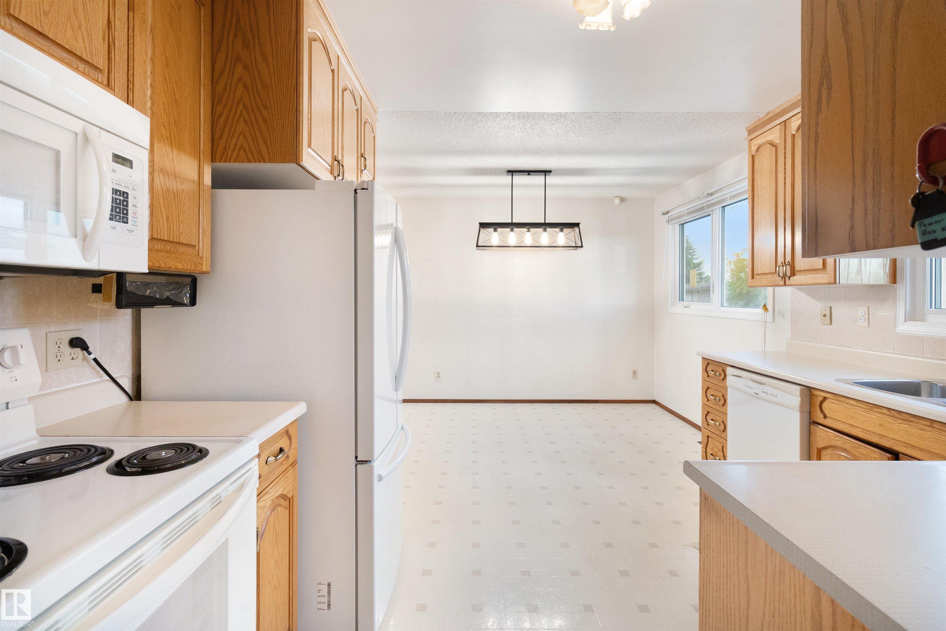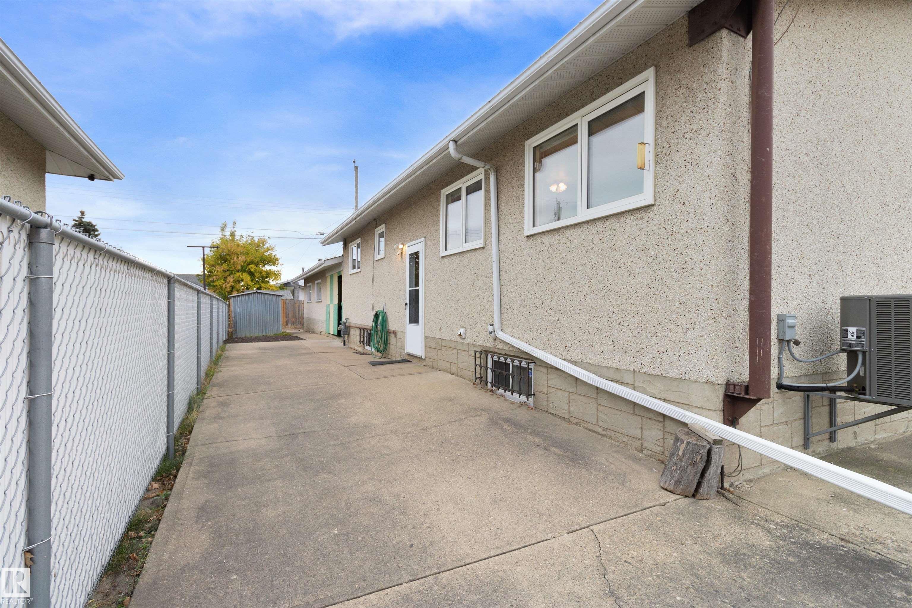 Charming 995 sq. ft. bungalow in the heart of Balwin! This well-kept home features newer windows, a double detached garage with breezeway, and side parking pad. Inside, the bright living room showcases hardwood flooring, while the kitchen offers oak cabinets, a newer fridge, and updated tap. The main floor includes two bedrooms with lino flooring and a primary bedroom with hardwood, plus a renovated 3-pc bath with new shower and tap. The fully finished basement provides a rec room with wet bar and fridge, tile-floor bedroom, 3-pc bath with shower, cold room, and laundry area with washer, dryer, humidifier, and A/C. The garage is a handyman’s dream with heater, compressor, workbench, shelving, and cabinets. Perfect starter home or for investors, this home combines comfort and functionality in a desirable location close to schools, shopping, and transit.
