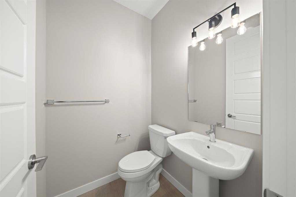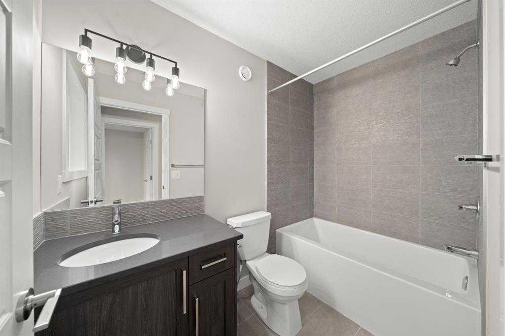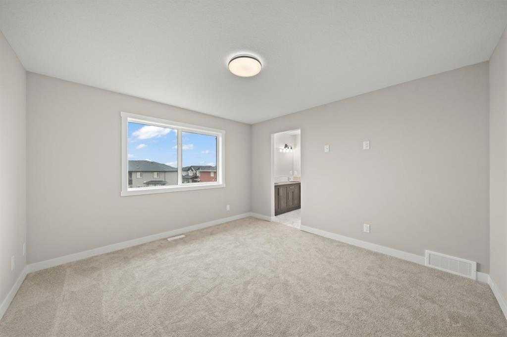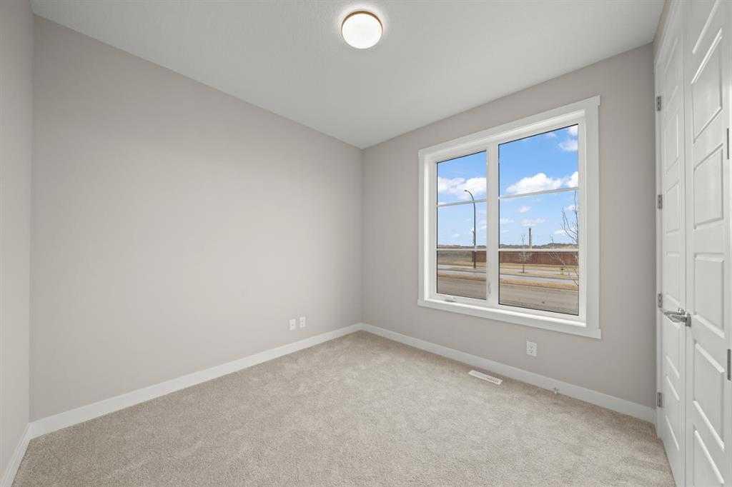 Welcome to Ambleridge, one of Calgary’s newest communities. Introducing the Kingston by master builder Douglas Homes—a 1,582 sq. ft., four-bedroom end-unit fee simple townhouse designed for modern, turnkey living. Enjoy the added convenience of a side entrance and no condo fees. This home stands out with premium upgrades already included, such as 9-foot knockdown ceilings, luxury vinyl plank flooring, quartz countertops, and 42-inch upper cabinetry. The bright, open-concept main floor is filled with natural light from oversized windows and features a spacious, inviting great room with an optional fireplace. The impressive 9-foot kitchen island comfortably seats 6–8, making it perfect for entertaining, while the adjacent dining area overlooks the sunny west-facing backyard. A versatile main-floor flex room or fourth bedroom, along with a three-piece bathroom, offers flexibility to suit your needs—whether as a guest room, home office, playroom, or study space. Upstairs, the primary suite includes a walk-in closet and a stylish three-piece ensuite with quartz countertops and a vanity with drawers. Two additional generously sized bedrooms provide ample space for family or guests. A well-appointed four-piece main bath features quartz surfaces, a large vanity, and a deep soaker tub. You’ll also appreciate the convenience of an upper-floor laundry room. The basement is thoughtfully laid out and ready for future development. Outside, the fully landscaped yard includes a rear deck, fencing, and a double garage. Don’t miss this opportunity—book your showing today. Please note: Photos are from a previously built home and are intended to illustrate finishes and layout; actual features may vary. First-Time Home Buyers’ GST Rebate: Eligible buyers may receive up to $50,000 on a new home purchase. Applicants must be 18 or older, a Canadian citizen or permanent resident, and not have owned or lived in a home owned by themselves or their spouse/common-law partner in the past four years. All terms and conditions are subject to Government of Canada/CRA guidelines