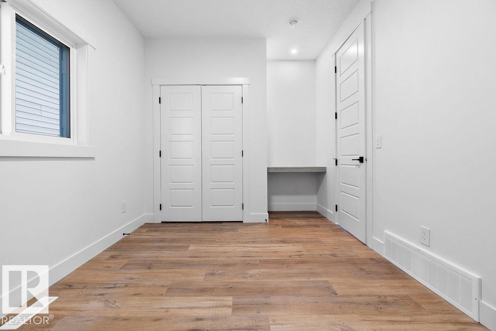 BACKING TO PARK! ALL OPEN TO ABOVE FROM BACK! UNIQUE AND NEW PLAN! Welcome to this stunning custom-built home, situated in the peaceful new community of Goodridge Corners. Set on a 28 POCKET REGULAR lot. Step inside to discover an open-to-below main floor that creates a bright and airy ambiance. The layout has a MAIN FLOOR BED AND BATH ideal for guests or multigenerational living. The modern kitchen boasts extended cabinetry, premium finishes, and a walkthrough spice kitchen for added convenience. The living area is elevated with a stunning feature wall and fireplace, making it the perfect place to gather and unwind.Upstairs, you’ll find three spacious bedrooms, including a luxurious primary suite, two full bathrooms, a bonus room, and a convenient upper-floor laundry. SIDE ENTRANCE to basement is also included. Offering quick access to Anthony Henday Drive, this home combines peaceful living with unbeatable accessibility. Photos are representative