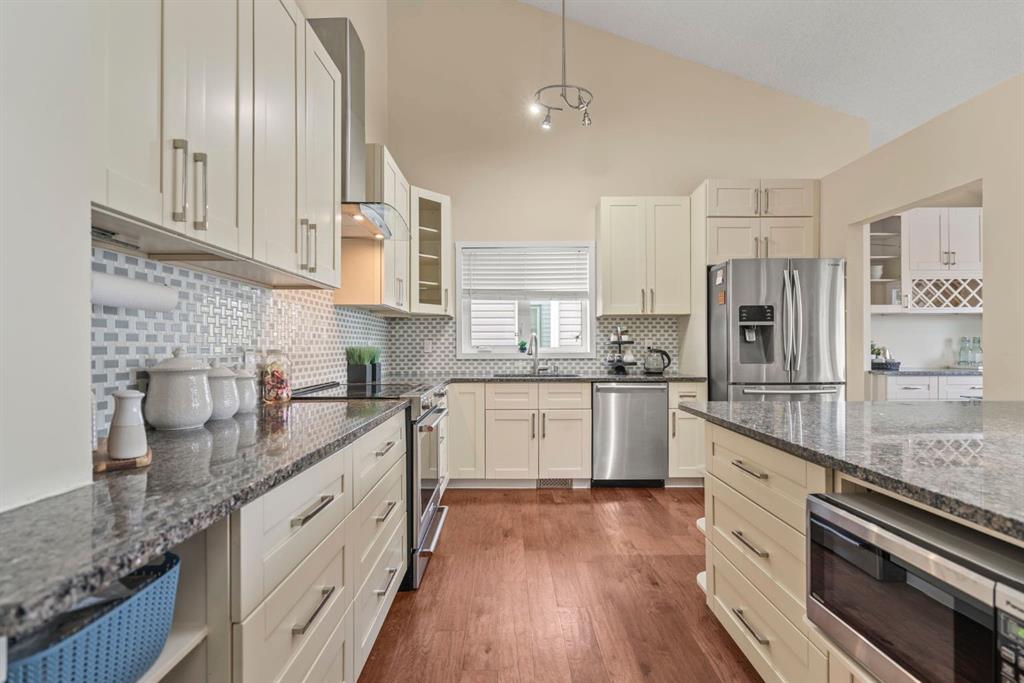 Nestled in the heart of one of Calgary’s most family-friendly communities, this spacious and lovingly cared-for 4-level split offers nearly 1,900 sq. ft. of comfortable, functional living space — perfect for a growing family. Designed with connection and everyday ease in mind, this home features 4 bedrooms and 3 bathrooms, ensuring everyone has their own space. Step inside to a bright, open main level where large windows fill the living and dining areas with natural light. The beautifully upgraded kitchen is the heart of the home, with abundant cabinetry, stainless steel appliances, and plenty of prep space for weeknight dinners or weekend gatherings. Upstairs, you’ll find three inviting bedrooms, including a serene primary suite with its own private ensuite and a peaceful patio overlooking the backyard — an ideal spot for your morning coffee. The third level is made for family time, with a cozy wood-burning fireplace that sets the tone for movie nights or game nights. A fourth bedroom on this level offers flexibility for a home office, guest room, or playroom, along with a full bathroom and convenient laundry area. The lower level adds even more possibilities with a large recreation space and a dedicated workshop or storage room. Outside, the fenced backyard is a private retreat — perfect for kids and pets to play, hosting summer BBQs, or simply relaxing under mature trees. The sunny deck offers space to unwind, with no neighbours behind for added privacy. A double attached garage adds everyday convenience, and the charming front balcony enhances the home’s curb appeal. Tucked away on a lovely street, you’ll enjoy easy access to parks, playgrounds, schools, and all the wonders of Fish Creek Park — all just moments away. With recent updates including most windows (2013), shingles (2018), siding (2013), and a newer hot water tank (2024), Fireplace WETT Certification 2025 and new central Vacuum this home is move-in ready. A wonderful opportunity to settle into a welcoming community where families thrive and nature is right on your doorstep.