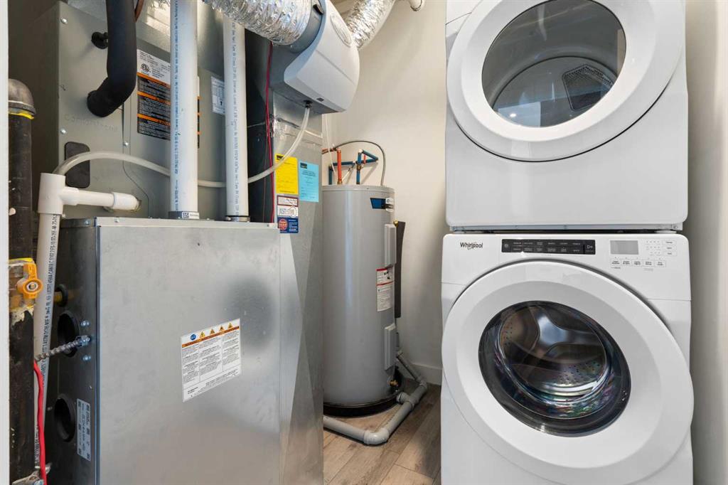 Welcome to this beautifully appointed top-level, end unit townhome in the highly sought-after community of Springbank Hill, offering stunning views from your sunny upper deck. Thoughtfully designed with modern finishings throughout, this home features durable laminate flooring across the main living space and an open-concept layout perfect for everyday living and entertaining. The stylish kitchen is sure to impress with quartz countertops, a trendy backsplash, convenient eat-up bar, and an upgraded KitchenAid appliance package. The spacious living room is filled with natural light from large windows overlooking the greenspace, creating a bright and inviting atmosphere. This home offers two generously sized bedrooms, including a primary retreat complete with a private three-piece ensuite and huge walk-in closet. A second full four-piece main bathroom and convenient main floor laundry, with storage, complete the main living space.. Additional features include air conditioning for year-round comfort, an attached single garage and a main floor flex space. All of this and low condo fees as the cherry on top! Ideally located just minutes from shopping, dining, transit, and fitness amenities, this property combines convenience with elevated living in one of Calgary’s most desirable communities.