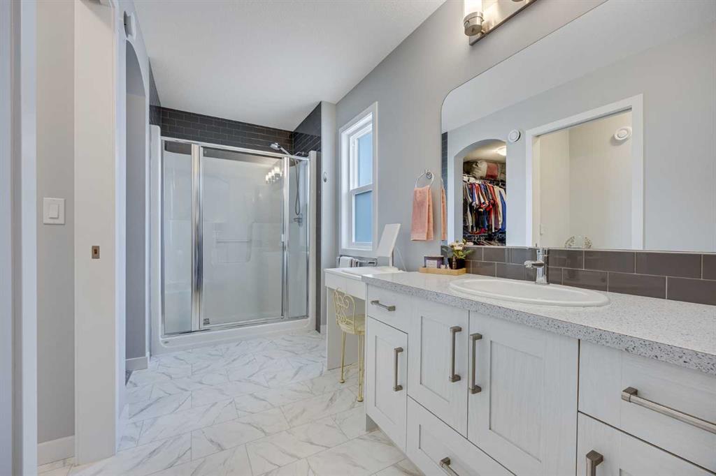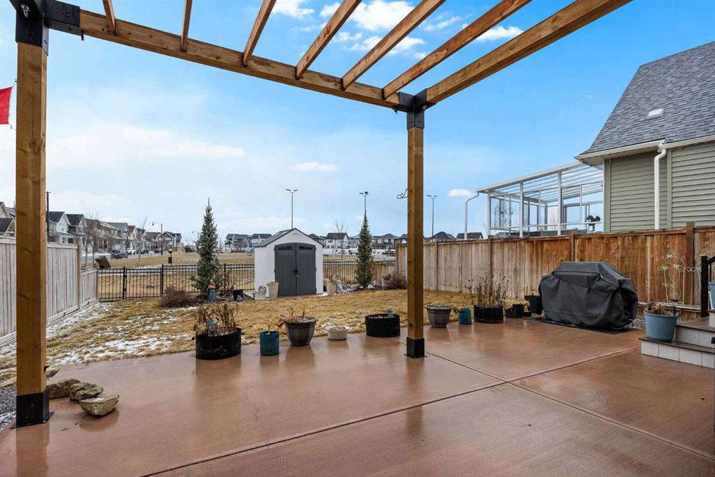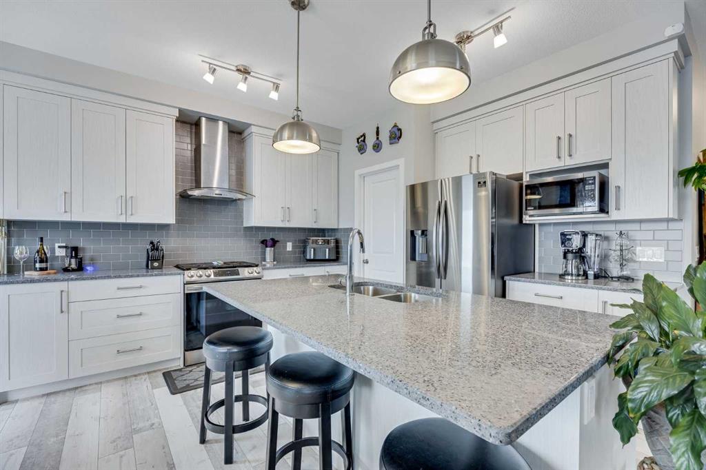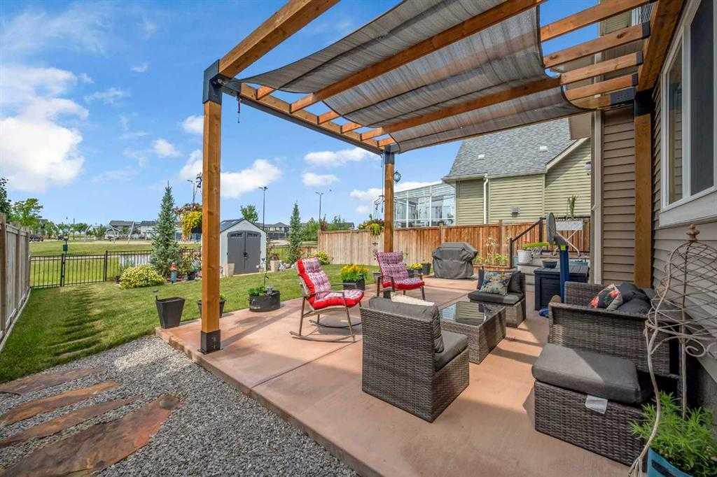 Welcome to this beautifully Crafted McKee Home, perfectly situated in a peaceful neighbourhood with a backyard that opens directly onto a beautiful park. Offering the ideal blend of comfort and convenience, this home features a spacious open-concept layout, large windows that bring in plenty of natural light, and views of the green space behind. With 3 bedrooms and 2.5 bathrooms, this home is perfect for families looking for extra space. The modern kitchen boasts features like quartz countertops, stainless steel appliances, and a large island, while the cozy living area with a fireplace creates the perfect place to unwind. Upstairs, you'll find generously sized bedrooms, including a primary suite with a walk-in closet and ensuite. Step outside to your private backyard oasis, where you can enjoy morning coffee while taking in the park views. With access to walking trails, playgrounds, and green space, this location is perfect for outdoor enthusiasts and families alike. Located just minutes from schools, shops, and essential amenities, this home offers small town charm with easy access to Airdrie and Calgary. Don't miss out on this rare opportunity schedule your private showing today!