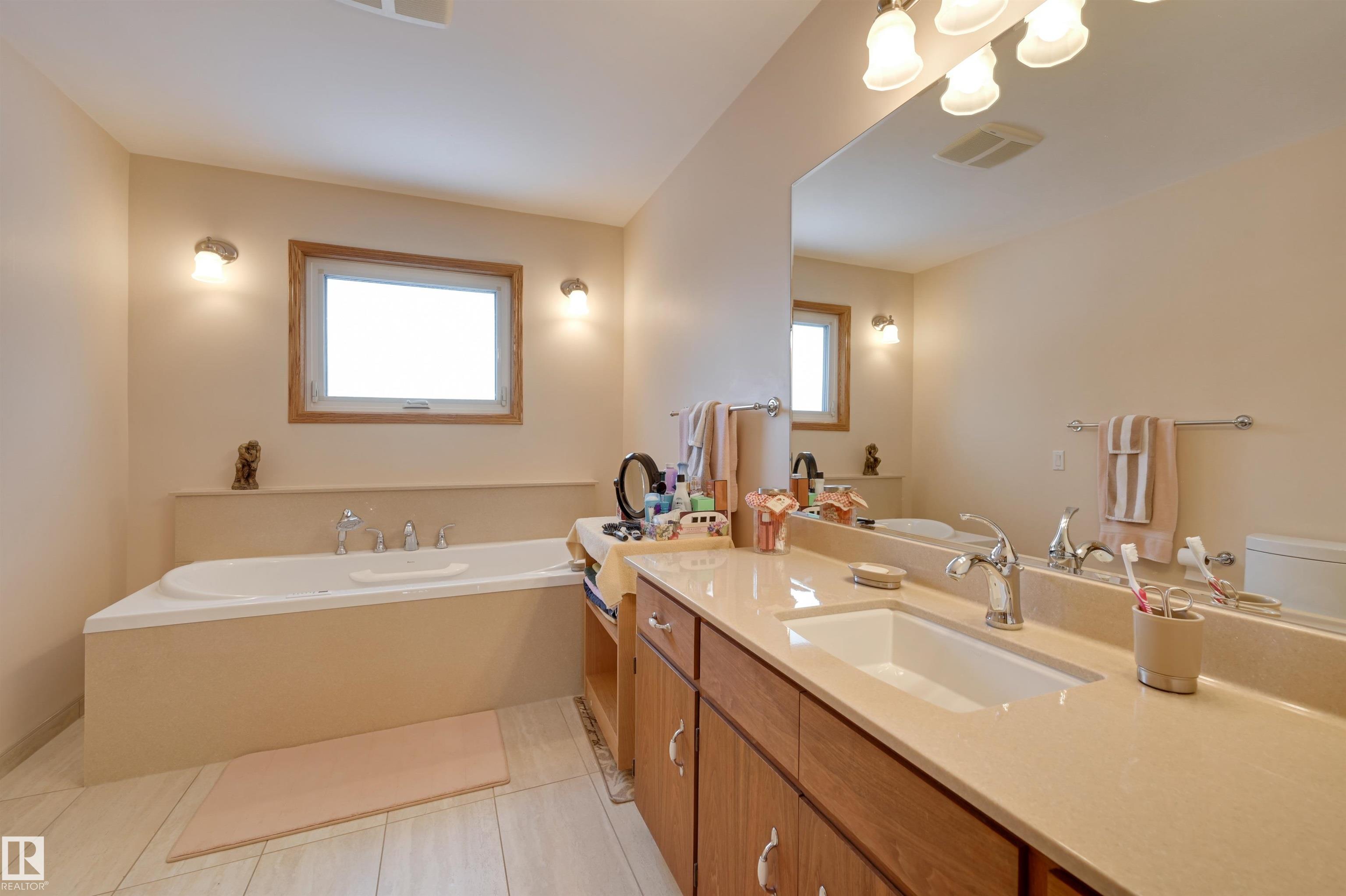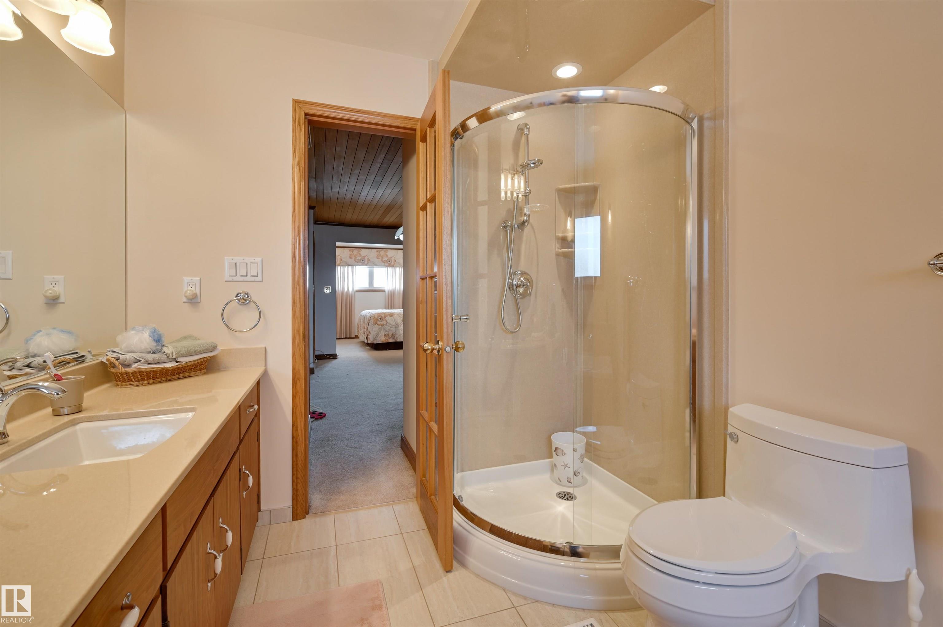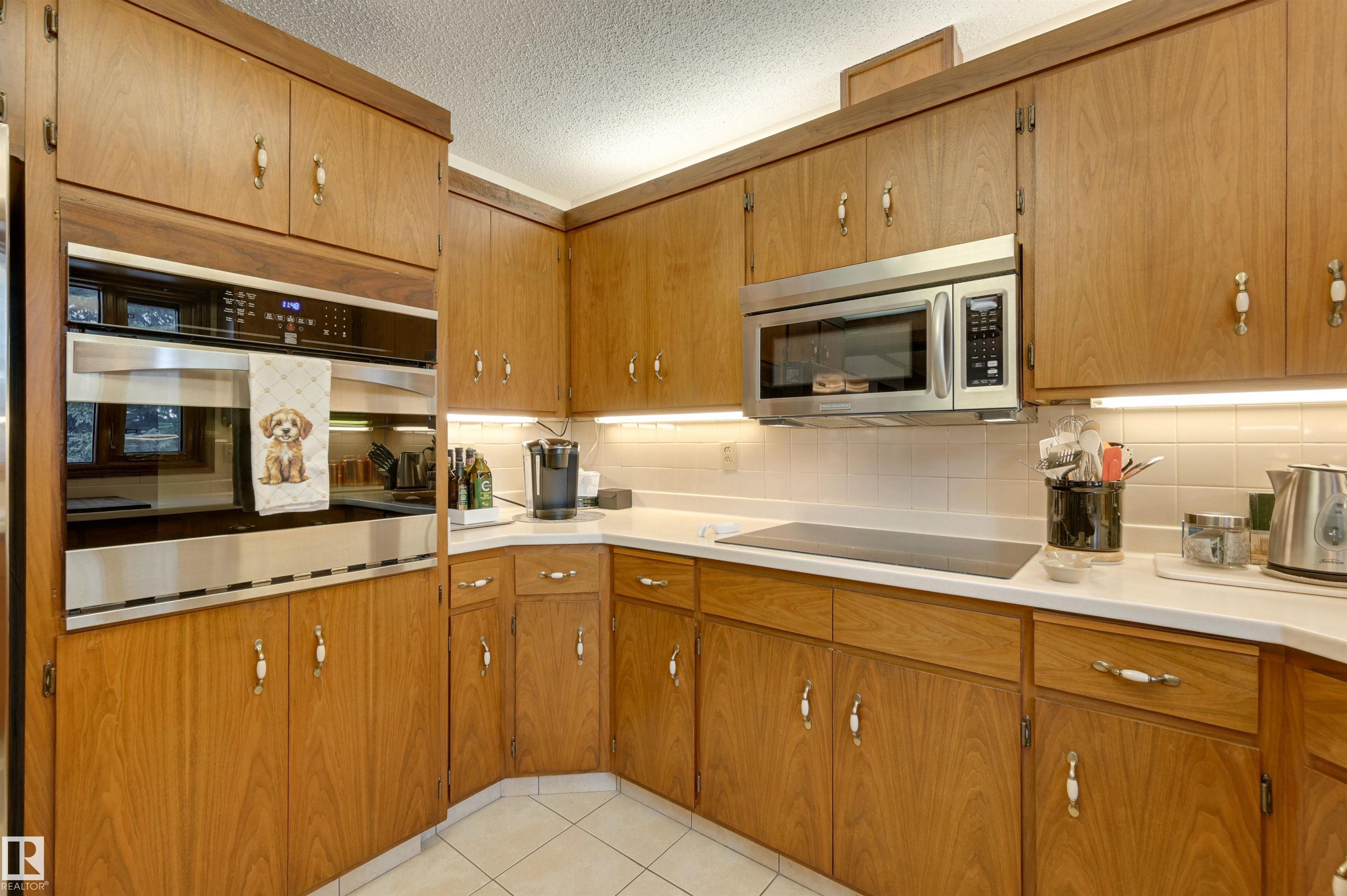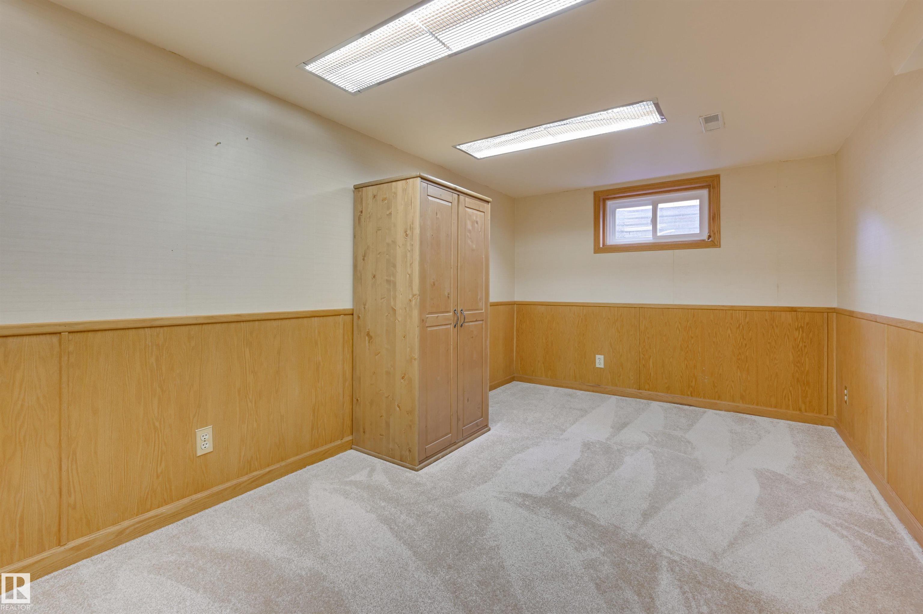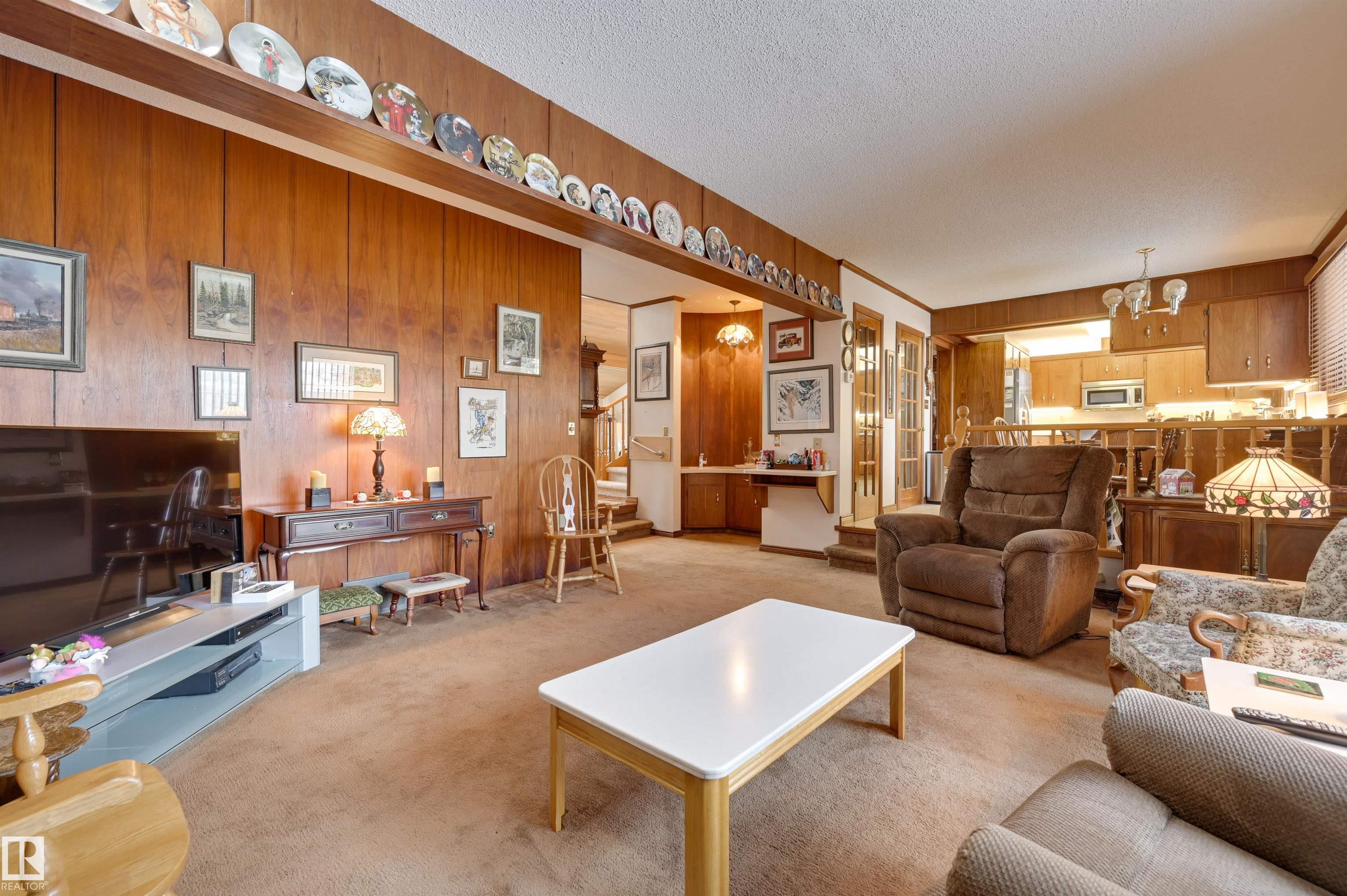 Located across from Big Bear Park with stunning views of Blackmud Creek Ravine this custom-built Birkholz home on a corner lot offers over 2900 sq ft plus a fully finished basement. Grand front entry leads to living room featuring a vaulted cedar ceiling & brick wood-burning fireplace, creating a warm & inviting space. The dining room is perfect for special occasions & enhanced by black walnut hardwood. The adjacent kitchen offers built-in oven, stove top, black walnut cabinetry, & a dining nook overlooking the backyard. The family room has access to the deck & second fireplace. Upstairs the primary suite includes a den, private balcony, cedar closet, & ensuite (2015). Three additional bedrooms & a full bath (updated in 2015). The finished basement features new carpet, a nanny suite plus 5th bedroom, & direct access to the attached garage. Additional highlights include a large deck, huge detached RV garage with work pit, cedar shakes (2012), & A/C. An exceptional home in a truly outstanding location.