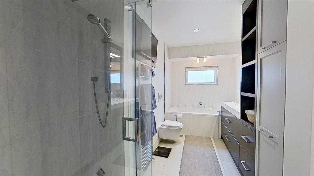 Fully renovated Mayland Heights bungalow on a generous pie-shaped lot at the end of an Elm-lined cul-de-sac, just minutes from downtown. Thoughtfully updated for year-round comfort and modern living. Main-level in-floor heating with individual room thermostats delivers consistent, zoned warmth and energy efficiency, while central air and large newer windows with high-performance glazing keep the home cool and bright in summer. The gourmet kitchen is appointed with premium appliances, abundant counter space and storage, and flows to a cozy gas fireplace-warmed living area. Smart lighting and integrated controls simplify ambiance and energy management throughout. The primary bathroom is a spa retreat featuring a dual-head walk-in shower, a deep jetted soaking tub for hydrotherapy, heated towel warmer, double vanity and built-in storage for linens and toiletries. Upstairs laundry grants direct access to a heated 19x7 swim spa, ideal for low impact exercise and year-round use with a heated step for safe winter entry. The lower level was designed for recreation and performance: stretch ceilings open the space, spray-foam insulation maximizes thermal efficiency and sound control, a hidden theater area offers immersive "galaxy" lighting for cinematic experiences, and a fitness zone includes laundry hookups and space for strength/cardio equipment. Mechanical and practical upgrades include an on-demand hot water heater, new furnace, central vacuum system, replacement windows, and extensive built-in storage. Outdoors, the property is an entertainer's paradise with a bar-style island, Viking BBQ and searing station, heated pergola for comfortable evening gatherings, heated sidewalks for winter safety, irrigation for lush landscaping, an RV parking pad with electrical hookup, and a heated double garage. Durable Hardi-Board concrete fiber exterior siding. The substantial lot also presents strong redevelopment potential for future expansion or infill opportunities. So many more features yet to be revealed in a personal tour.